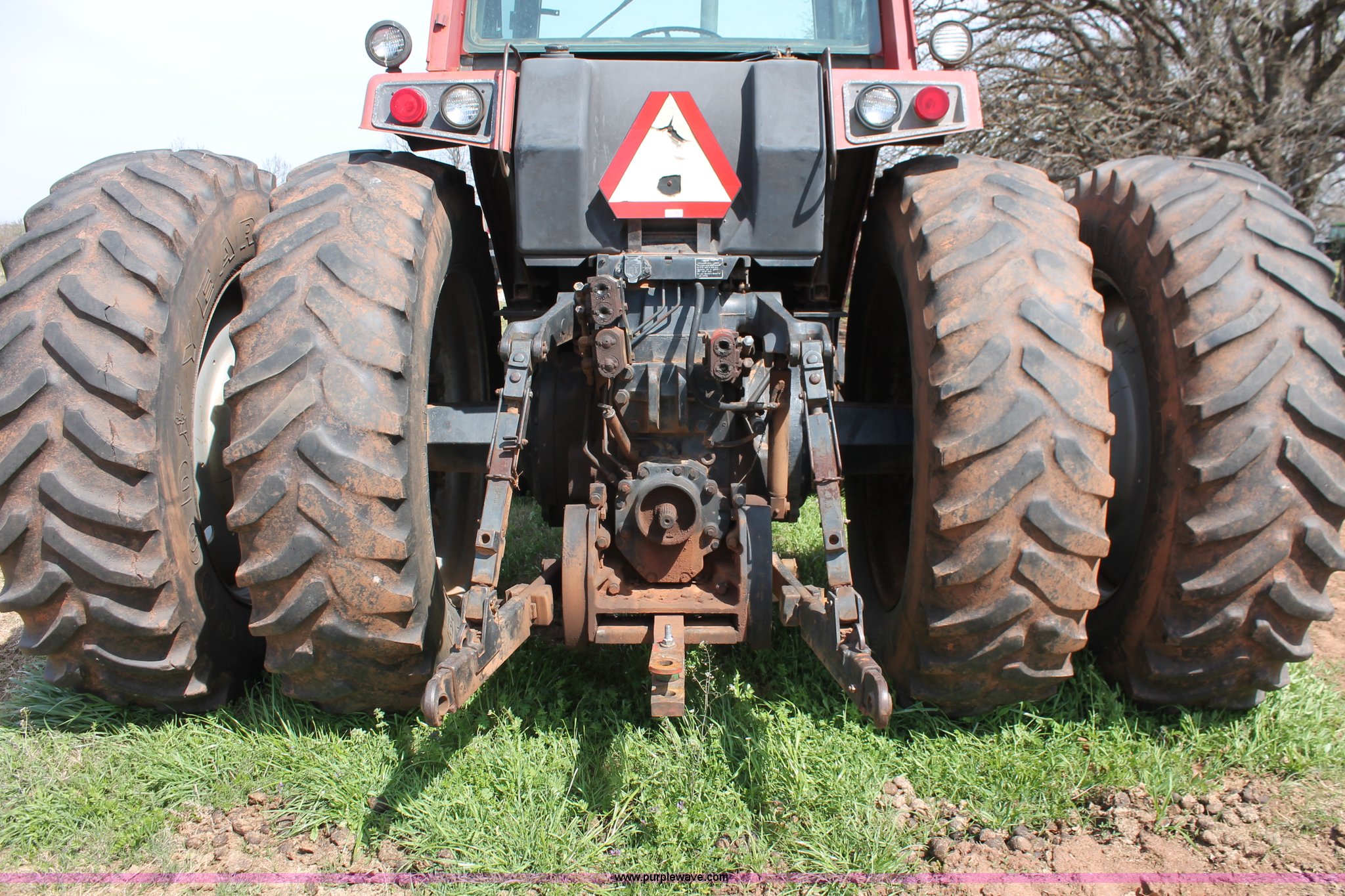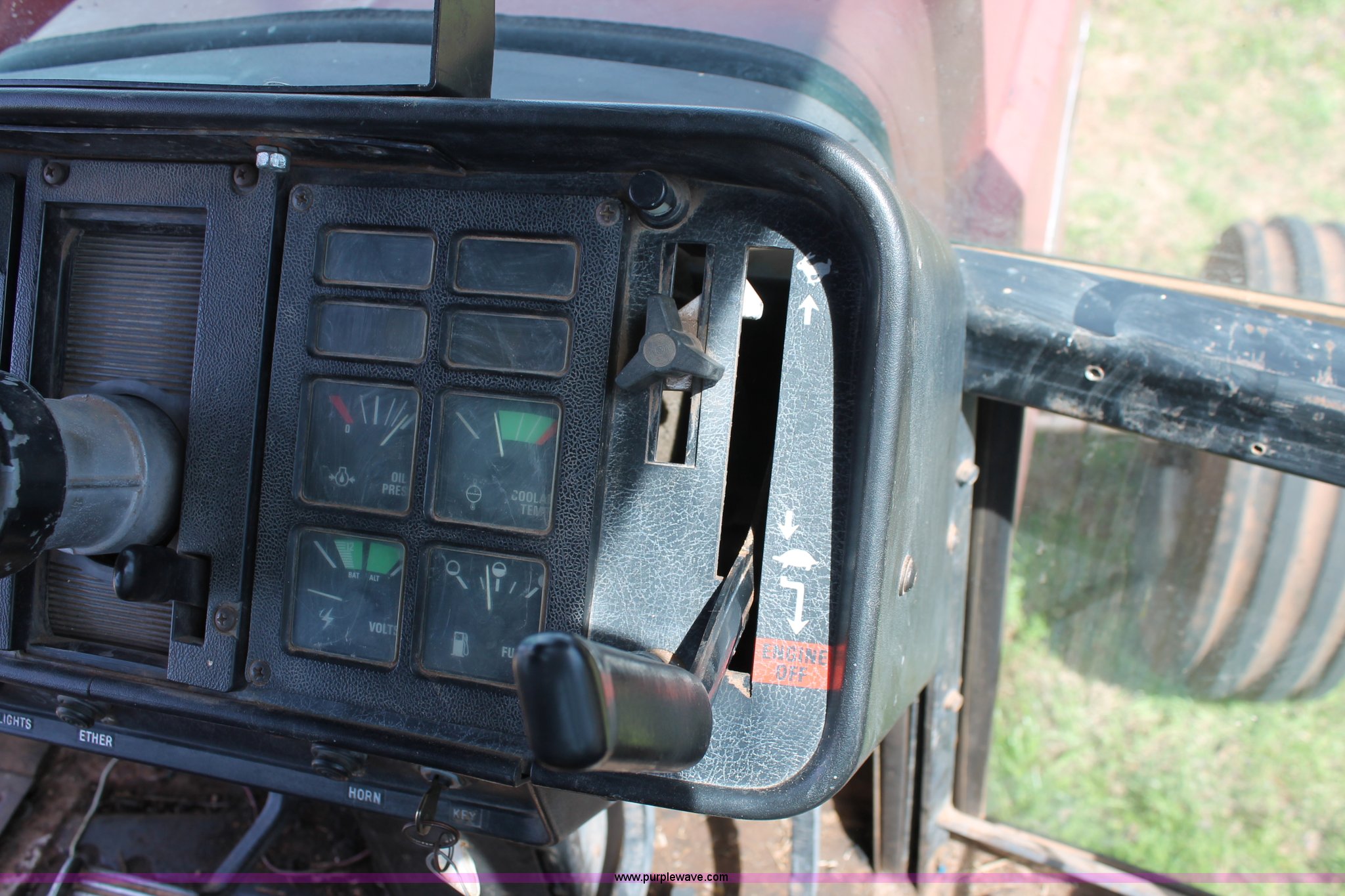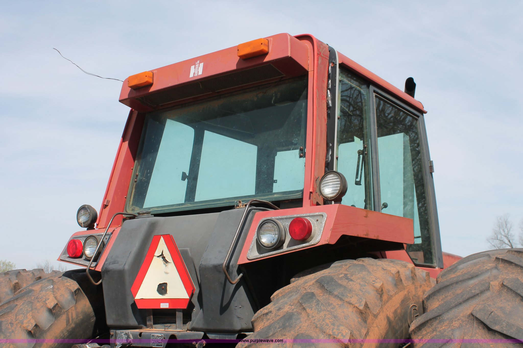 Purple Wave is selling a used Tractor in Oklahoma. This item is a International 5488 tractor with the following: 203 hours on meter, International DTI-466B 7.6L six cylinder turbo diesel engine, 185 HP, Synchro Tri-Six transmission, 18F-6R gears, AC and heat, Tilt steering wheel, AM/FM, Three point, Seven pin outlet, 1000 PTO, Draw bar, (3) rear hydraulic remote sets, (8) suitcase weights, 112" wheelbase, 14L-16.1 front tires, 18.4R42 dual rear tires, Weak master clutch, Recently replaced fuel pump, Serial 20916