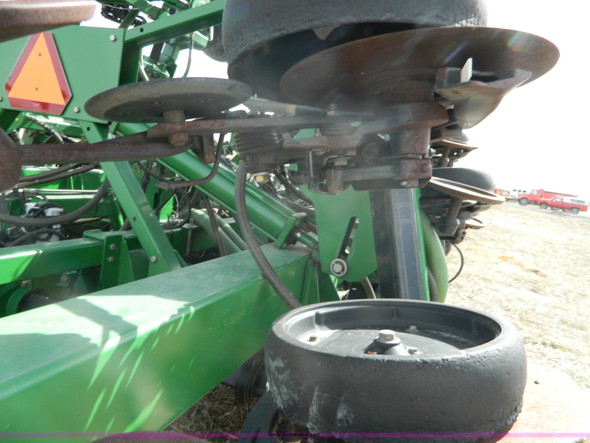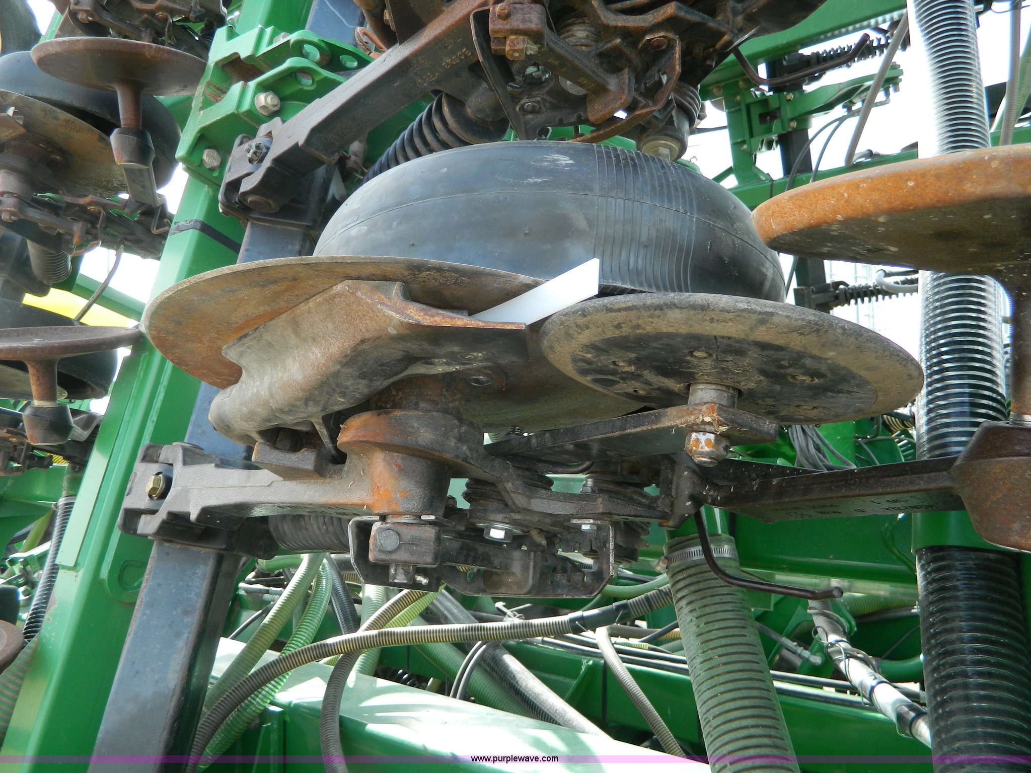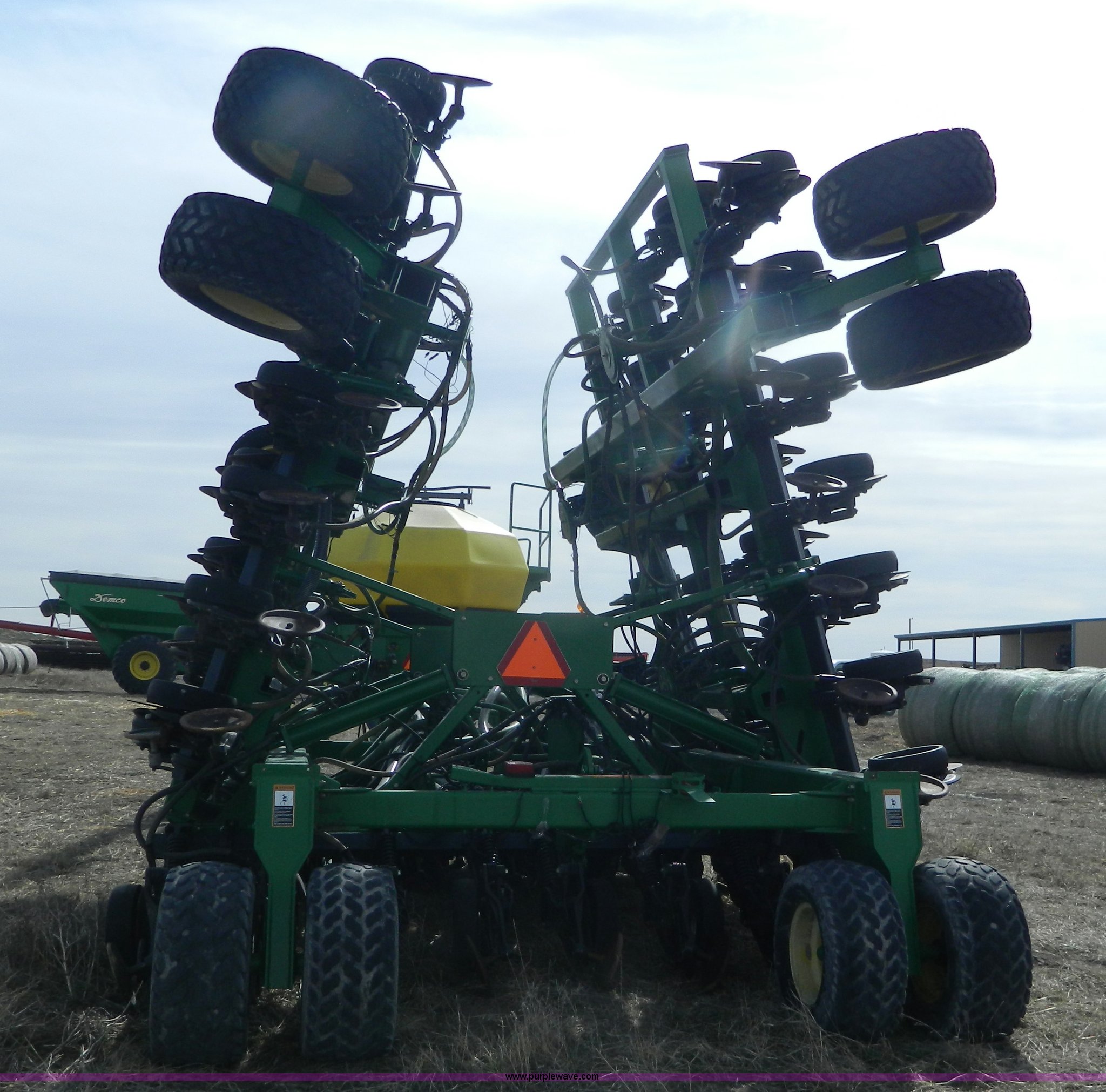 Purple Wave is selling a used Air Seeder in Kansas. This item is a John Deere 1895 no-till air seeder with the following: 36'W, 10" row spacing, Hydraulic wing fold, Bulk fill system, John Deere 1910 air commodity cart, 23.1-26 tires, Serial A01910T705142, Pneumatic down pressure, HD spring down pressure, Single disk openers, 18" average center disks, 17" average outer disks, Fold up hopper, Dry fertilizer application, Pin hitch, 31x13.5-15 transport tires, Serial A10895X705113