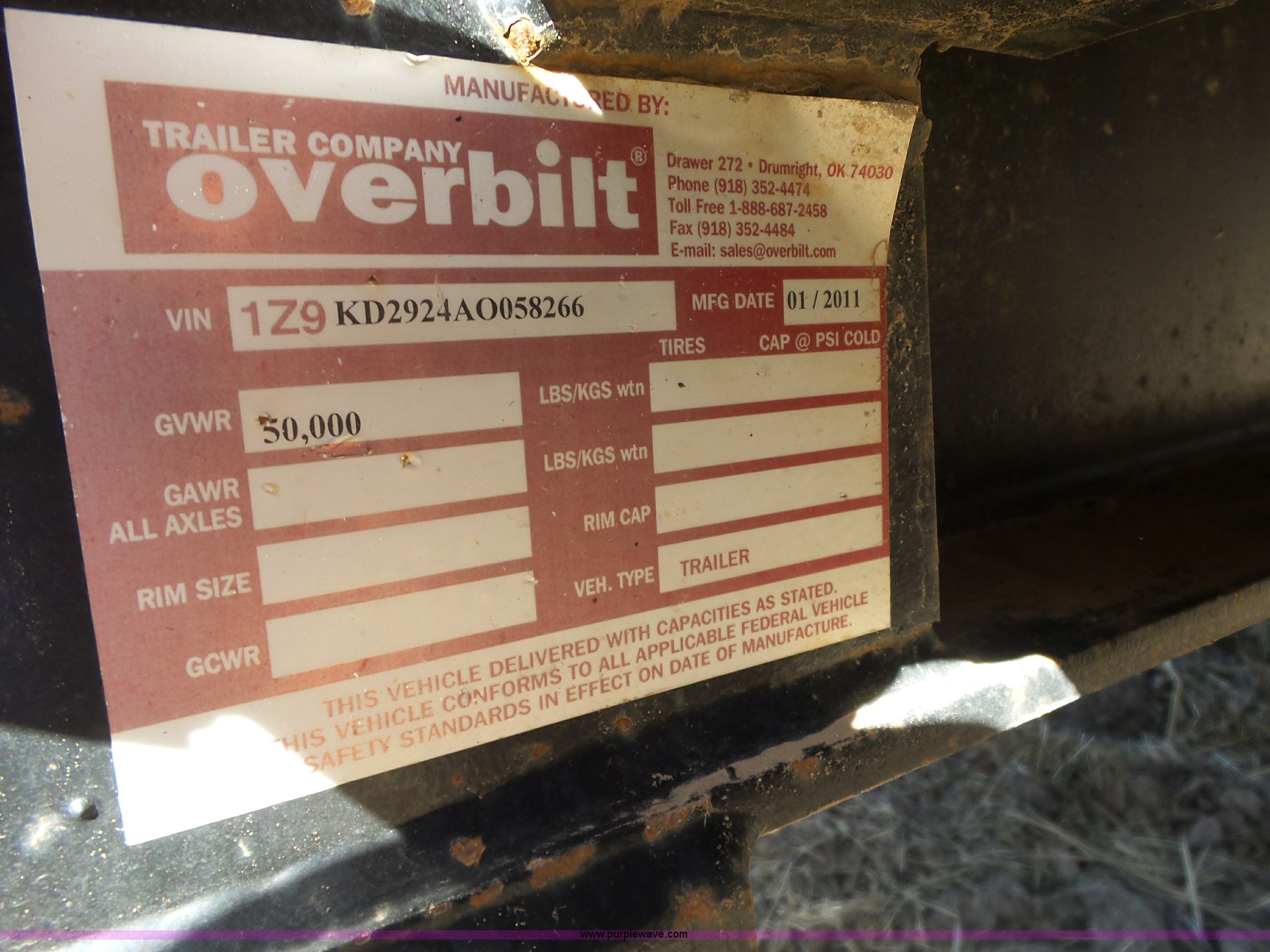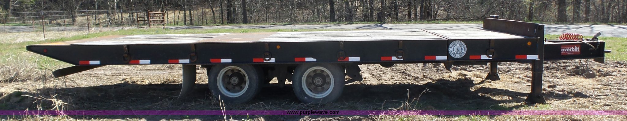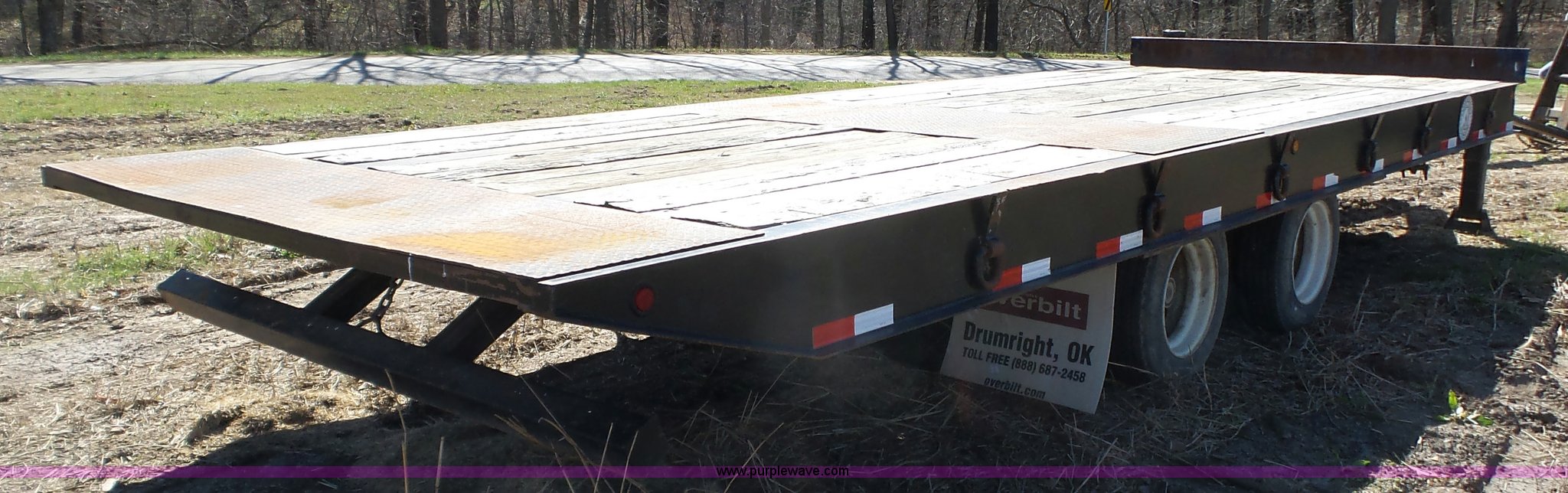 Purple Wave is selling a used Equip. Trailer in Oklahoma. This item is a 2011 Overbilt tilt deck trailer with the following: 24' overall length, 20'L x 101.5"W wood deck, D-ring tie downs, Pintle hitch, Spring suspnesion, Air brakes, 215/75R17.5 tires, GVWR 30,000 lbs