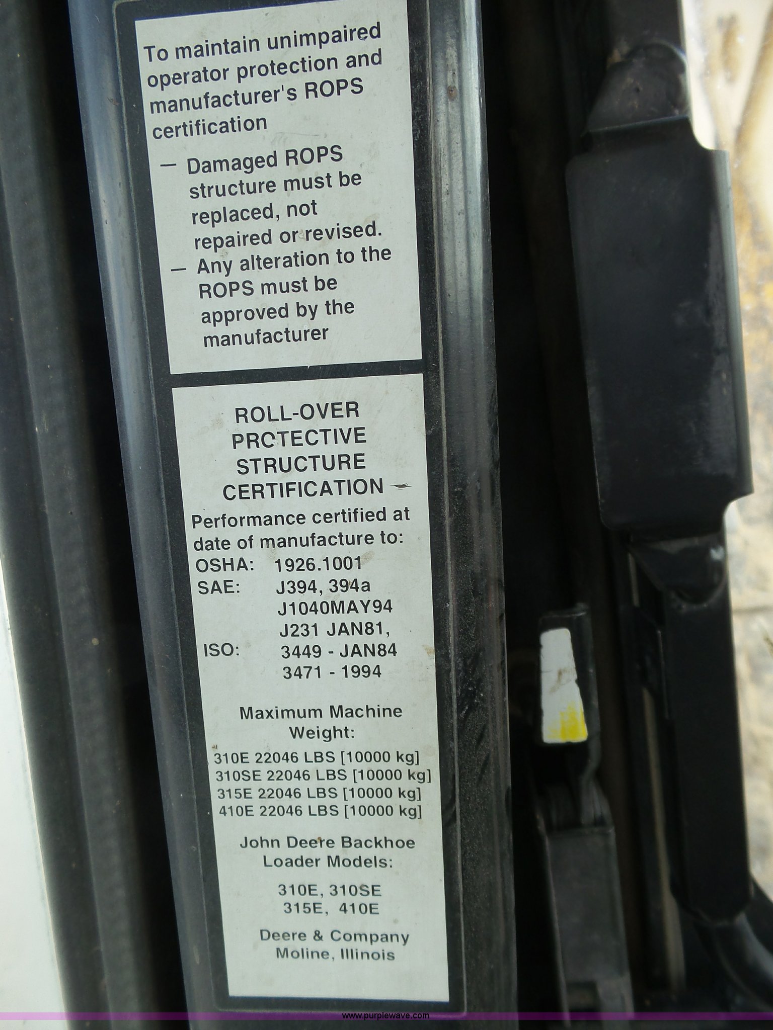 Purple Wave is selling a used Tractor Loader Backhoe in Kansas. This item is a 1998 John Deere 310SE backhoe with the following: 478 hours on meter, Hours may vary, unit is still in use, John Deere 4045TT050 4.5L four cylinder turbo diesel engine, Shuttle shift transmission, 4F-4R gears, Four wheel drive, EROPS, AC and heat, AM/FM, Suspension seat, Wobble stick backhoe controls, Wipers, Front and rear work lights, John Deere 92"W loader bucket, 1.3 cu. yd. capacity, Bolt-on cutting edge, 4'L pallet forks, E-stick, 24"W backhoe bucket, 15 cubic foot capacity, (5) teeth, Block heater, Front counter weights, 12.5/80-18 front tires, 14,790 lbs. base operating weight, Service records available upon request, Interior/exterior cosmetic damage, Cylinders wet, Two way radio is not included, Serial T03105E844661