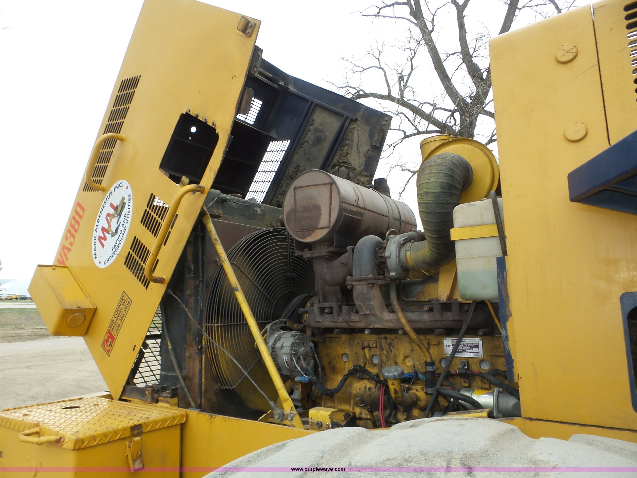 1990 Komatsu WA380-1 wheel loader. 14,225 hours on meter, Komatsu SA6D110-1 six cylinder turbo diesel engine Serial 62111, Powershift transmission 4F-4R gears, Enclosed cab, Heat, Tilt steering wheel, Suspension seat, Two-lever bucket controls, Wipers, Front and rear work lights, Block heater, 112"W general purpose bucket Bolt-on cutting edge, 23.5-25 tires, 35,770 lbs. base operating weight, Maintenance records available upon request, Steering issues, Serial 20439. Mark Albenesius Inc.. 608 152nd Street. South Sioux City, NE 68776