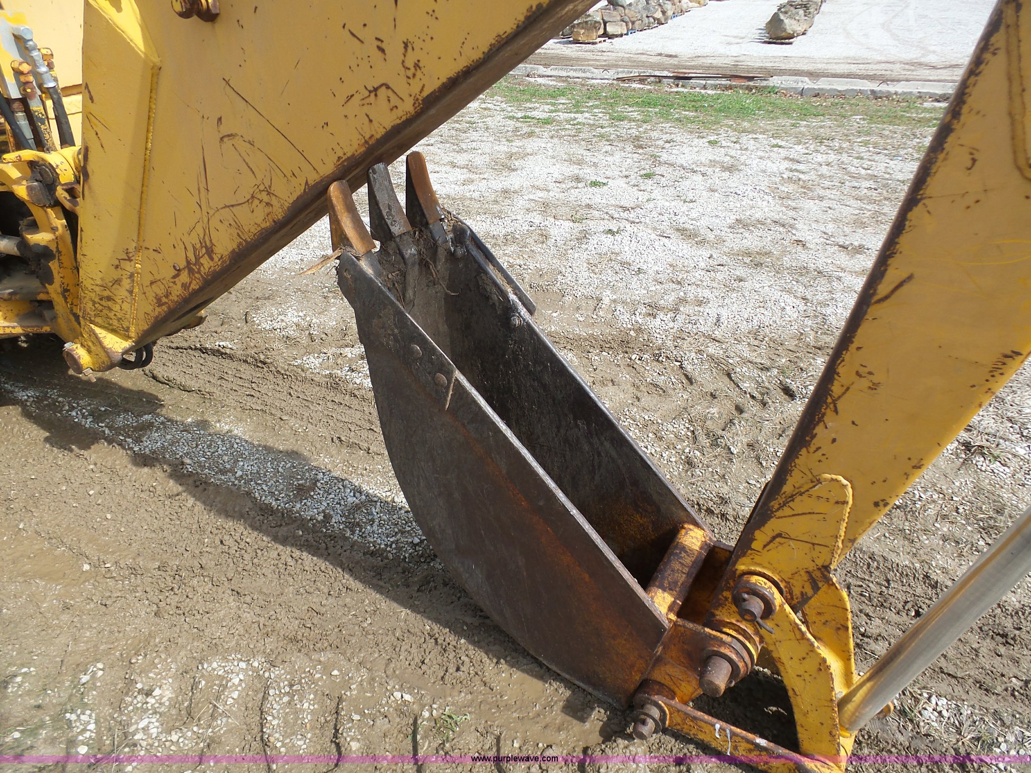John Deere 310A backhoe. 1,888 hours on meter, John Deere four cylinder diesel engine, Manual transmission 8F-8R gears, Wobble stick backhoe controls, Front and rear work lights, 90"W loader bucket, 12"W backhoe bucket (3) teeth, 24"W backhoe bucket (4) teeth, 11-15 front tires, 16.9-24 rear tires, Glass cracked, Serial 3LOAD373872T. Kat Nurseries. 27610 E. Wyatt Road. Blue Springs, MO 64014