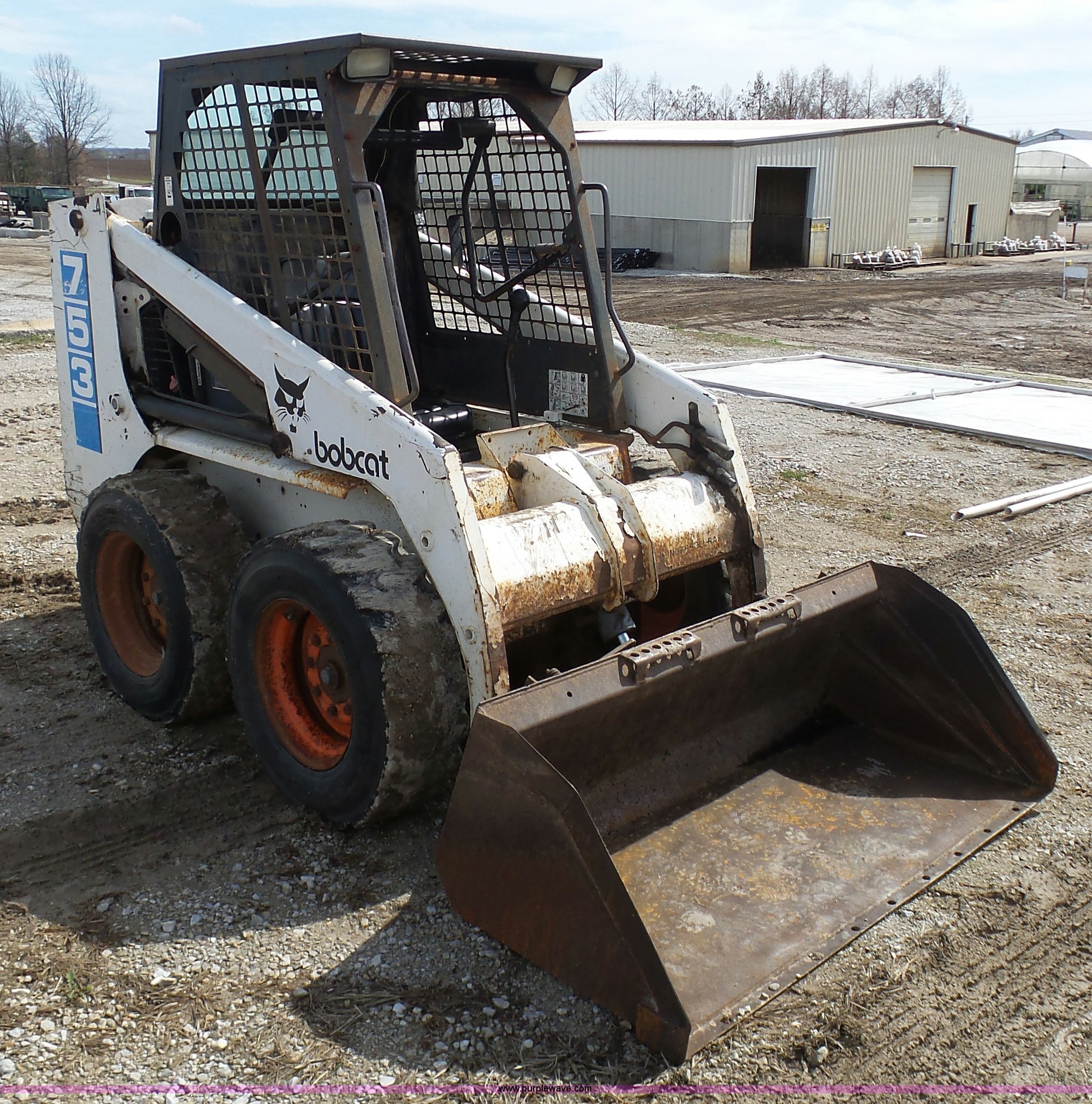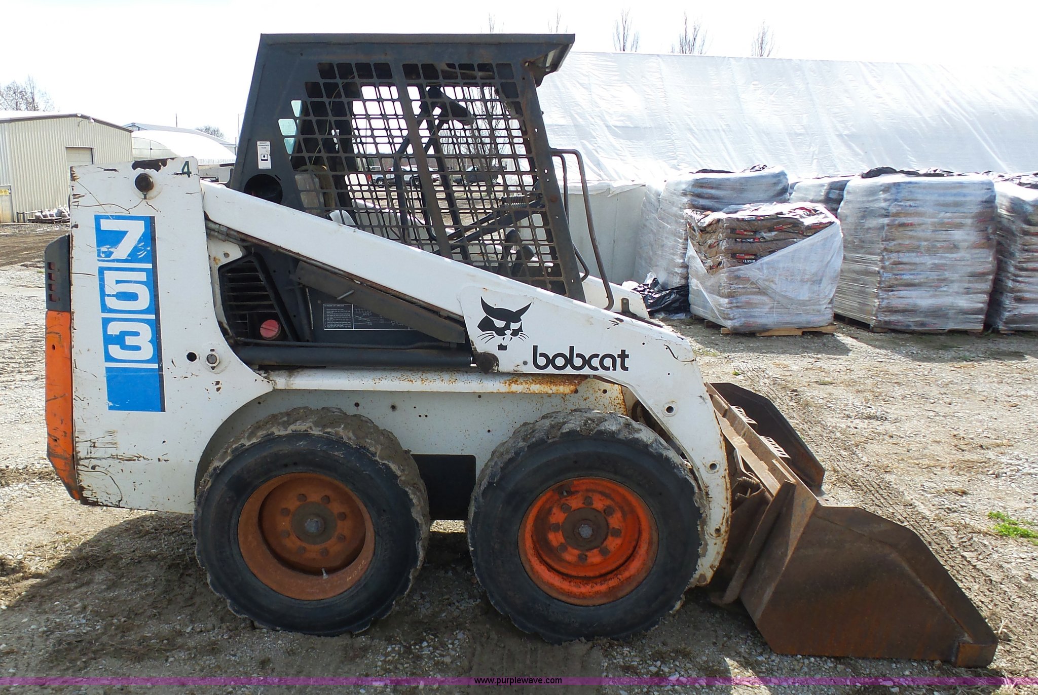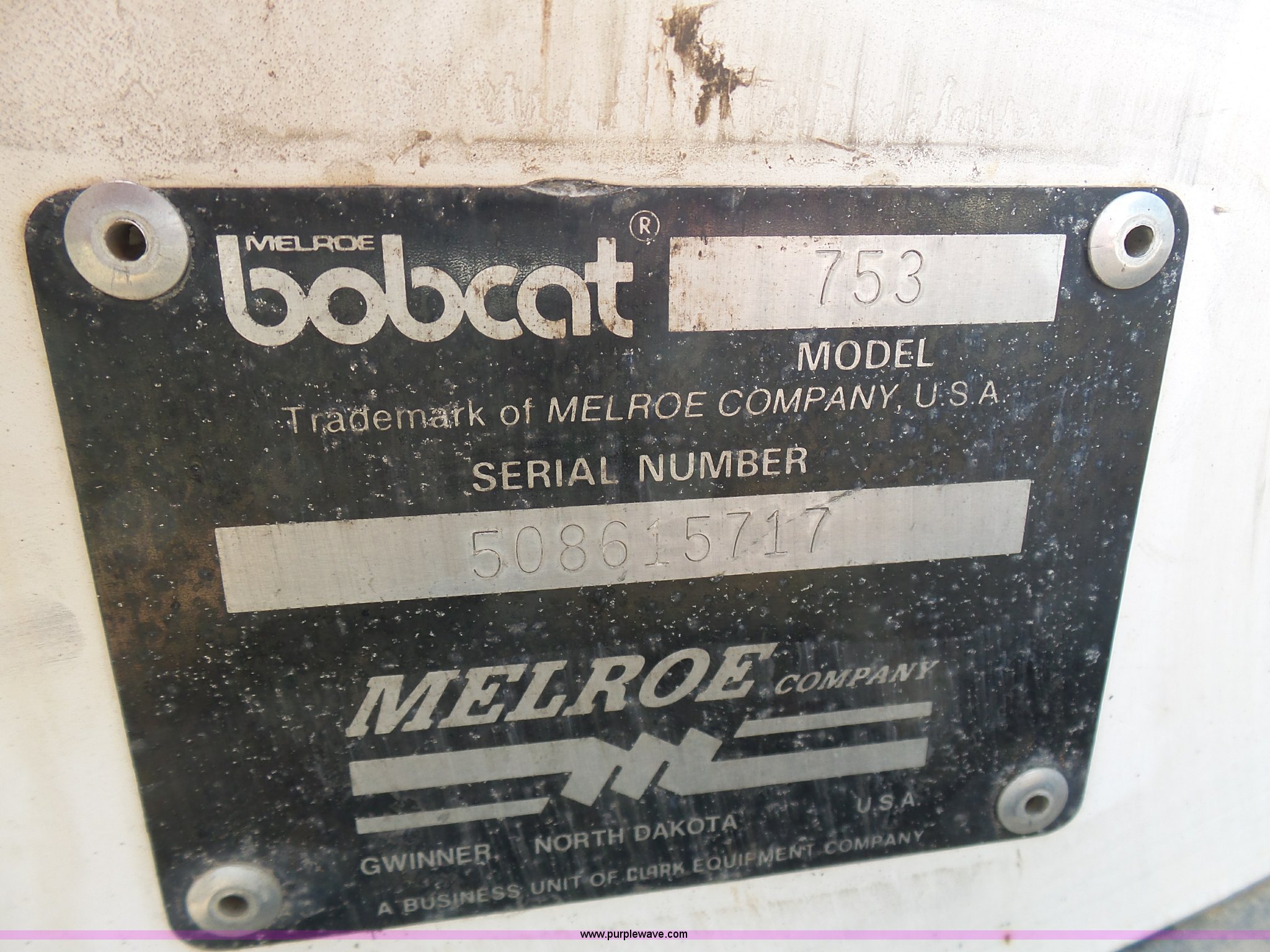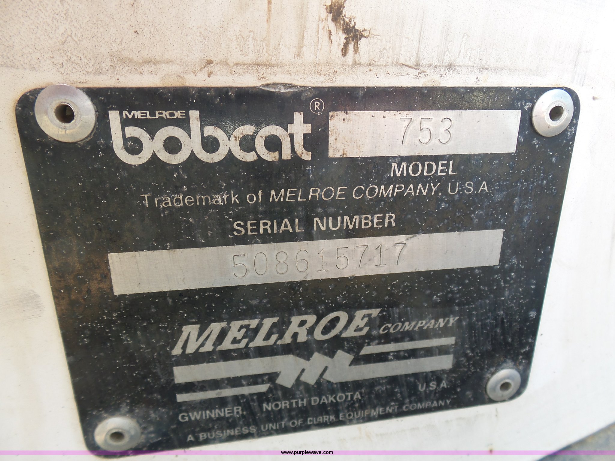 Purple Wave is selling a used Skid Steer Loader in Missouri. This item is a 1991 Bobcat 753 skid steer with the following: 8,003 hours on meter, Four cylinder diesel engine, Hydrostatic transmission, Hand and foot controls, Front work lights, 5'W bucket, Auxiliary hydraulics, 10-16.5 tires, 4,740 lbs. base operating weight, Serial 508615717