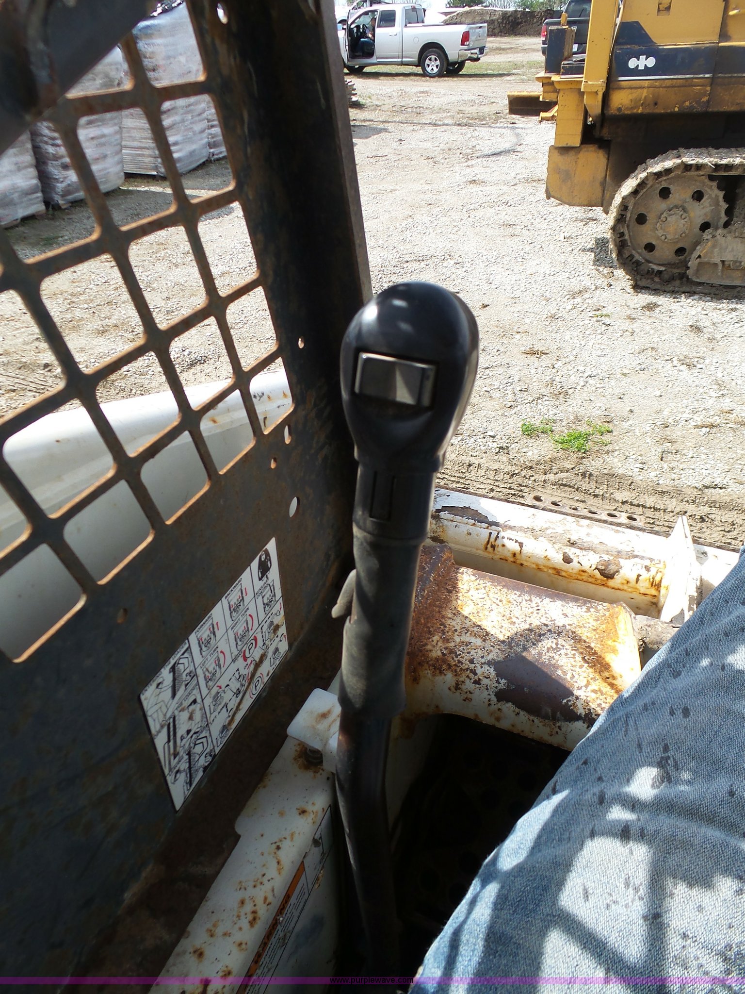 1991 Bobcat 753 skid steer. 8,003 hours on meter, Four cylinder diesel engine, Hydrostatic transmission, Hand and foot controls, Front work lights, 5'W bucket, Auxiliary hydraulics, 10-16.5 tires, 4,740 lbs. base operating weight, Serial 508615717. Kat Nurseries. 27610 E. Wyatt Road. Blue Springs, MO 64014