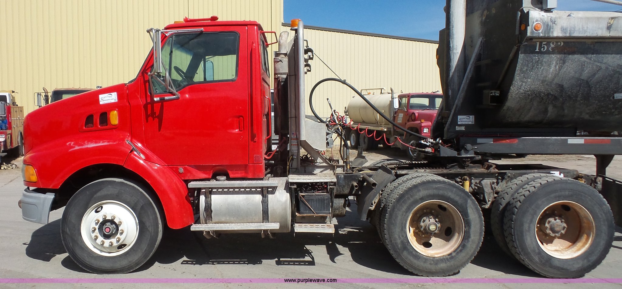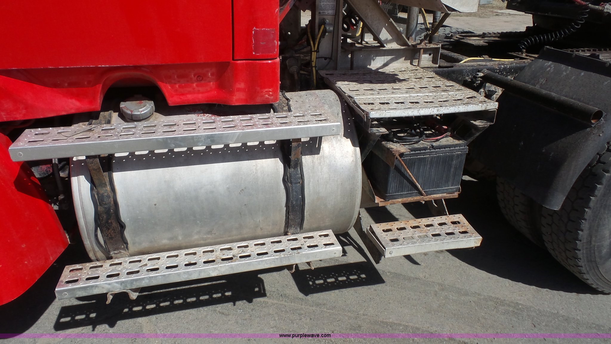 Purple Wave is selling a used Truck Tractor in Kansas. This item is a 1998 Ford AT9513 Aeromax 113 semi truck with the following: 549,846 miles on odometer, 3,669 hours on meter, 169,773 miles on hub meter, Caterpillar C12 11.9L L6 turbo diesel engine, 410 HP, Serial 1YN12513, Eaton Fuller Road Ranger nine speed manual transmission, Tandem axle, Inter-axle differential lock, Heat, Power windows, Air suspension seat, PTO, Wet kit, Dump valves, Aluminum headache rack, Chain hanger, Sliding fifth wheel plate, Single rear exhaust stack, Dual fuel tanks, Quarter fenders, Mud flaps, 4:11 gear ratio, 160" wheelbase, Air suspension, Air brakes, 11R22.5 tires, GVWR 52,000 lbs, FAWR 12,000 lbs, IAWR 20,000 lbs, RAWR 20,000 lbs, Unit# 484