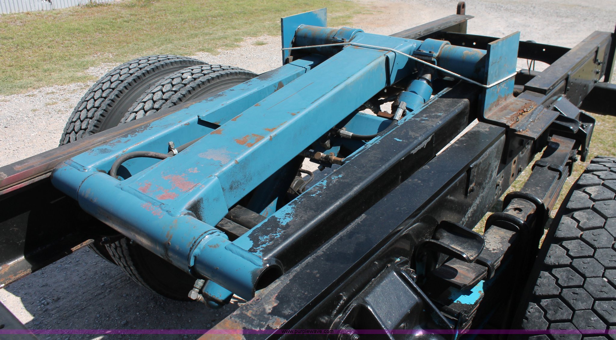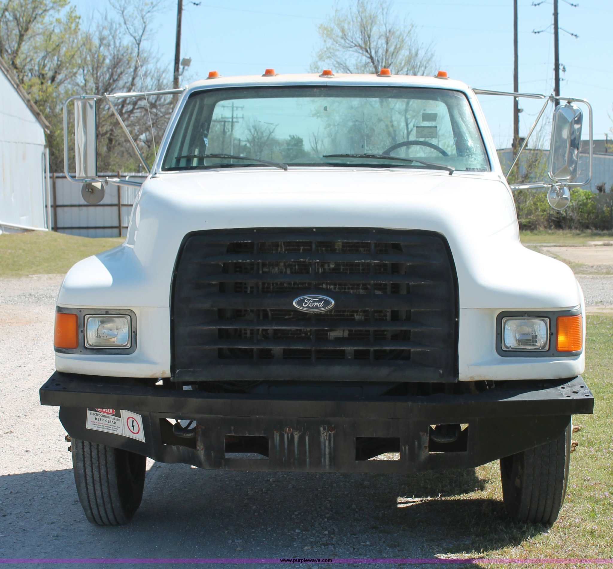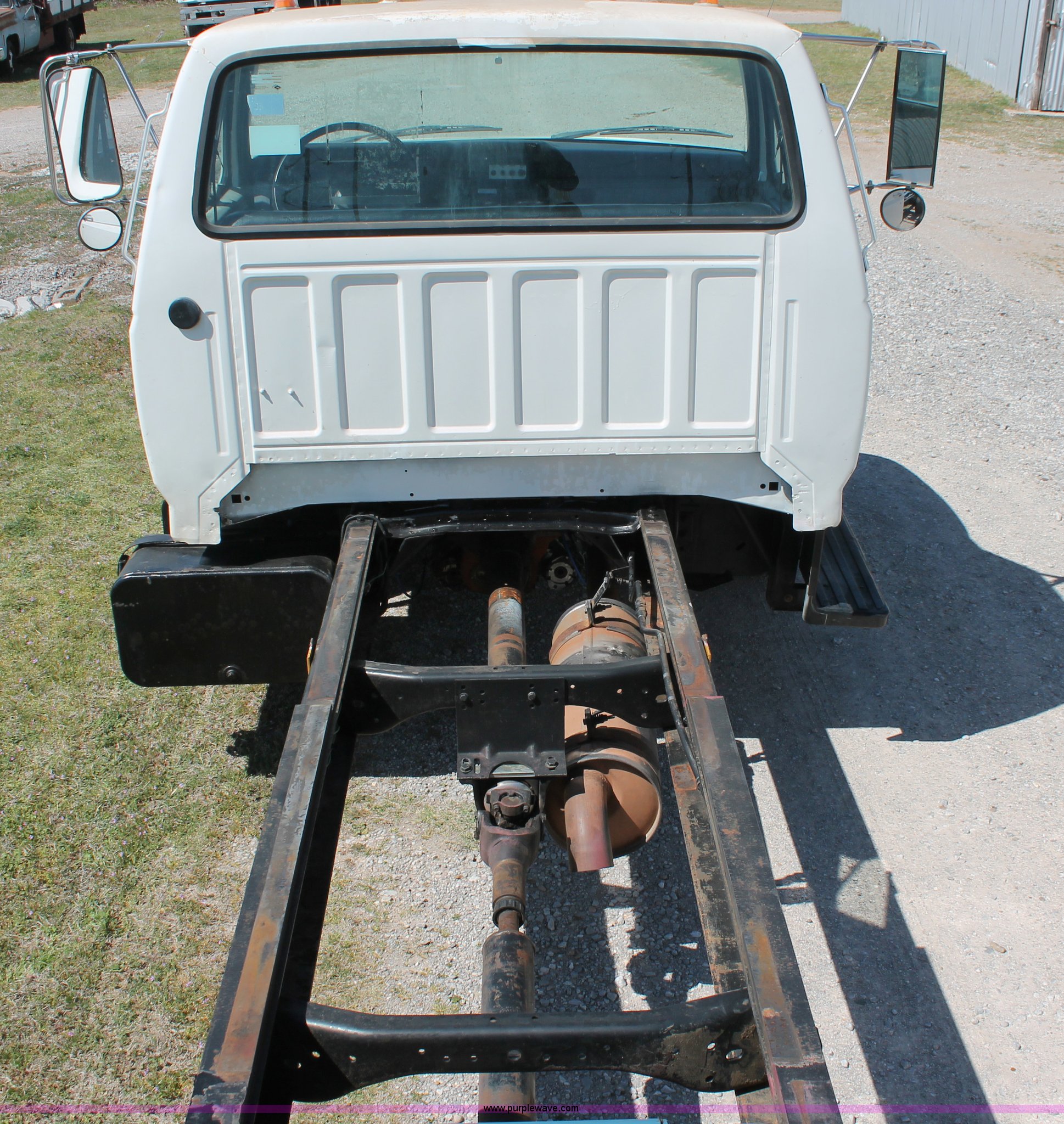Purple Wave is selling a used Truck Chassis in Oklahoma. This item is a 1998 Ford F800 truck cab and chassis with the following: 152,135 miles on odometer, Cummins B5.9 5.9L L6 diesel engine, 210 HP, Serial 563904D6, Six speed manual transmission, Single axle, AC and heat, Dual PTO, Single pump, Harsh RL-E50 rigid-lift hydraulic hoist, Dual ram cylinders, Electric over hydraulic brakes, 225" wheelbase, 10R22.5 tires, GVWR 28,000 lbs