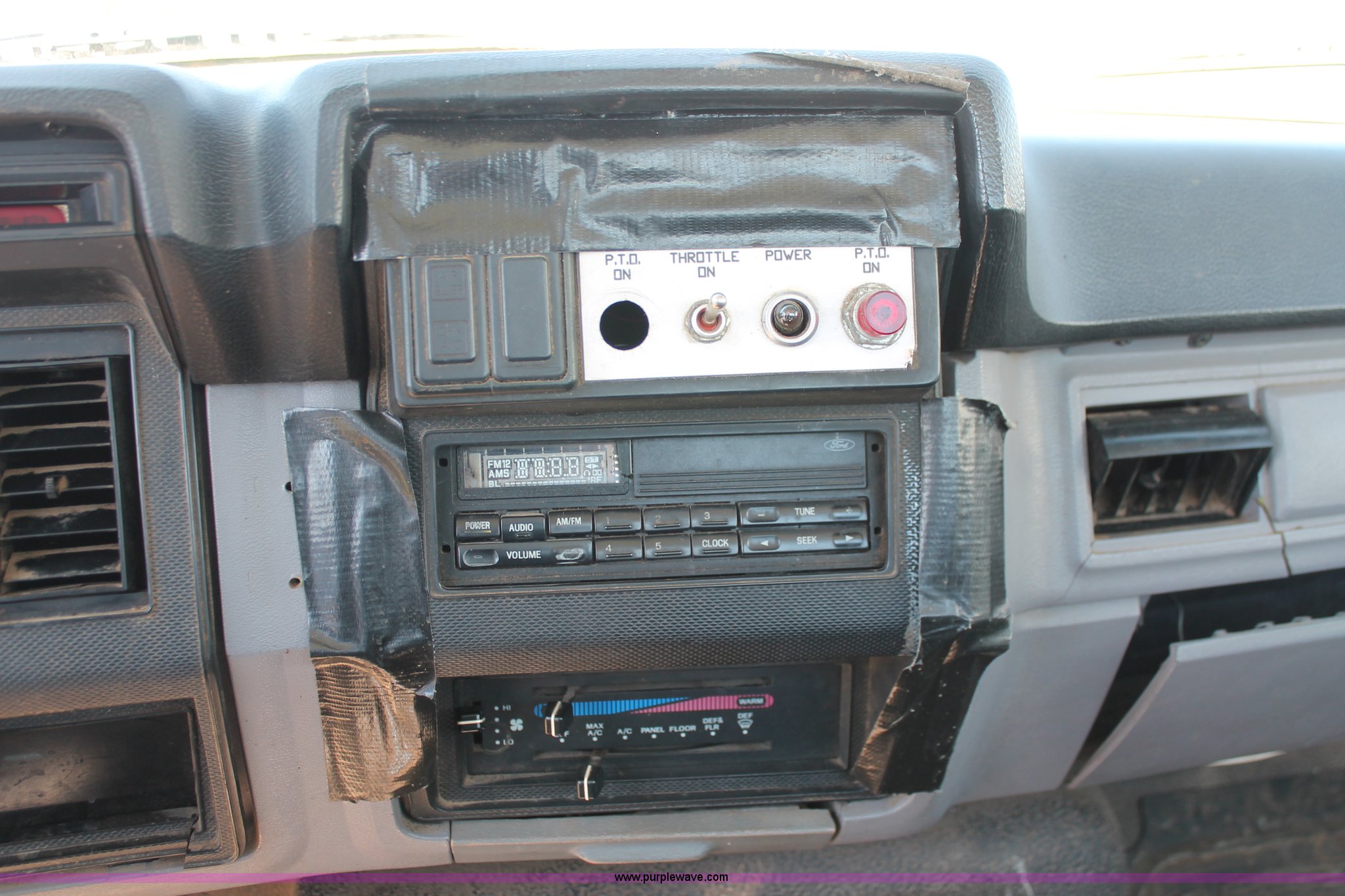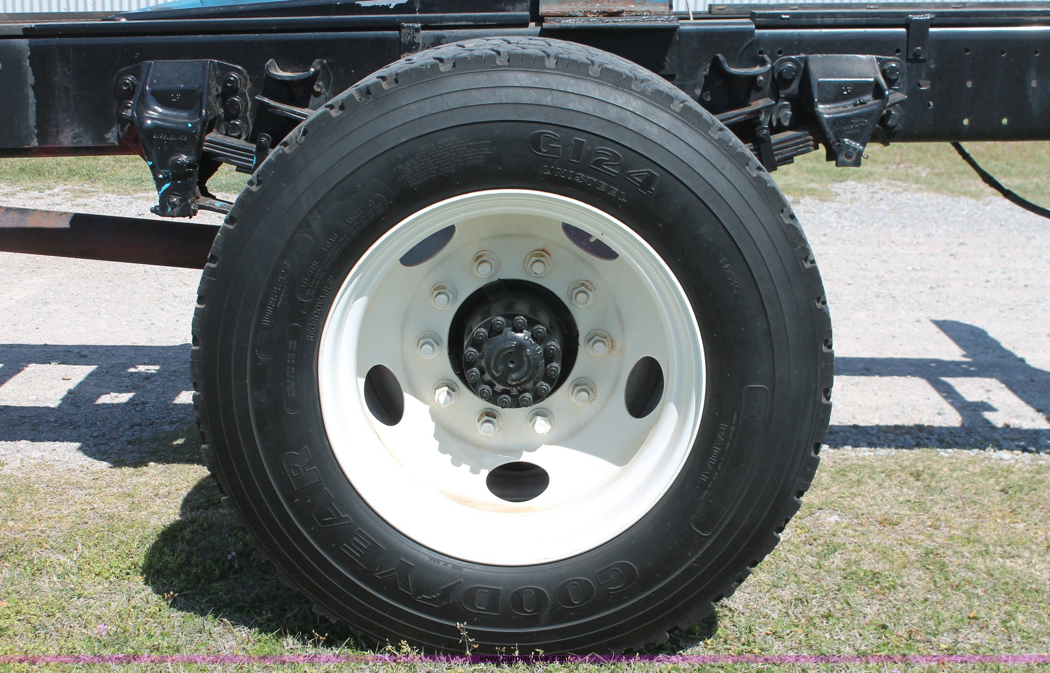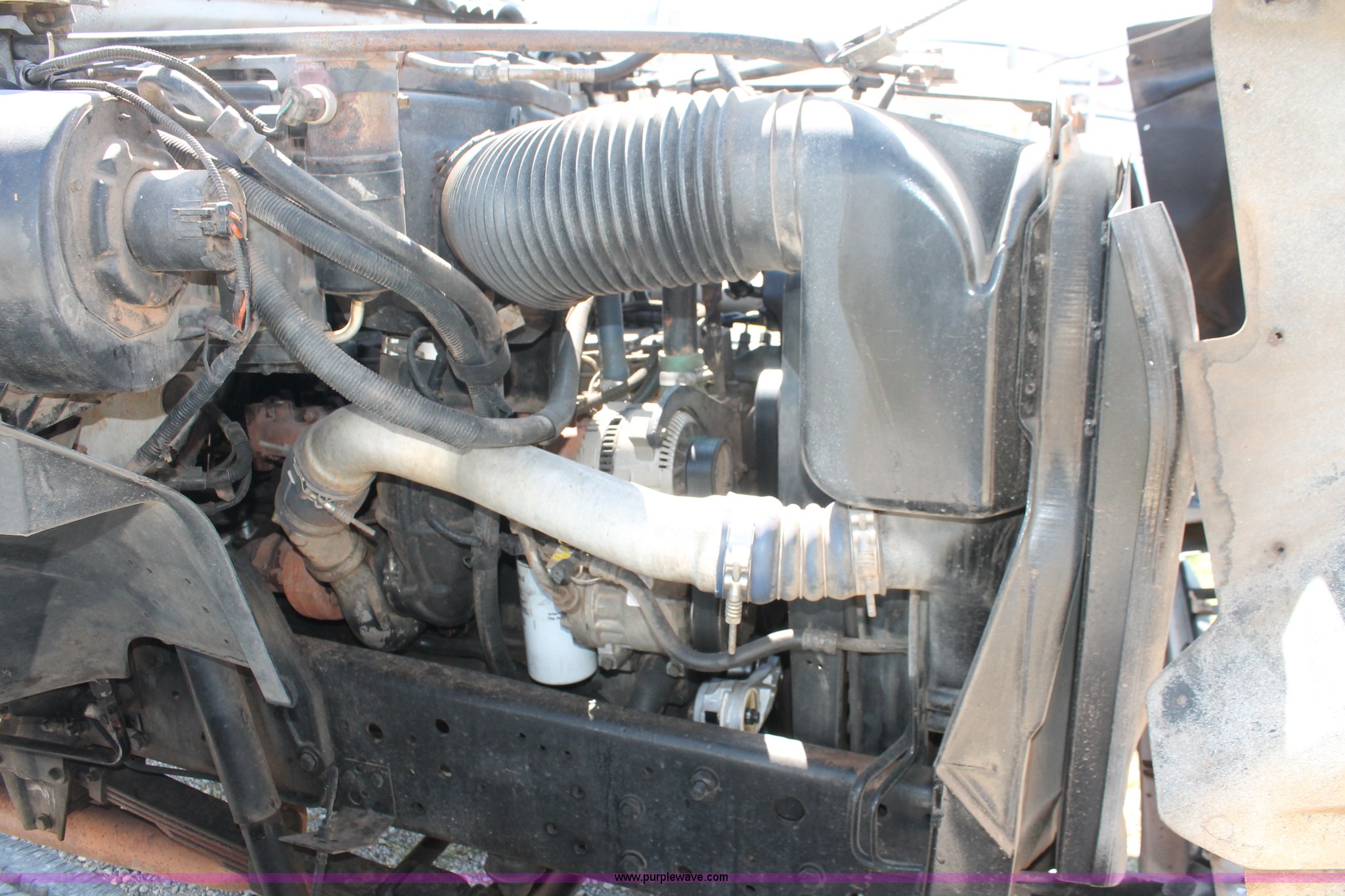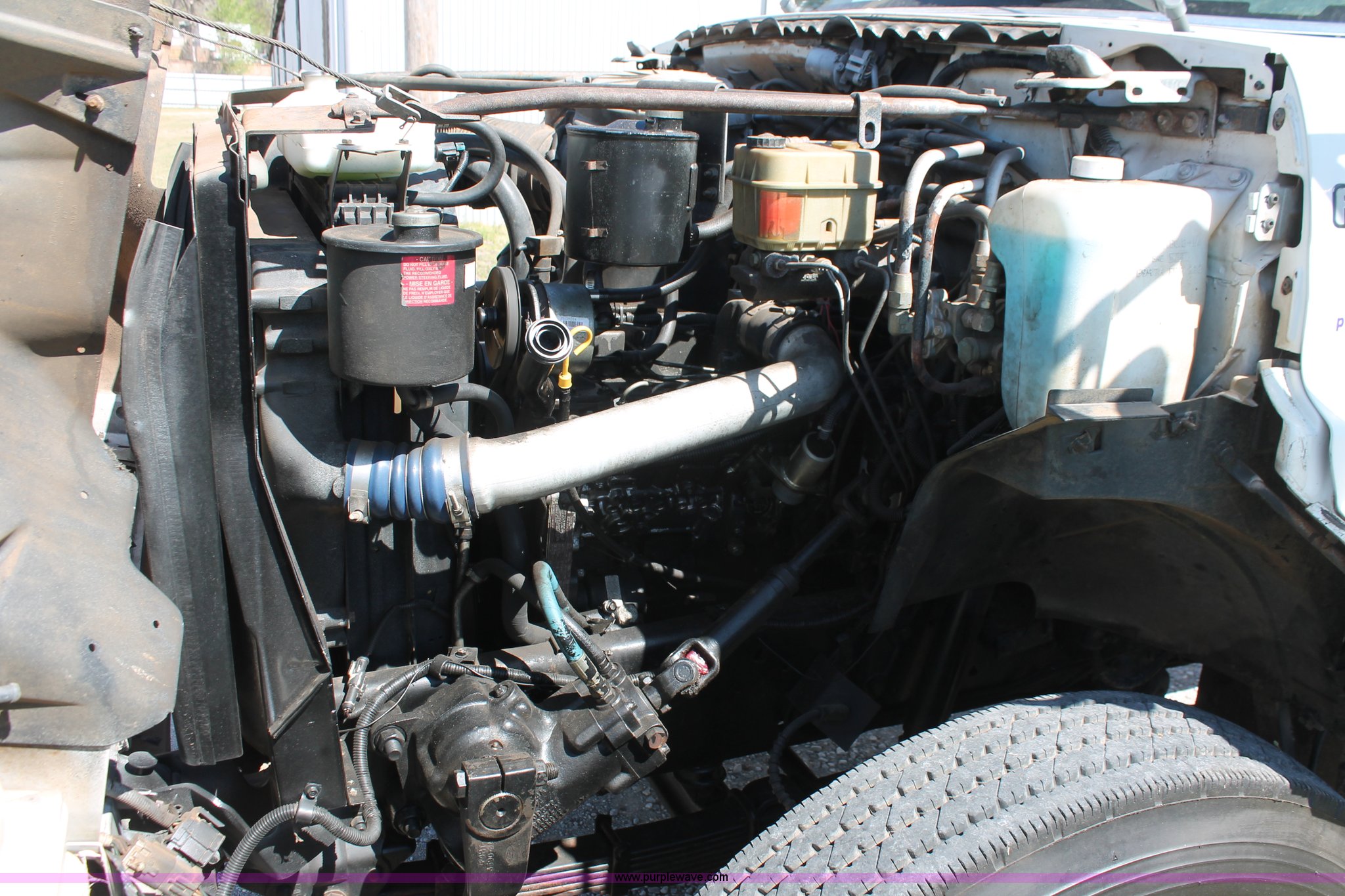 Purple Wave is selling a used Truck Chassis in Oklahoma. This item is a 1998 Ford F800 truck cab and chassis with the following: 152,135 miles on odometer, Cummins B5.9 5.9L L6 diesel engine, 210 HP, Serial 563904D6, Six speed manual transmission, Single axle, AC and heat, Dual PTO, Single pump, Harsh RL-E50 rigid-lift hydraulic hoist, Dual ram cylinders, Electric over hydraulic brakes, 225" wheelbase, 10R22.5 tires, GVWR 28,000 lbs