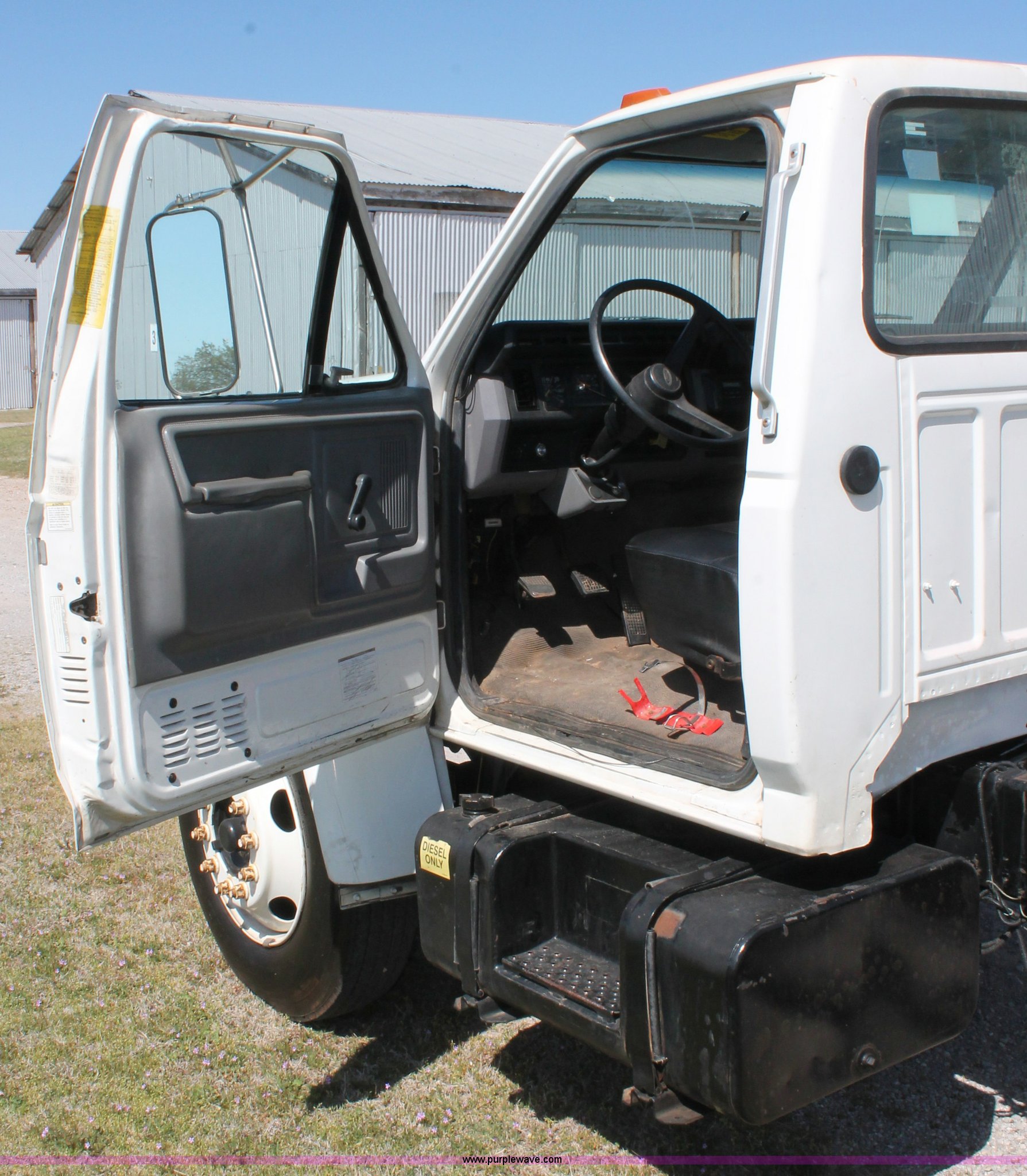 This 1998 Ford F800 truck cab and chassis will sell to the highest bidder regardless of price.