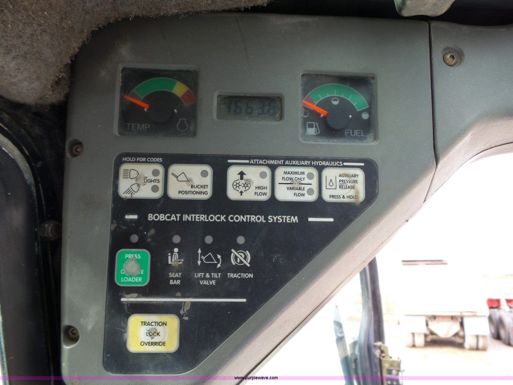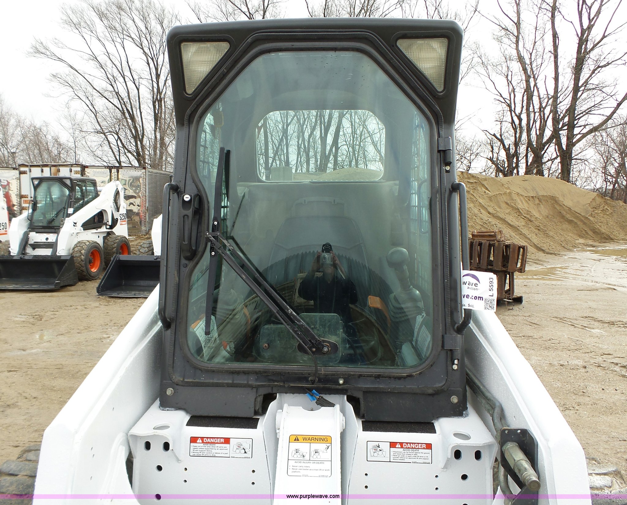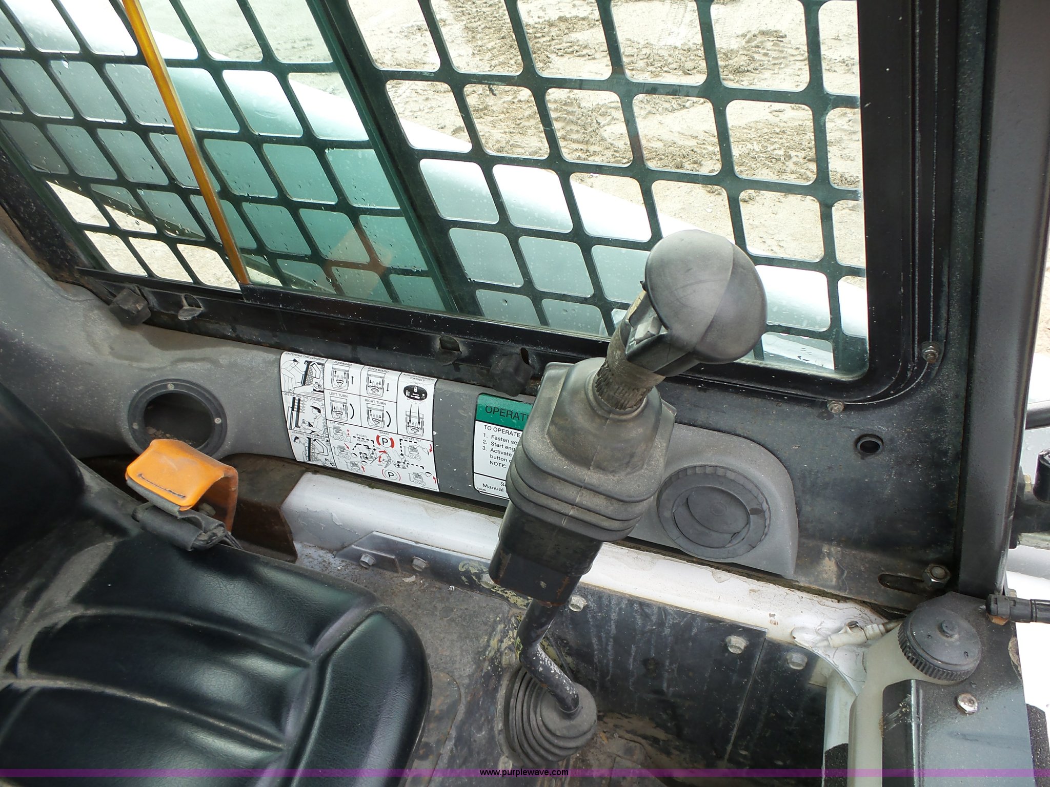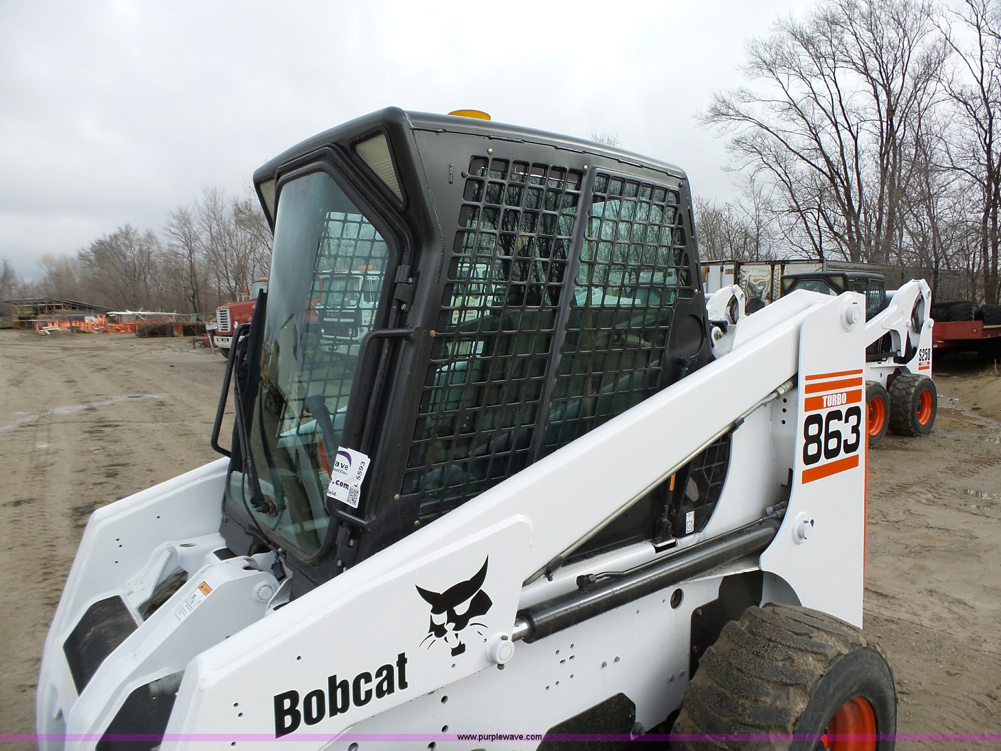 Purple Wave is selling a used Skid Steer Loader in Iowa. This item is a 2001 Bobcat 863 Turbo skid steer with the following: 4,664 hours on meter, Four cylinder turbo diesel engine, Hydrostatic transmission, Enclosed cab, Joystick controls, Spring suspension seat, Wipers, Backup alarm, 73"W bucket, Bolt-on cutting edge, Manual quick coupler, Auxiliary hydraulics, Beacon light, Front work lights, 12 x 16.5 NHS tires, Additional Loeger 15"W tracks, Unattached, 7,045 lbs. base operating weight, Serial 514448327
