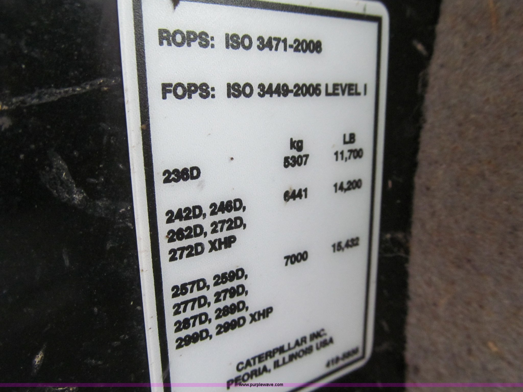 Purple Wave is selling a used Skid Steer Loader in Iowa. This item is a 2014 Caterpillar 236D skid steer with the following: 2,632 hours on meter, Caterpillar C3.3B 3.3L four cylinder turbo diesel engine, 54.6 kW, Hydrostatic transmission, OROPS, Joystick controls, EMS panel, Air suspension seat, Backup alarm, Front and rear work lights, Auxiliary hydraulics, Hydraulic quick coupler, Caterpillar 283-6009 bucket, 72"W, Bolt-on cutting edge, 0.53 yd. capacity, Caterpillar 10-16.5 tires, Replaced fewer than 50 hours ago, Caterpillar 36 month or 3,000 hours powertrain warranty included, Serial BGZ00695