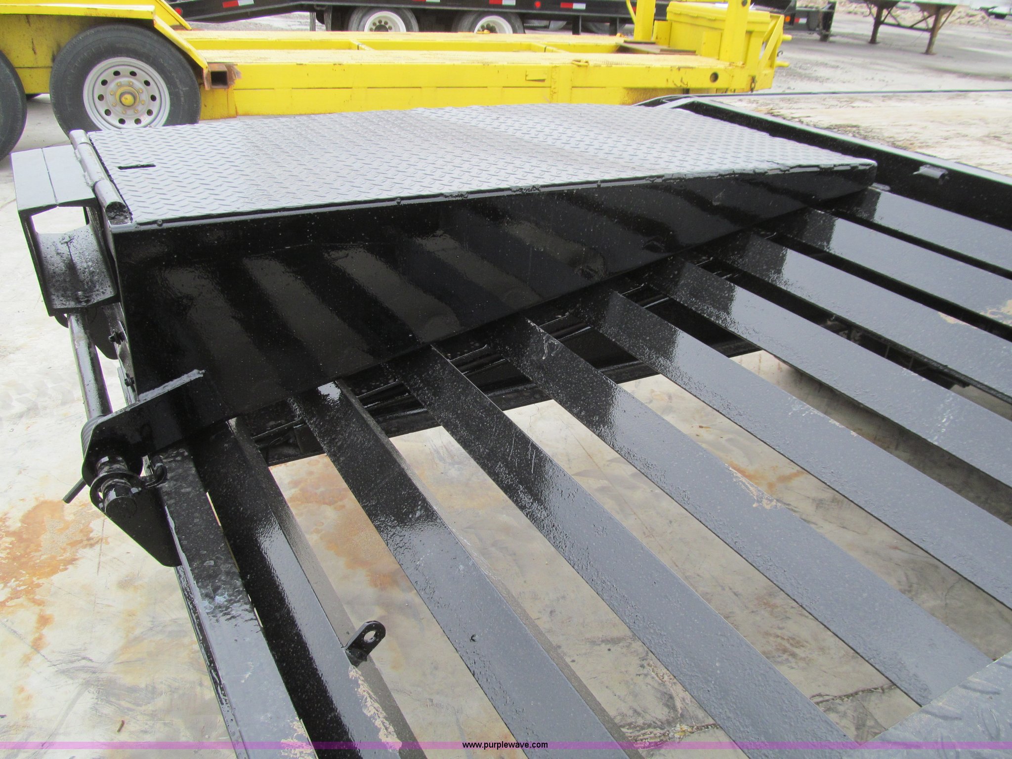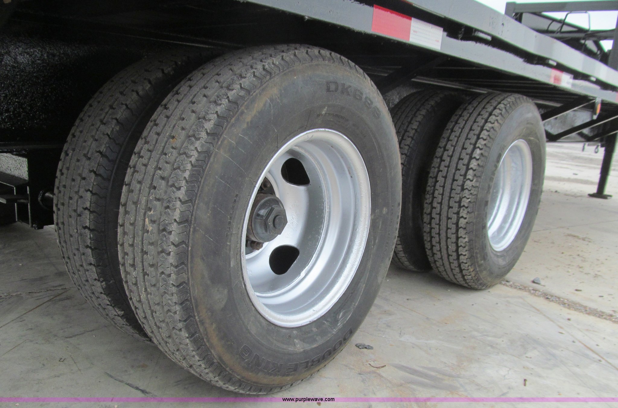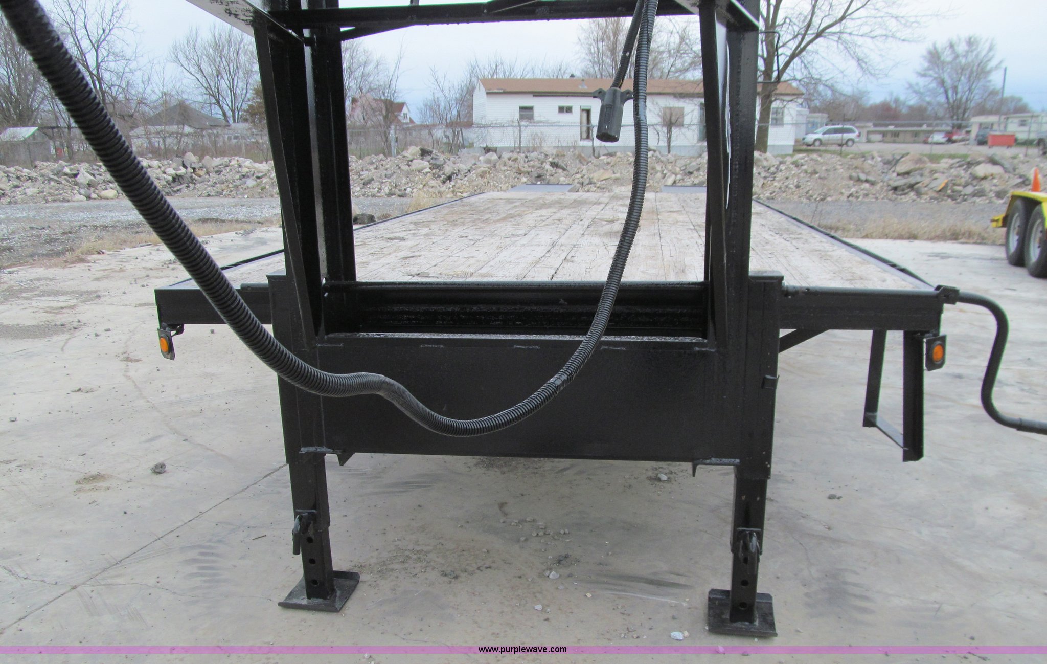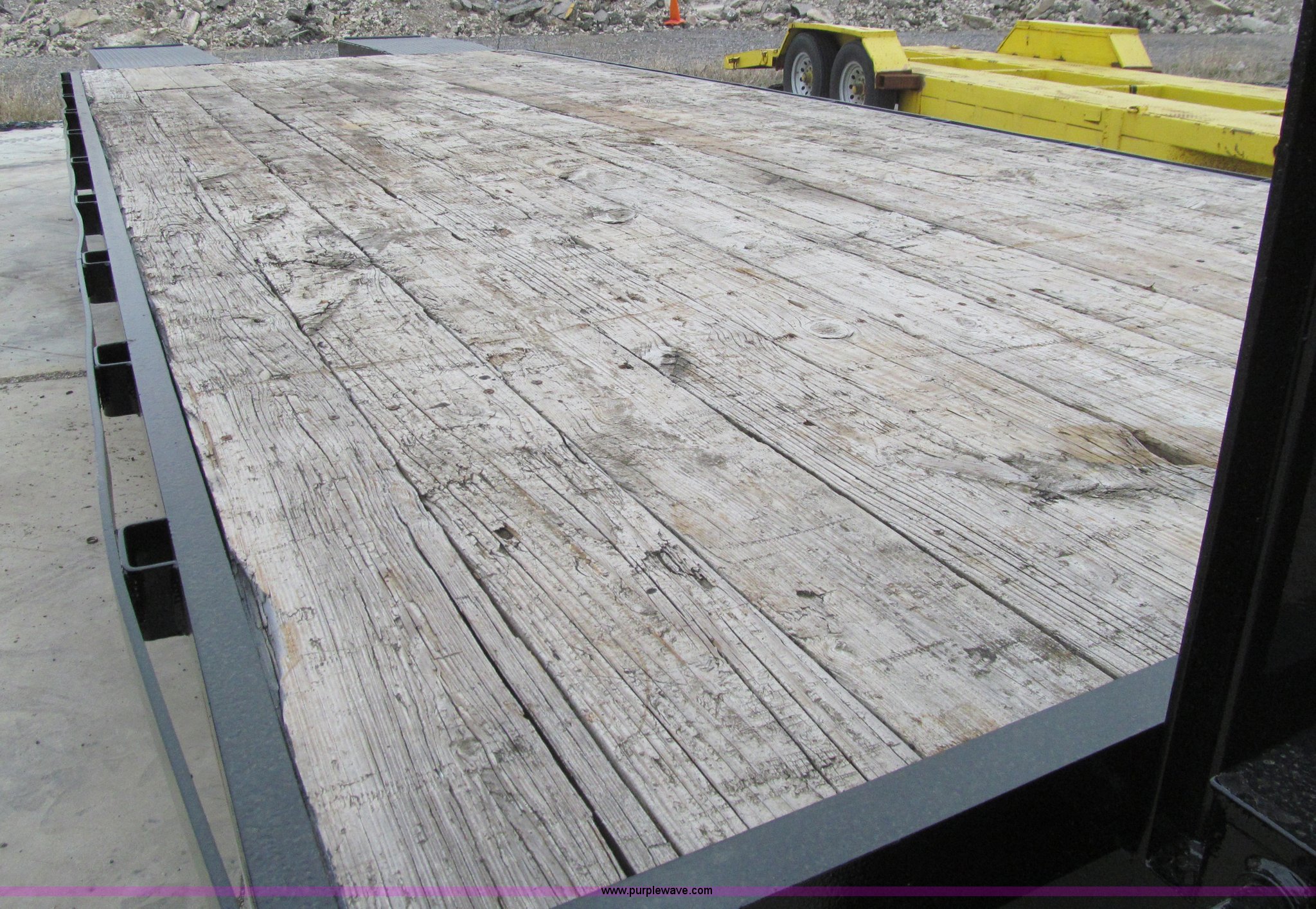 Purple Wave is selling a used Equip. Trailer in Iowa. This item is a 2005 Trailerman equipment trailer with the following: 34.5'L overall, 39.5" floor height, 20'L deck, 5'L beavertail, Wood deck, Stake pockets, 5'L ramps, Gooseneck hitch, Dual leg landing gear, Spring suspension, Electric brakes, Tandem axle, Steel wheels, Recently replaced Double King ST235/80R16 tires, 10 ton capacity, GVWR 20,000 lbs, GAWR 10,000 lbs