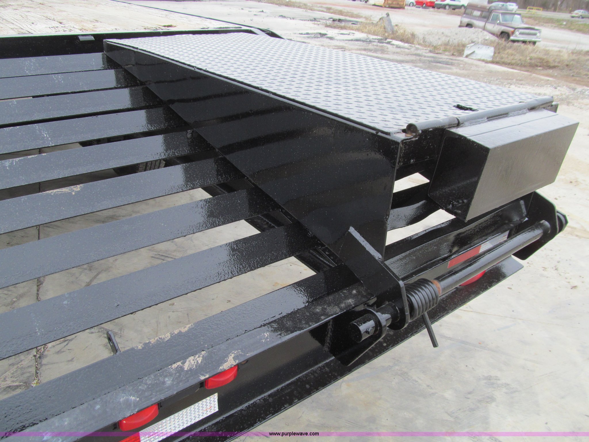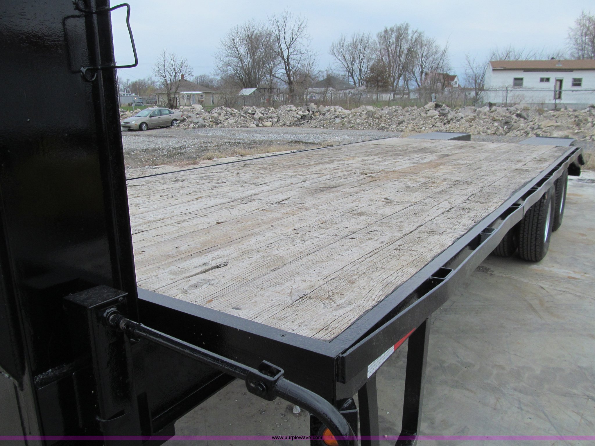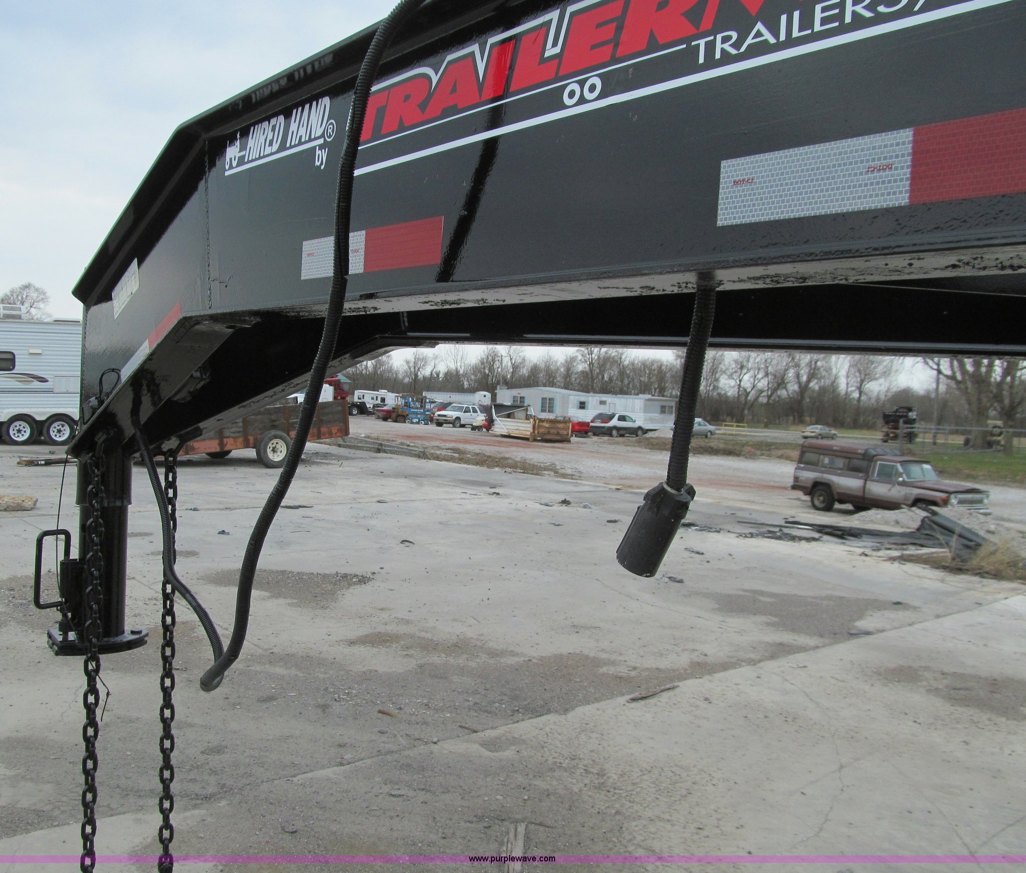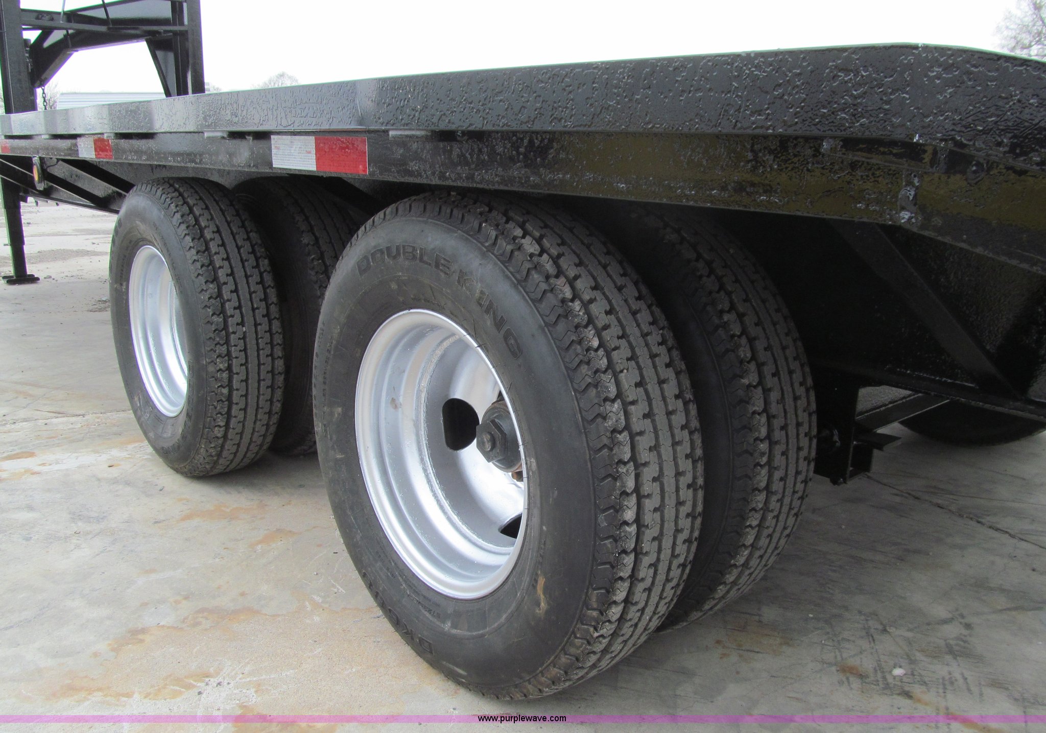 Purple Wave is selling a used Equip. Trailer in Iowa. This item is a 2005 Trailerman equipment trailer with the following: 34.5'L overall, 39.5" floor height, 20'L deck, 5'L beavertail, Wood deck, Stake pockets, 5'L ramps, Gooseneck hitch, Dual leg landing gear, Spring suspension, Electric brakes, Tandem axle, Steel wheels, Recently replaced Double King ST235/80R16 tires, 10 ton capacity, GVWR 20,000 lbs, GAWR 10,000 lbs