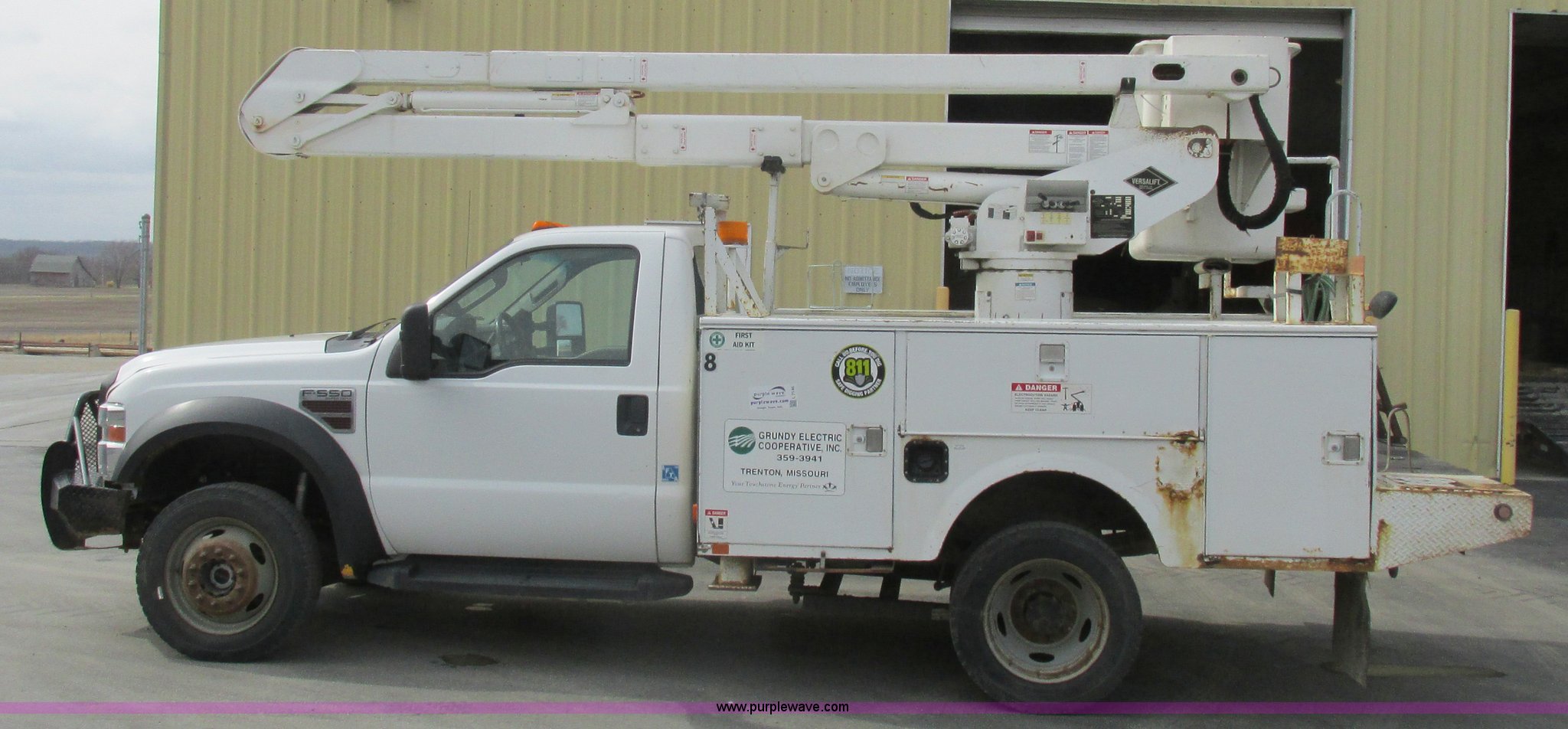 2008 Ford F550 Super Duty bucket truck has sold in Trenton, Missouri for $8360. Item L7146 sold on April 14th, 2016.