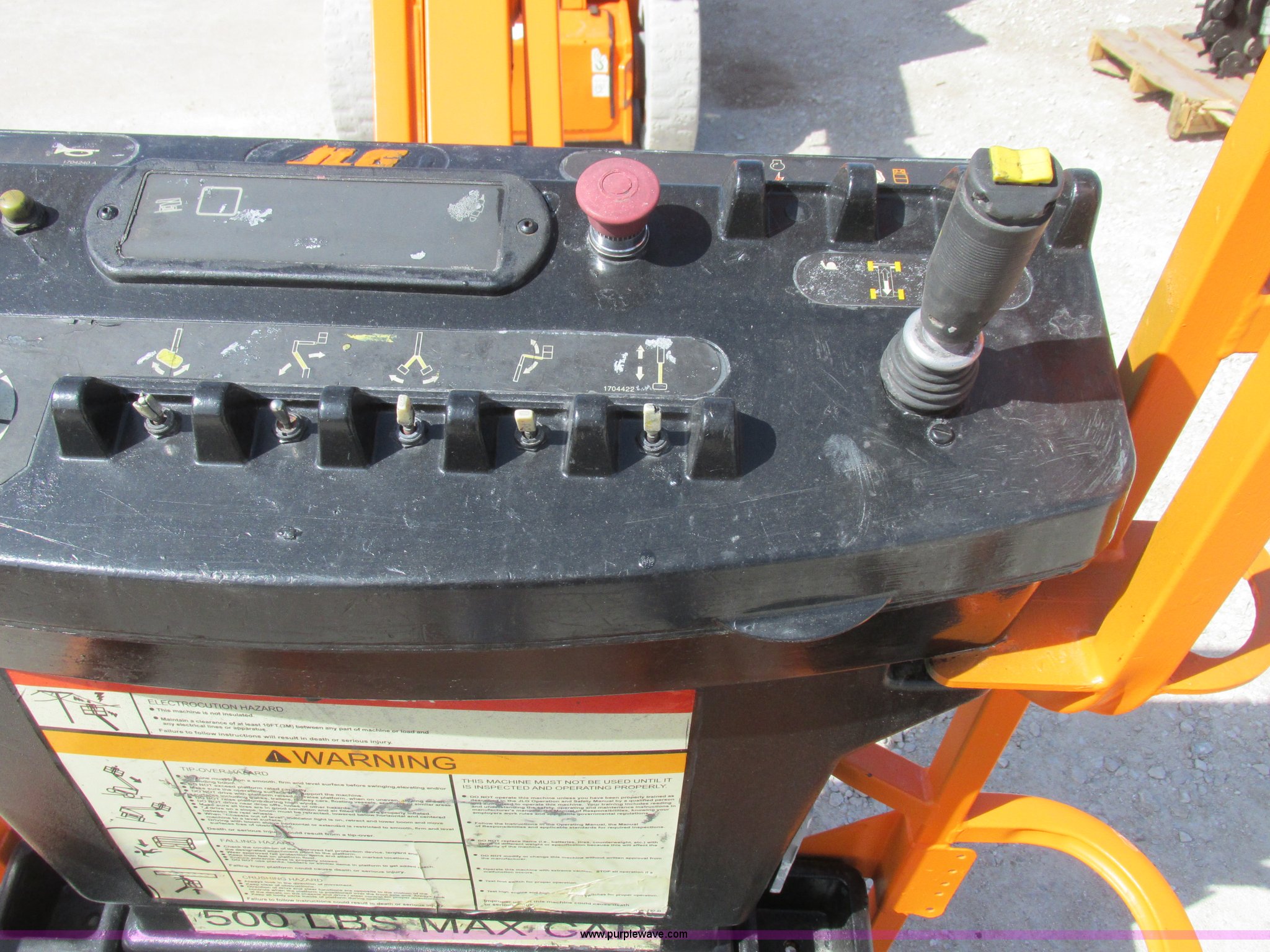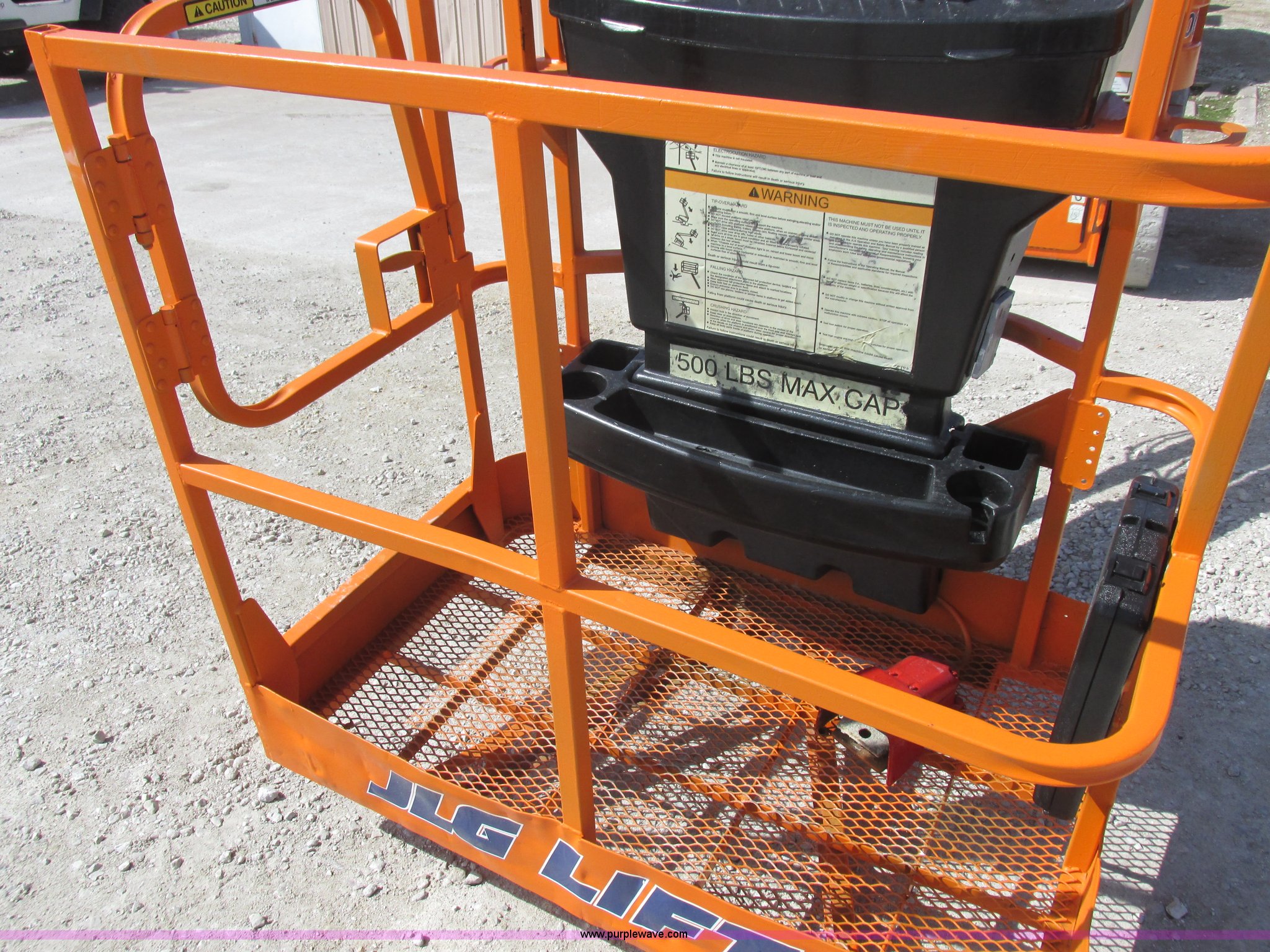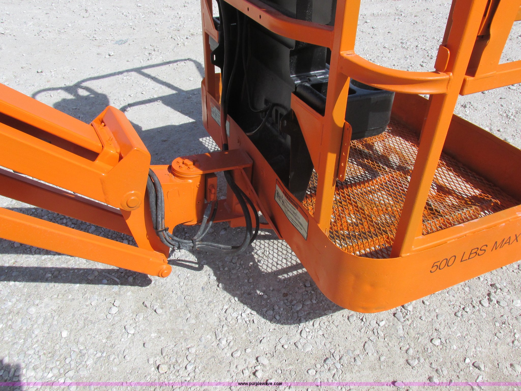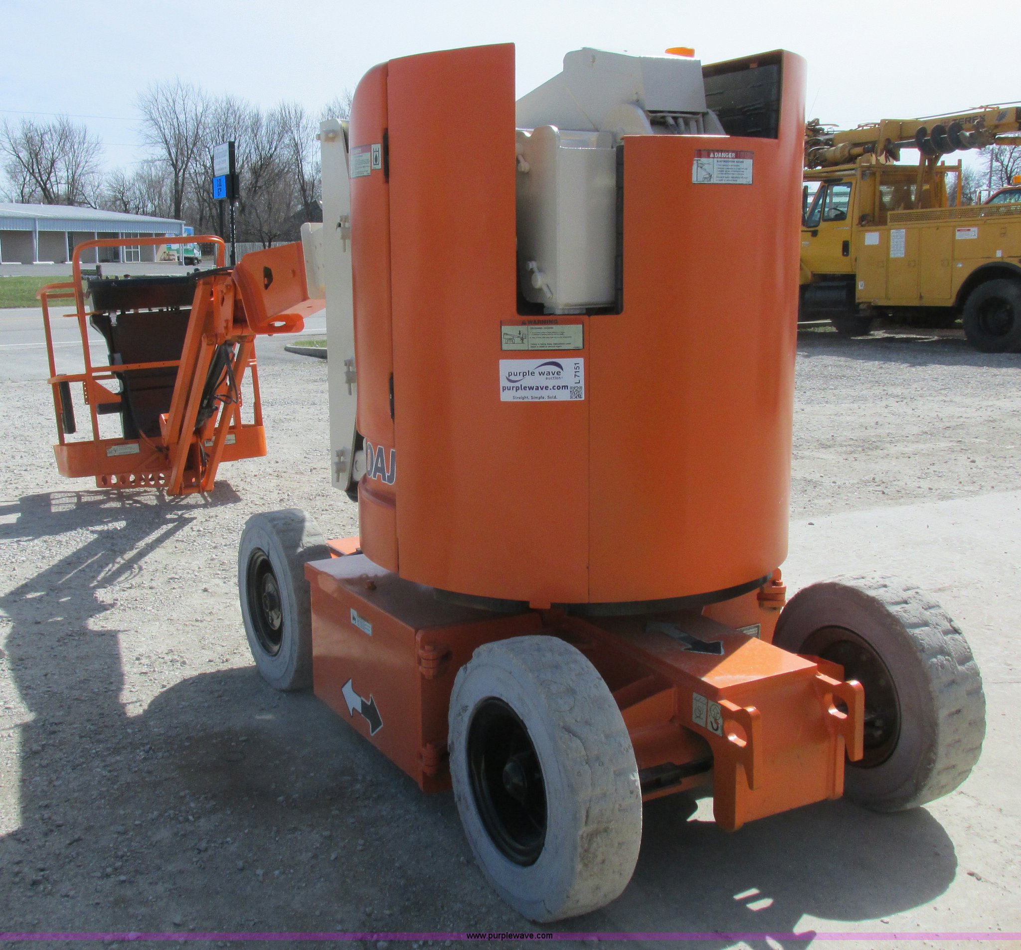Purple Wave is selling a used Boom Lift in Missouri. This item is a 2006 JLG E300AJP boom lift with the following: 1,092 hours on meter, Electric operation, Hydrostatic transmission, 500 lbs maximum lift capacity, 30' maximum lift height, Articulating boom, 30"L x 48"W platform, AC power outlet, Platform and ground controls, Safety alarm, 25 x 7-12 solid tires, Serial 0300092605