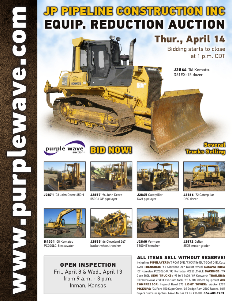 SOLD! April 14 JP Pipeline Construction Inc Equipment Reduction Auction