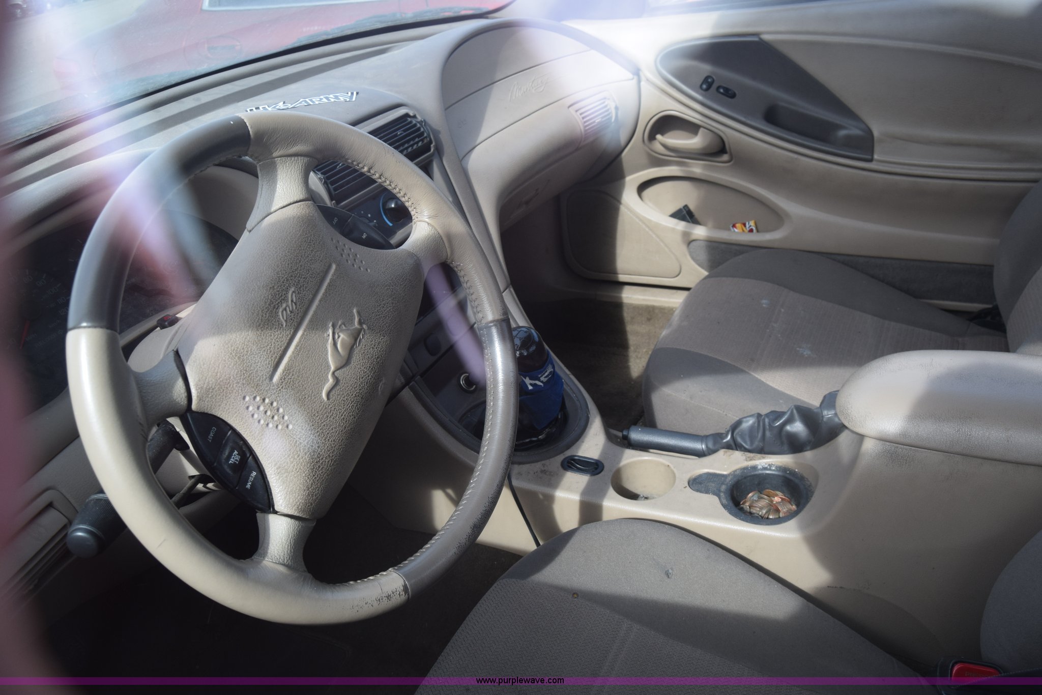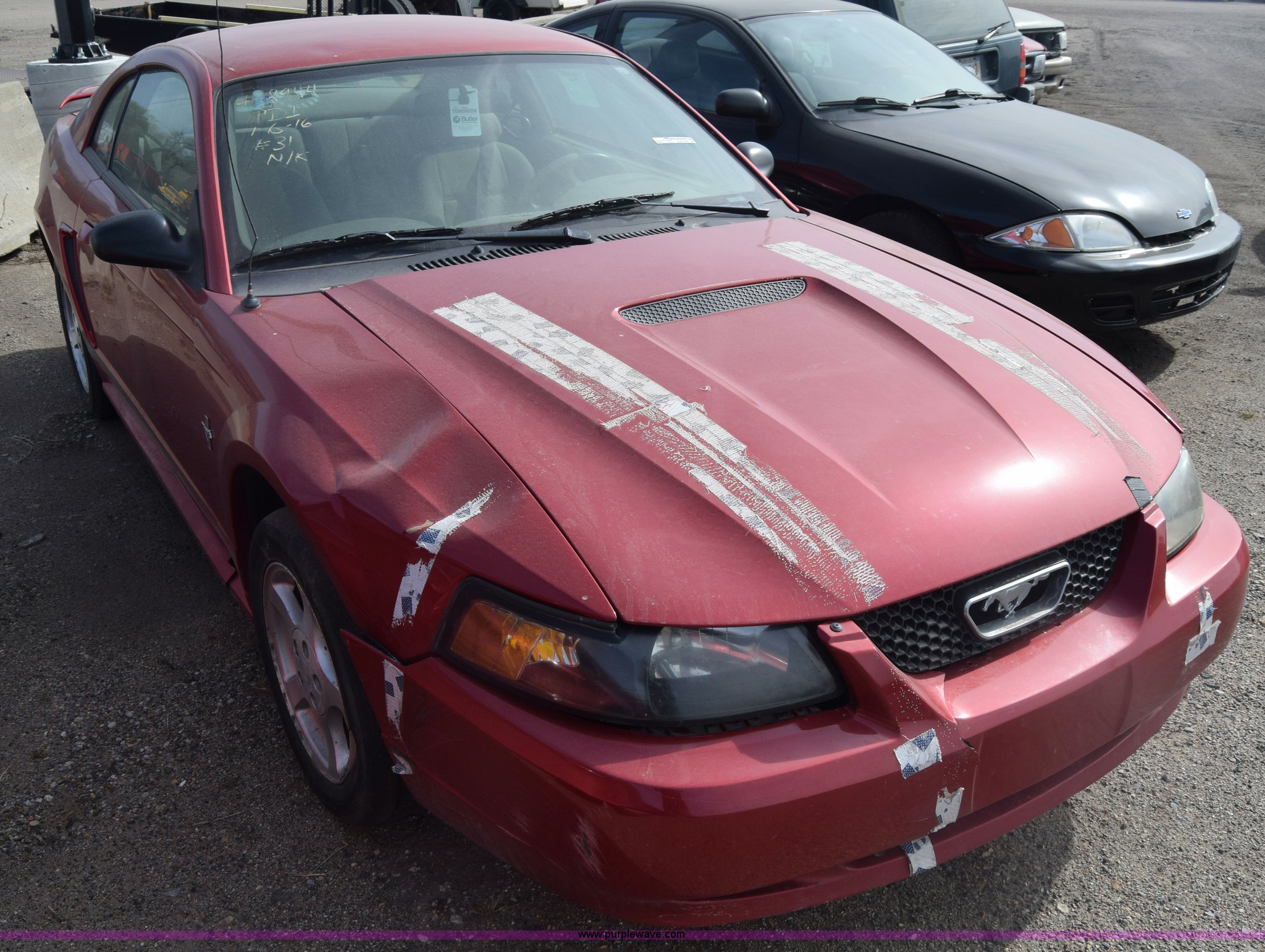 Purple Wave is selling a used Passenger Vehicle in Kansas. This item is a 2002 Ford Mustang with the following: Unknown miles on odometer, 3.8L V6 OHV 12V gas engine, Manual transmission, AC and heat, Power windows and locks, Cloth interior, 225/55R16 tires, Interior/exterior cosmetic damage, Dents, Scratches, Stereo removed, Doors locked, Case# 15C001279