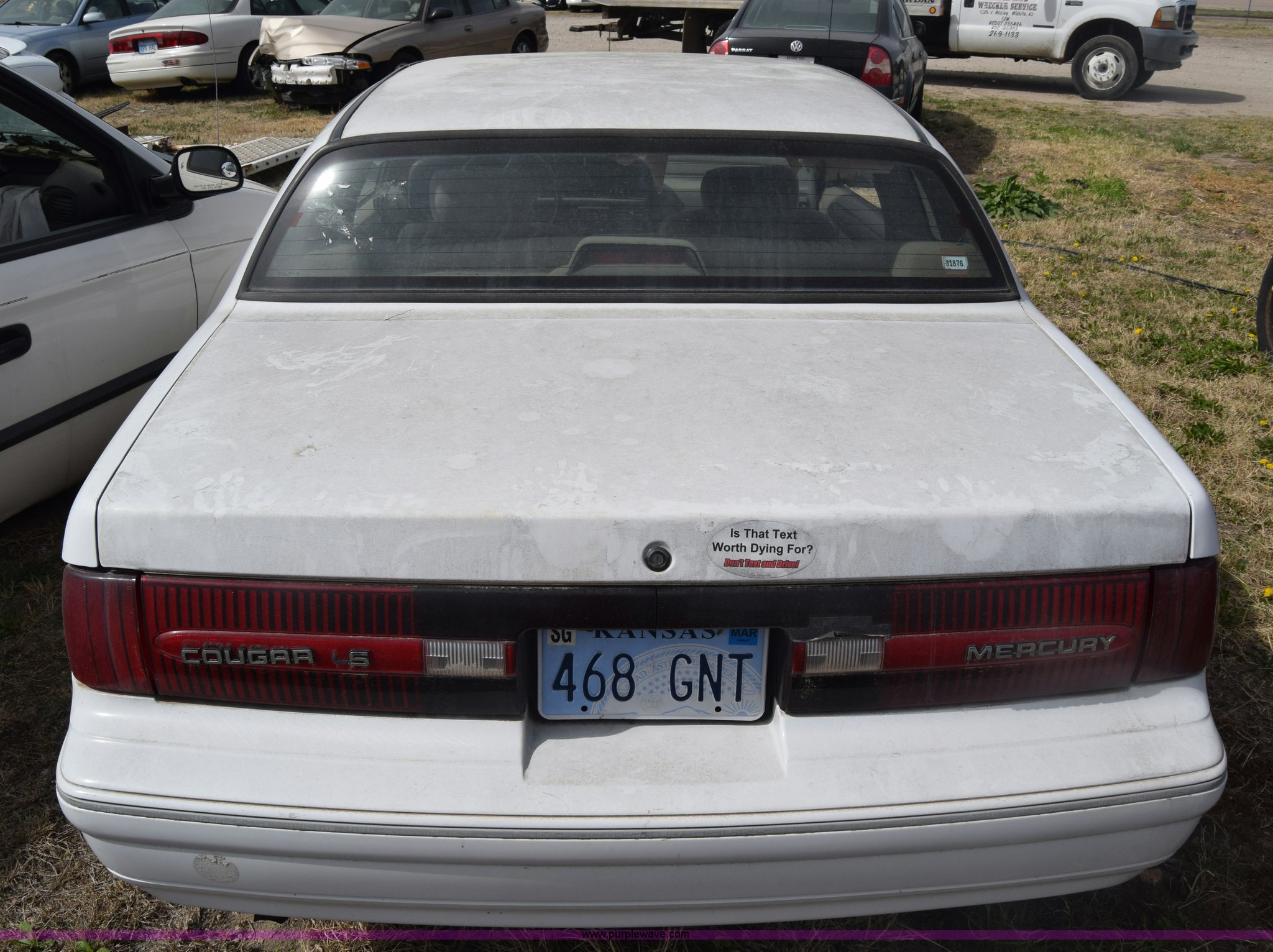 Purple Wave is selling a used Passenger Vehicle in Kansas. This item is a 1992 Mercury Cougar with the following: Unknown miles on odometer, 3.8L V6 OHV 12V gas engine, Automatic transmission, AC and heat, AM/FM, Power windows and locks, Cloth interior, 215/70R15 tires, Interior/exterior cosmetic damage, Dents, Scratches, Cracked windshield, Case# 15C83794