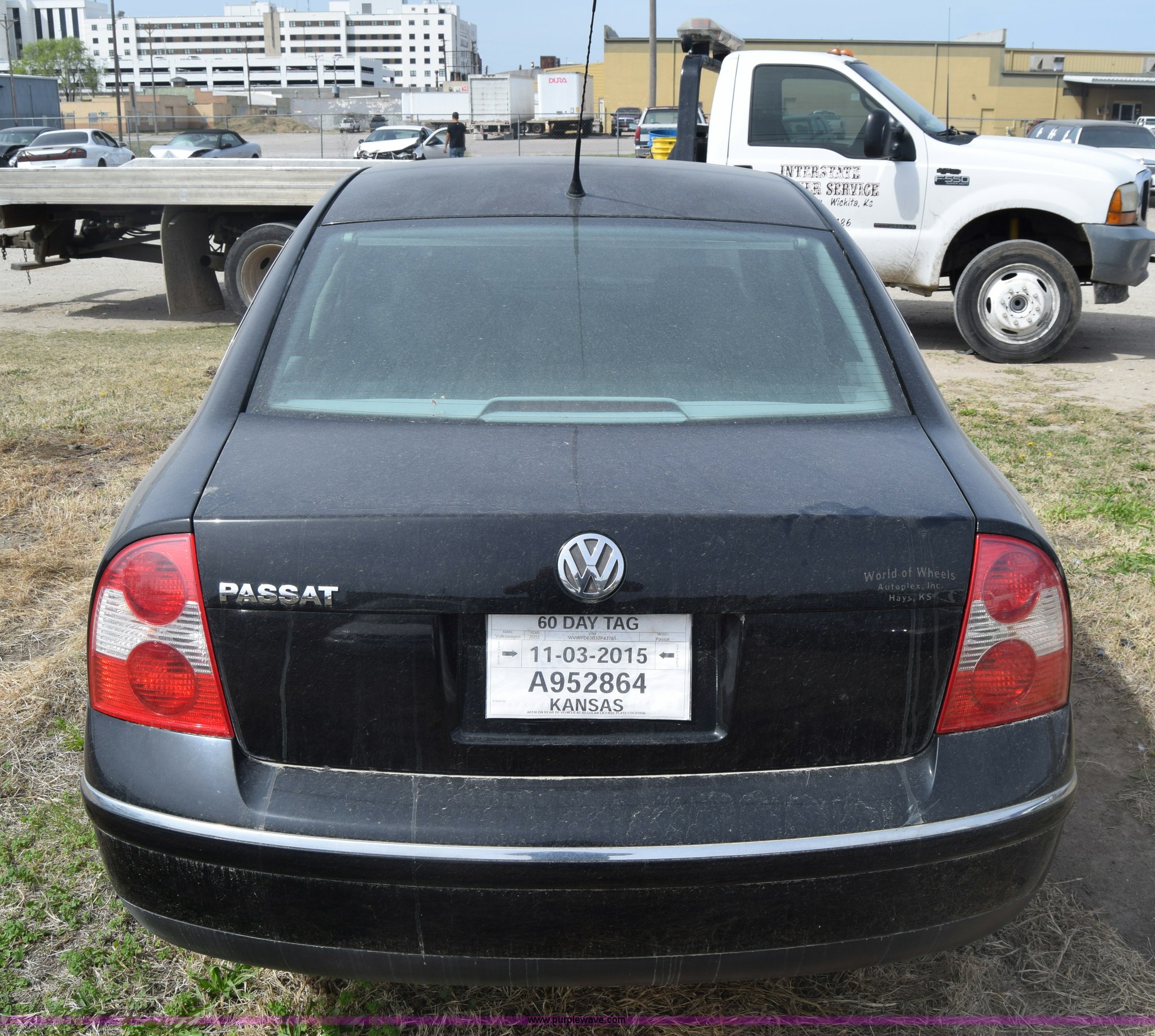 2002 Volkswagen Passat. Unknown miles on odometer, 1.8L L4 DOHC 20V supercharged gas engine, Automatic transmission, AC and heat, Tilt, Cruise, AM/FM/CD, Power windows, locks, and mirrors, Leather interior, Sunroof, 195/55R15 tires, Interior/exterior cosmetic damage, Dents, Scratches, Case# 15C63652. Vehicle is abandoned. Condition and history are unknown. No additional information is available. Vehicle does not have keys unless notated otherwise in the item listing.. View City Of Wichita Terms for title acquisition and item removal requirements.. WVWPD63B32P437651. Interstate Wrecker Service. 1028 N Mosely. Wichita, KS 67214