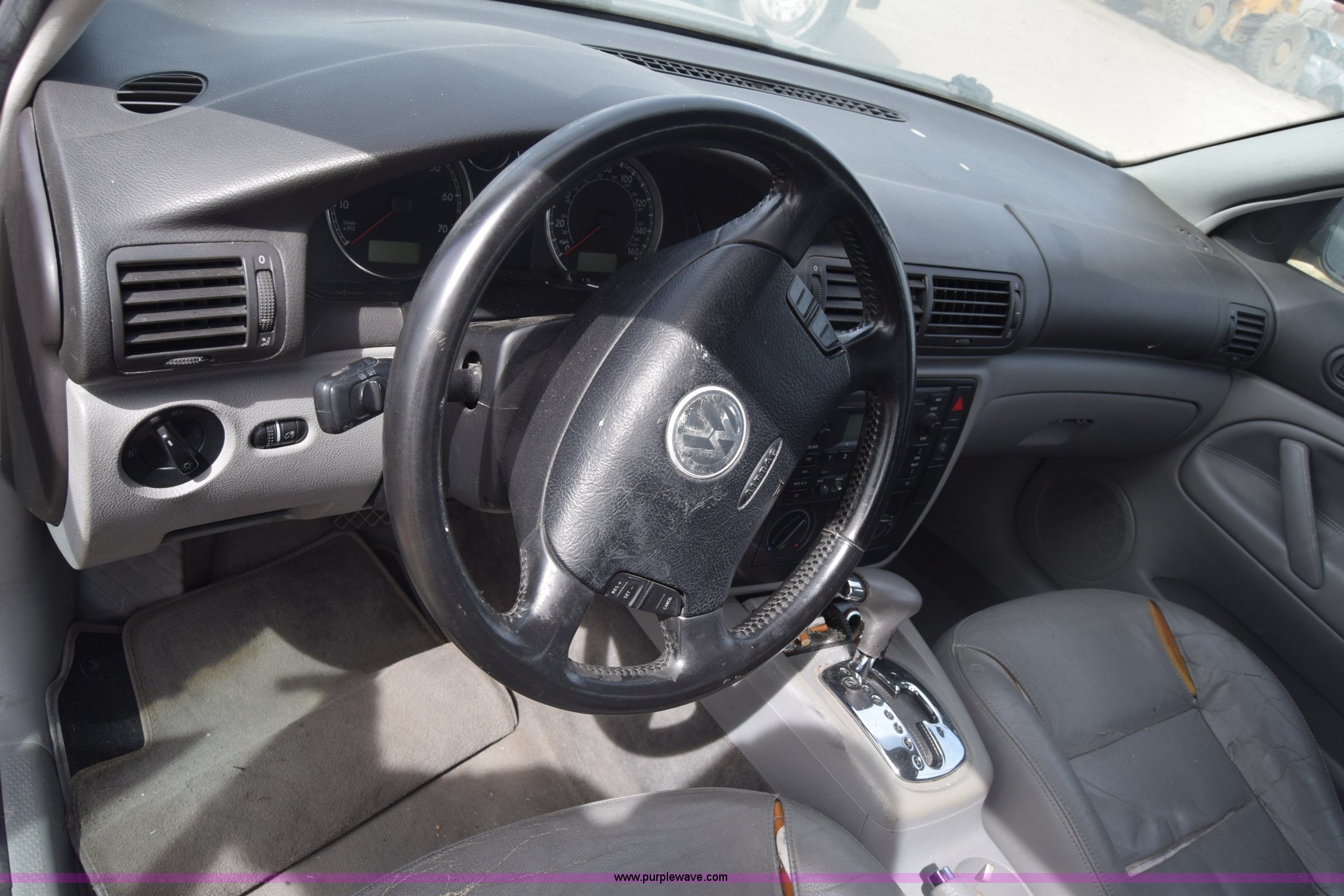 Purple Wave is selling a used Passenger Vehicle in Kansas. This item is a 2002 Volkswagen Passat with the following: Unknown miles on odometer, 1.8L L4 DOHC 20V supercharged gas engine, Automatic transmission, AC and heat, Tilt, Cruise, AM/FM/CD, Power windows, locks, and mirrors, Leather interior, Sunroof, 195/55R15 tires, Interior/exterior cosmetic damage, Dents, Scratches, Case# 15C63652