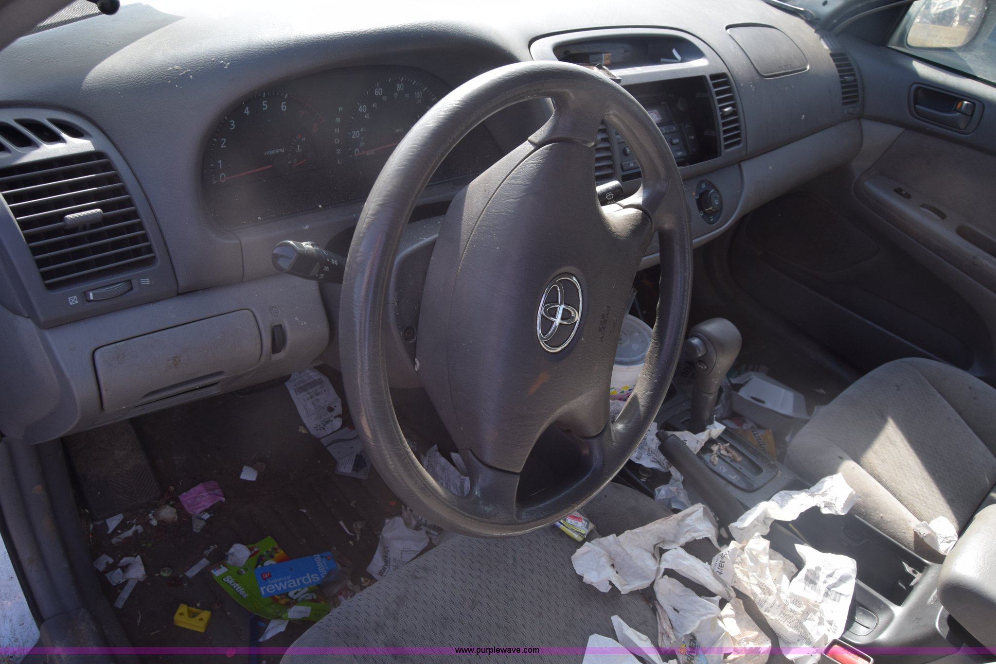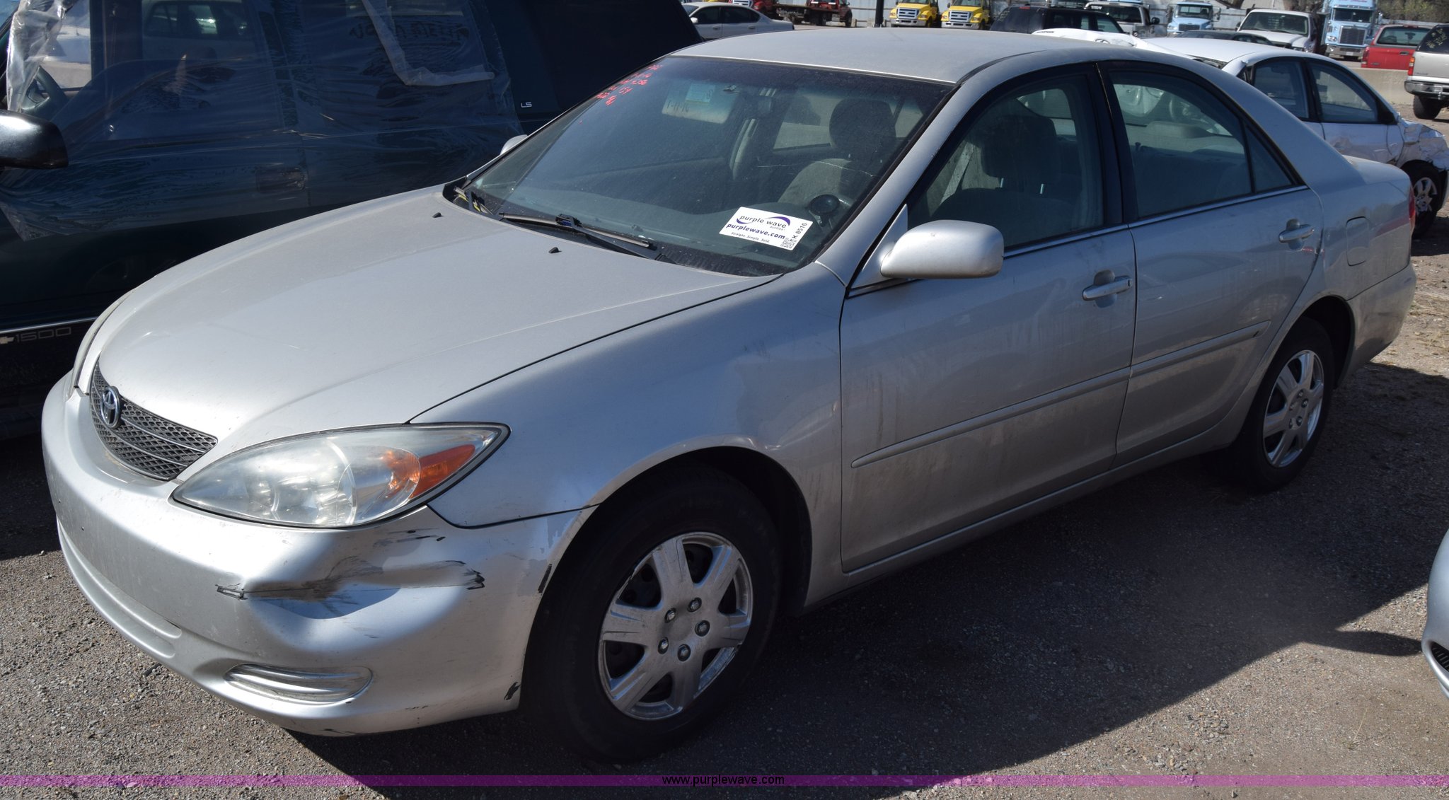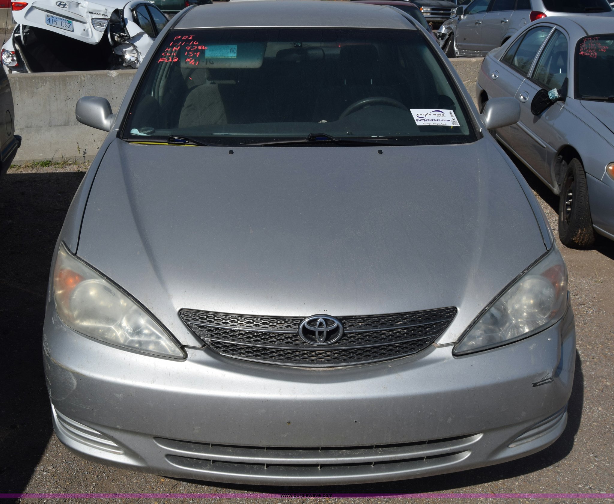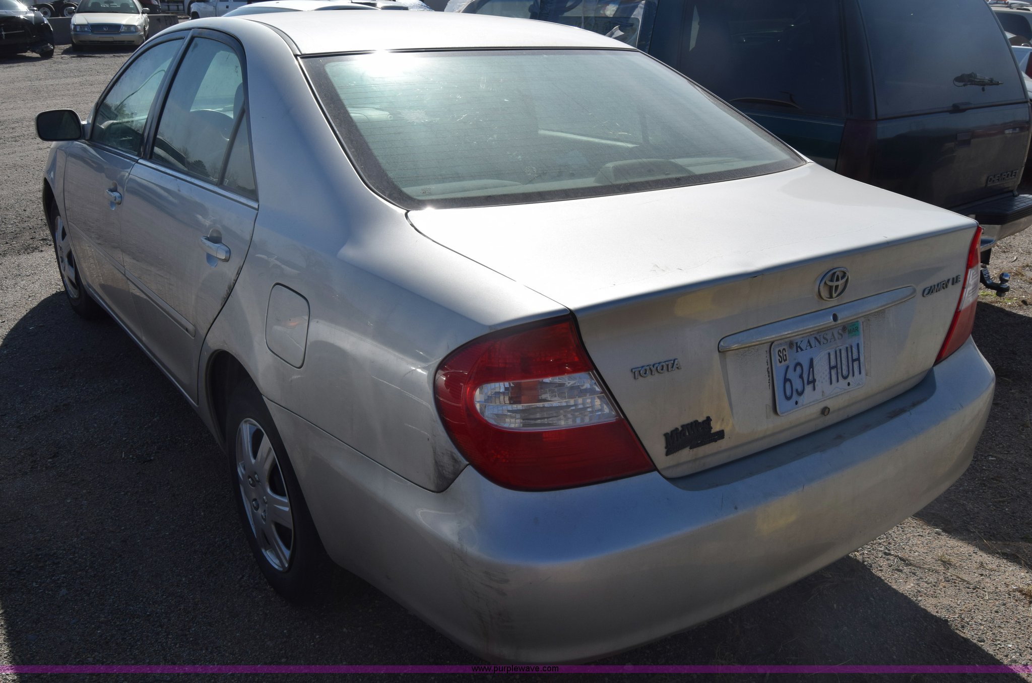 Purple Wave is selling a used Passenger Vehicle in Kansas. This item is a 2003 Toyota Camry with the following: Unknown miles on odometer, 2.4L L4 DOHC 16V gas engine, Automatic transmission, AC and heat, AM/FM/CD, Power windows, locks, and mirrors, Cloth interior, 205/70R15 tires, Interior/exterior cosmetic damage, Dents, Scratches, Cracked windshield, Case# 16C022314