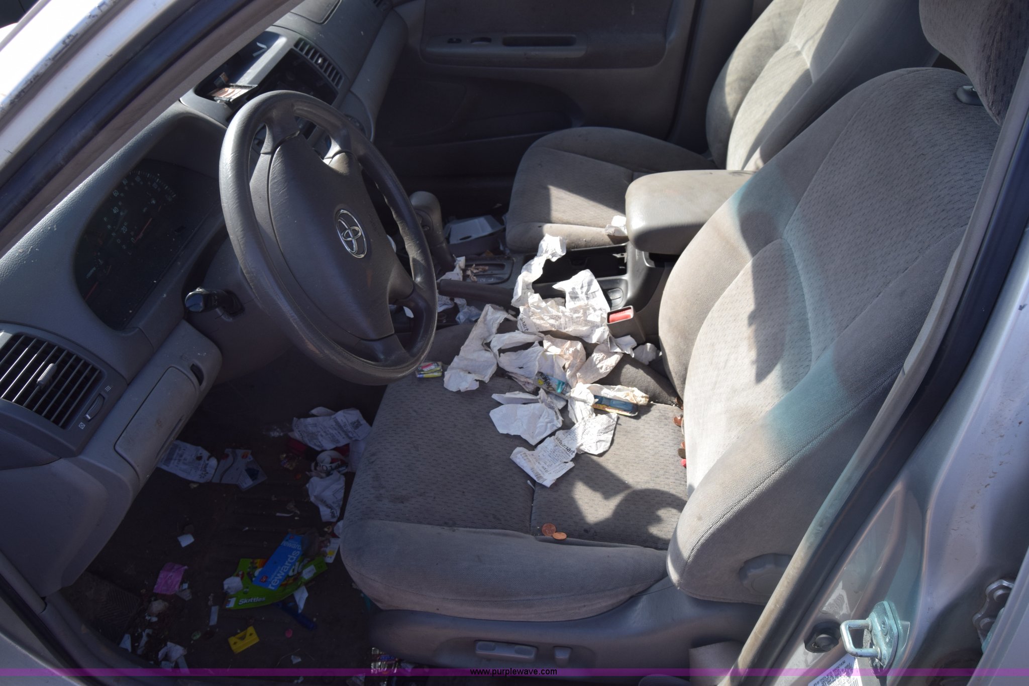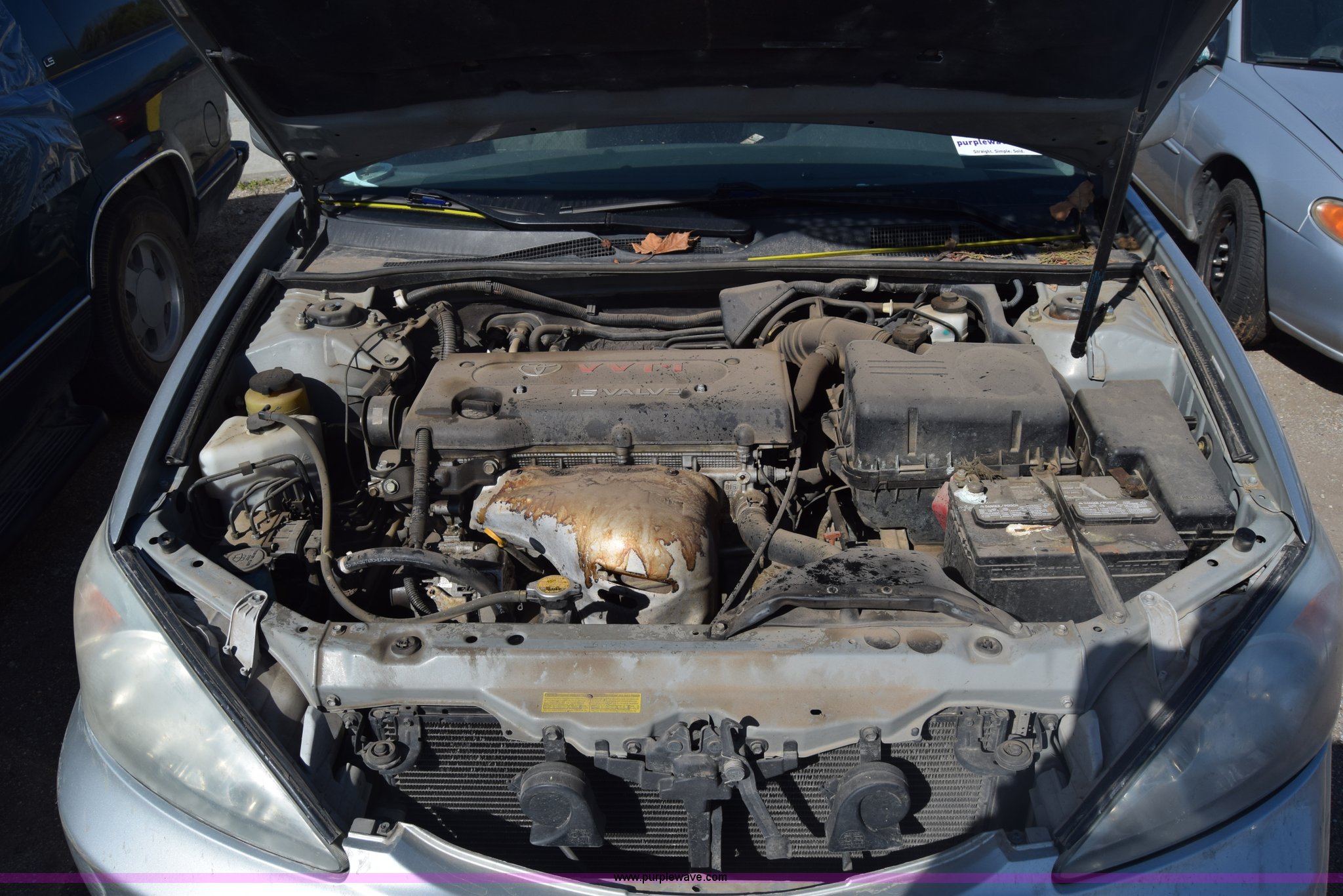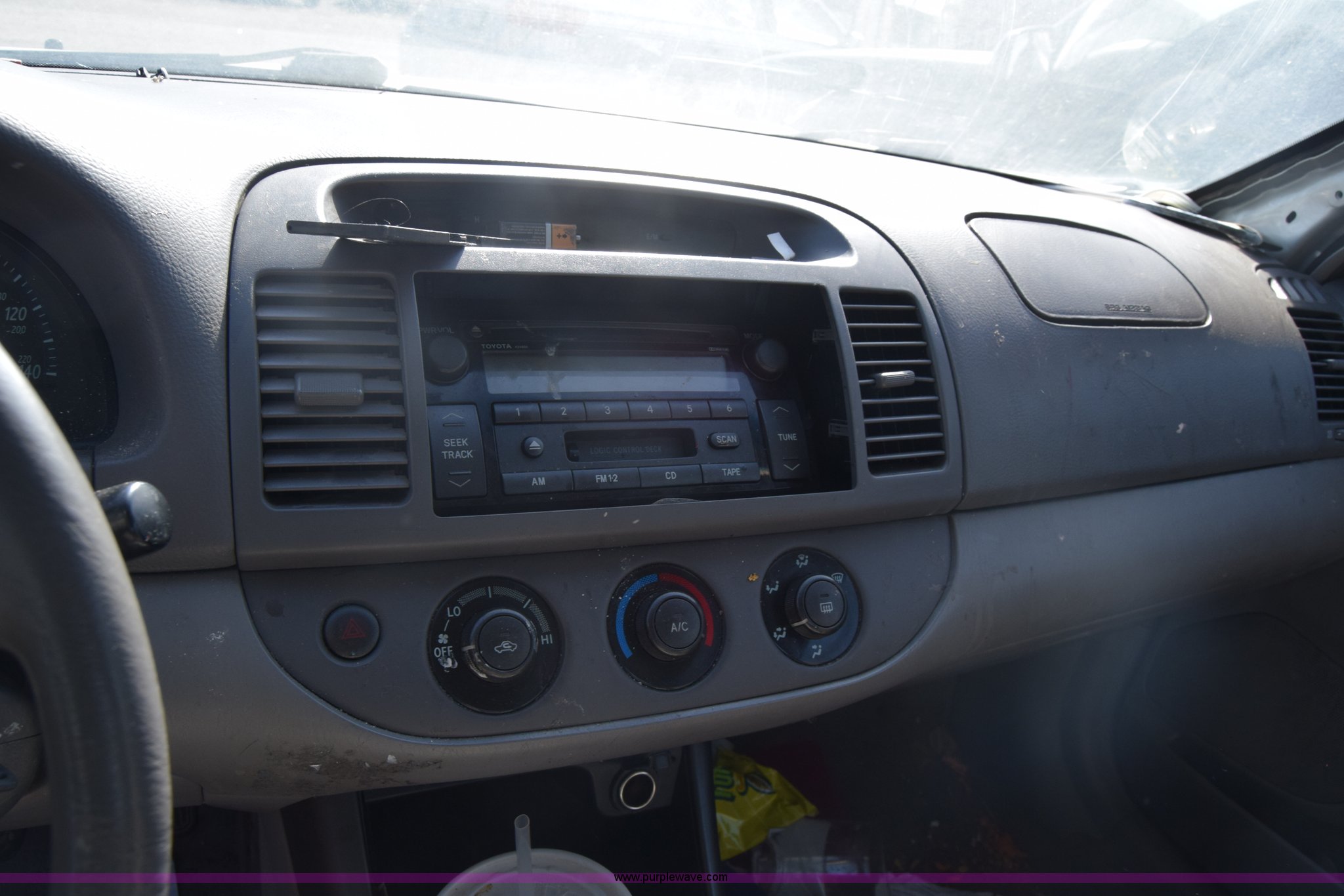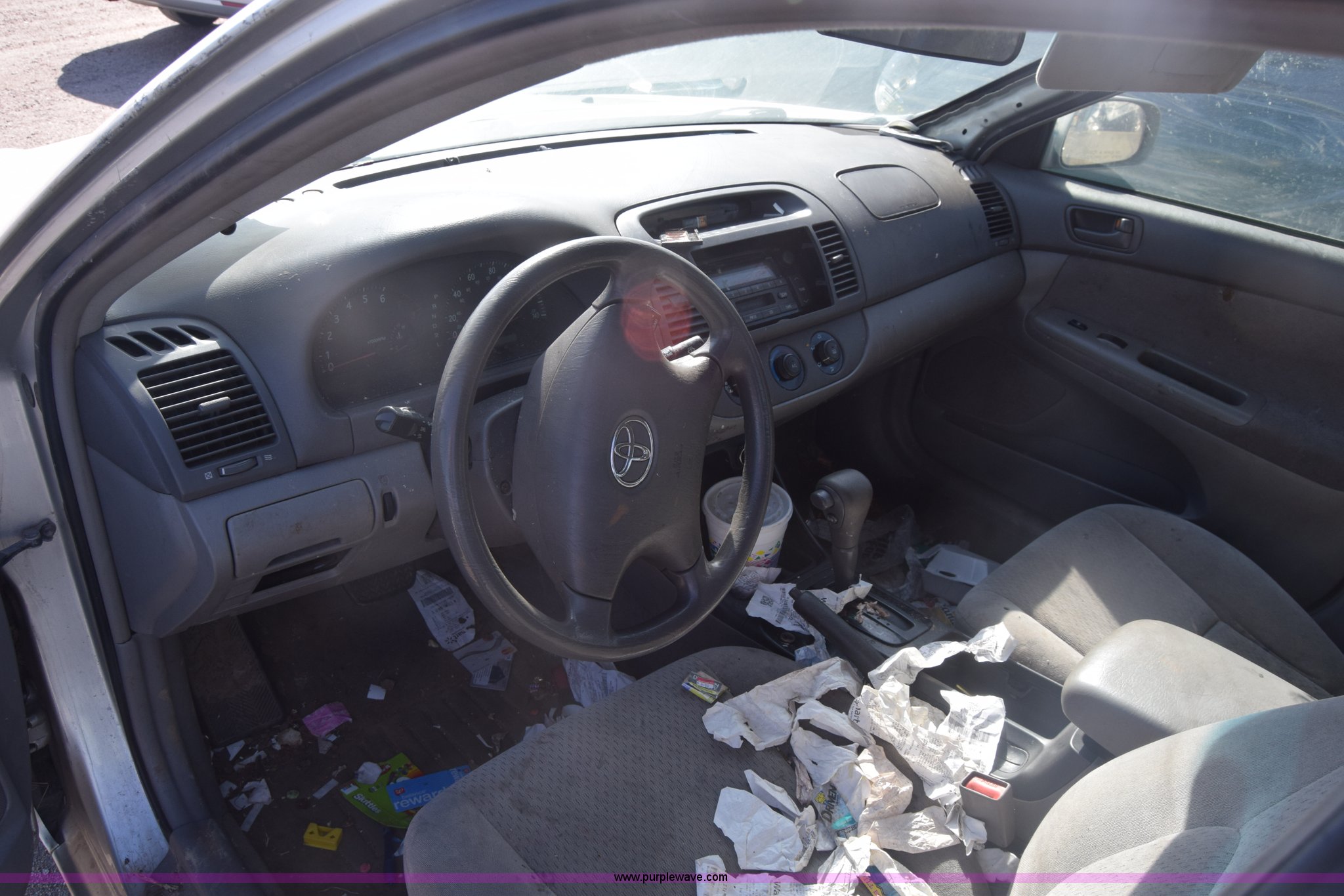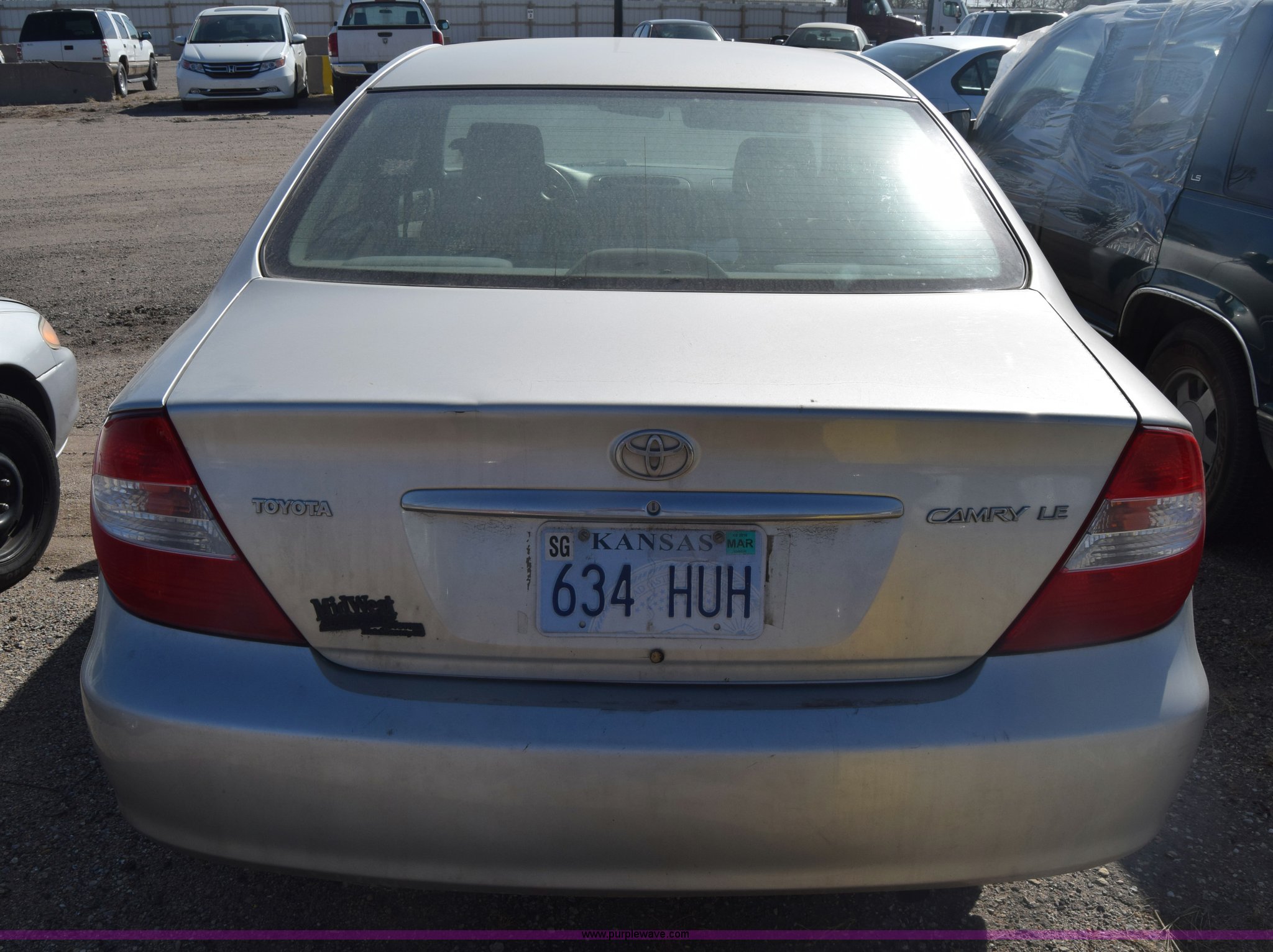 Purple Wave is selling a used Passenger Vehicle in Kansas. This item is a 2003 Toyota Camry with the following: Unknown miles on odometer, 2.4L L4 DOHC 16V gas engine, Automatic transmission, AC and heat, AM/FM/CD, Power windows, locks, and mirrors, Cloth interior, 205/70R15 tires, Interior/exterior cosmetic damage, Dents, Scratches, Cracked windshield, Case# 16C022314