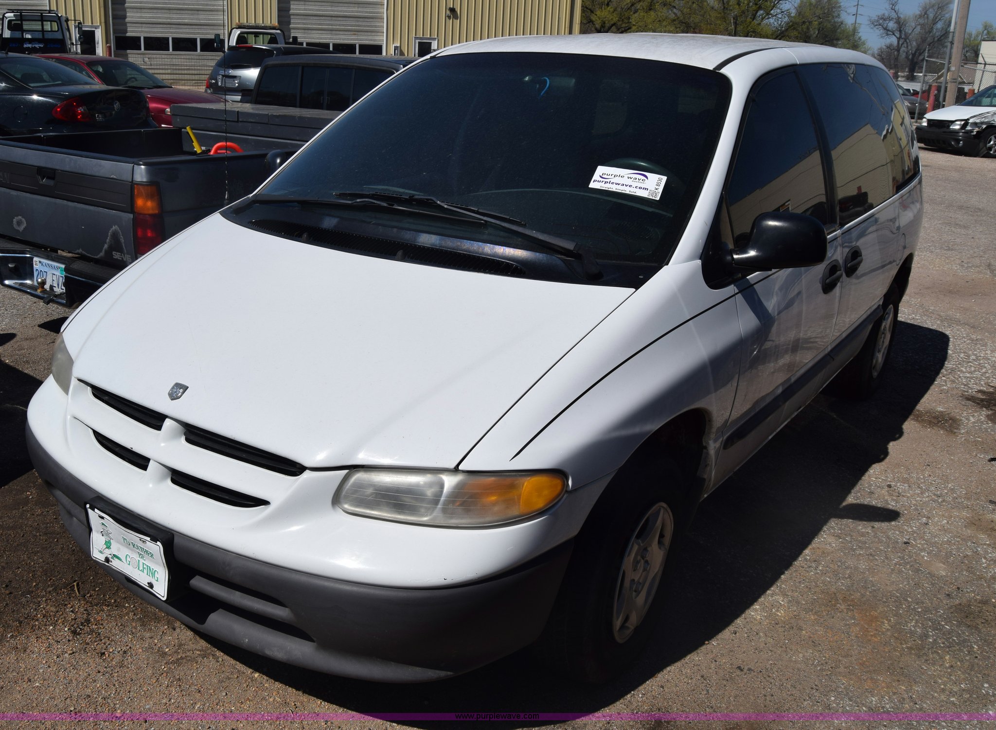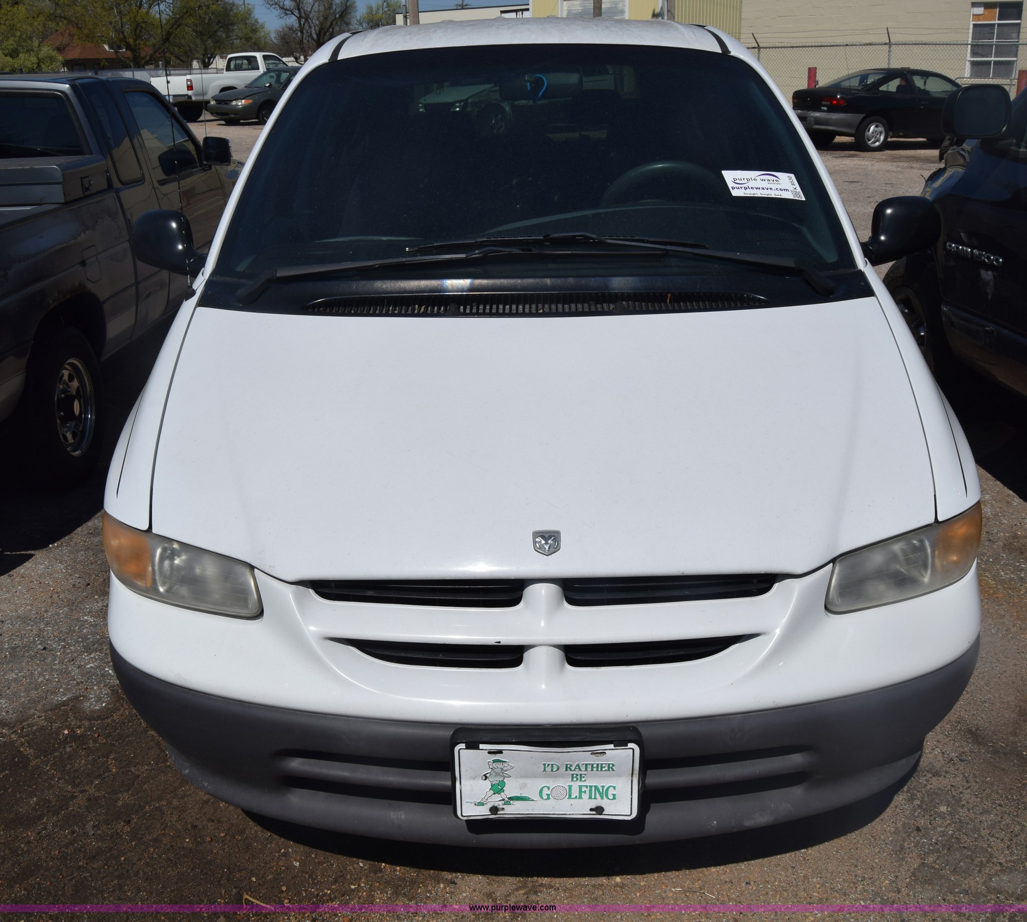Purple Wave is selling a used Passenger Vehicle in Kansas. This item is a 1998 Dodge Caravan van with the following: Unknown miles on odometer, 2.4L L4 DOHC 16V gas engine, Automatic transmission, AC and heat, AM/FM, Manual windows and locks, Cloth interior, Receiver hitch, 215/70R14 tires, Key, Interior/exterior cosmetic damage, Dents, Scratches, Dead batteries, Rust, Case# 15C084204
