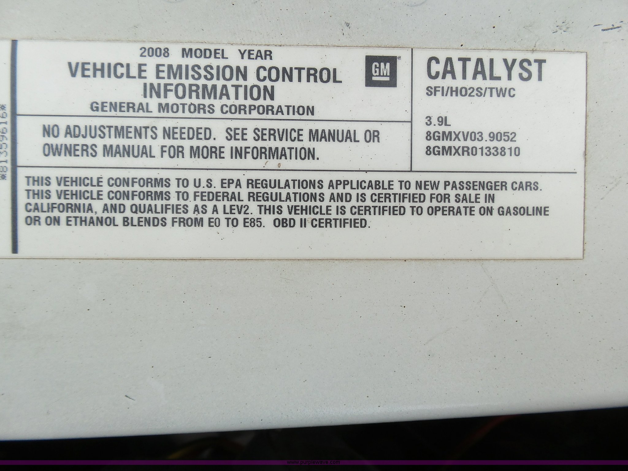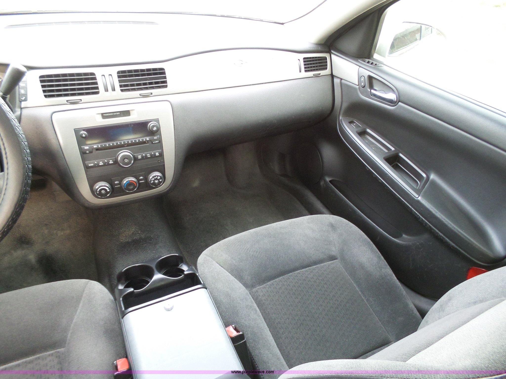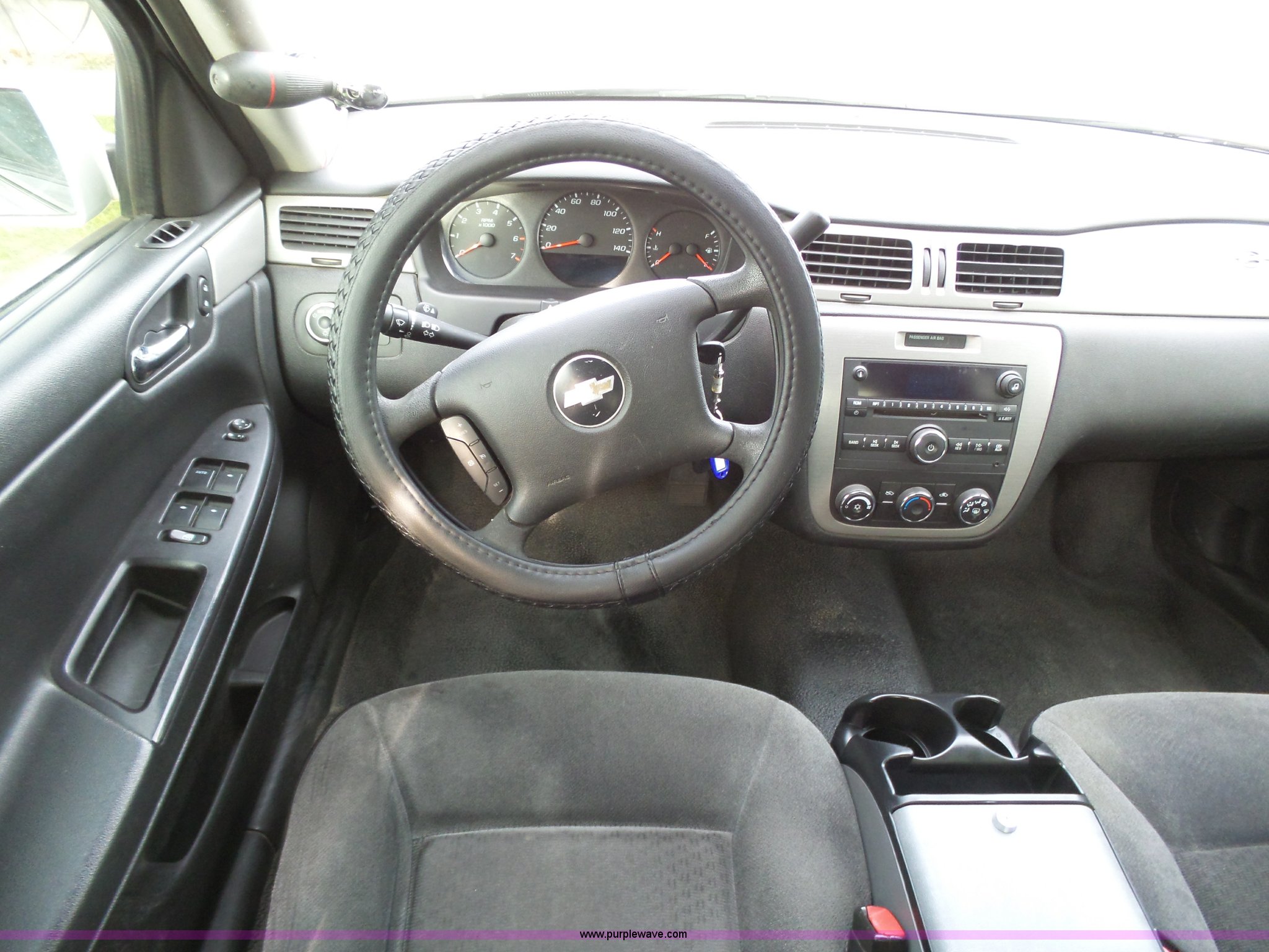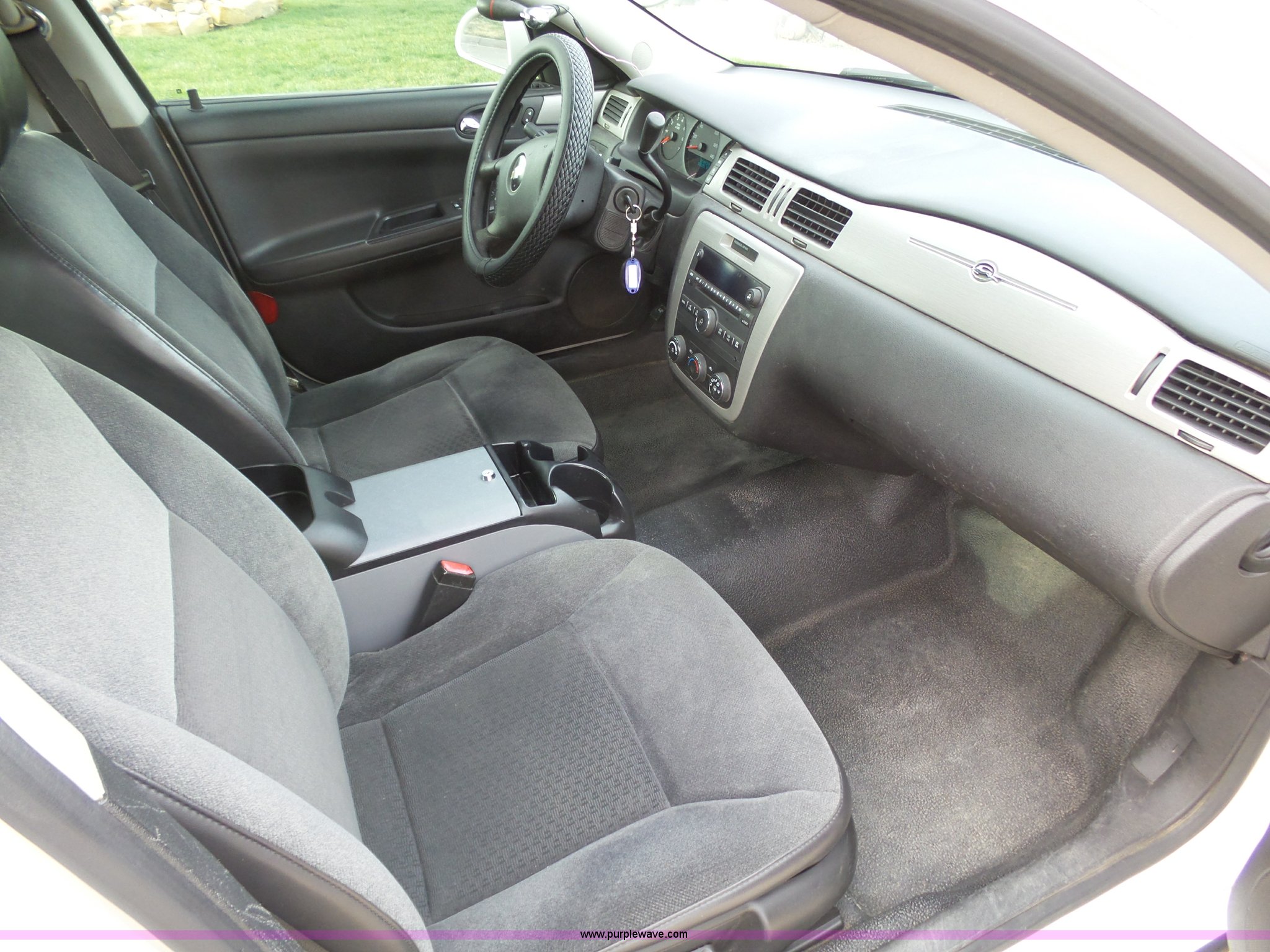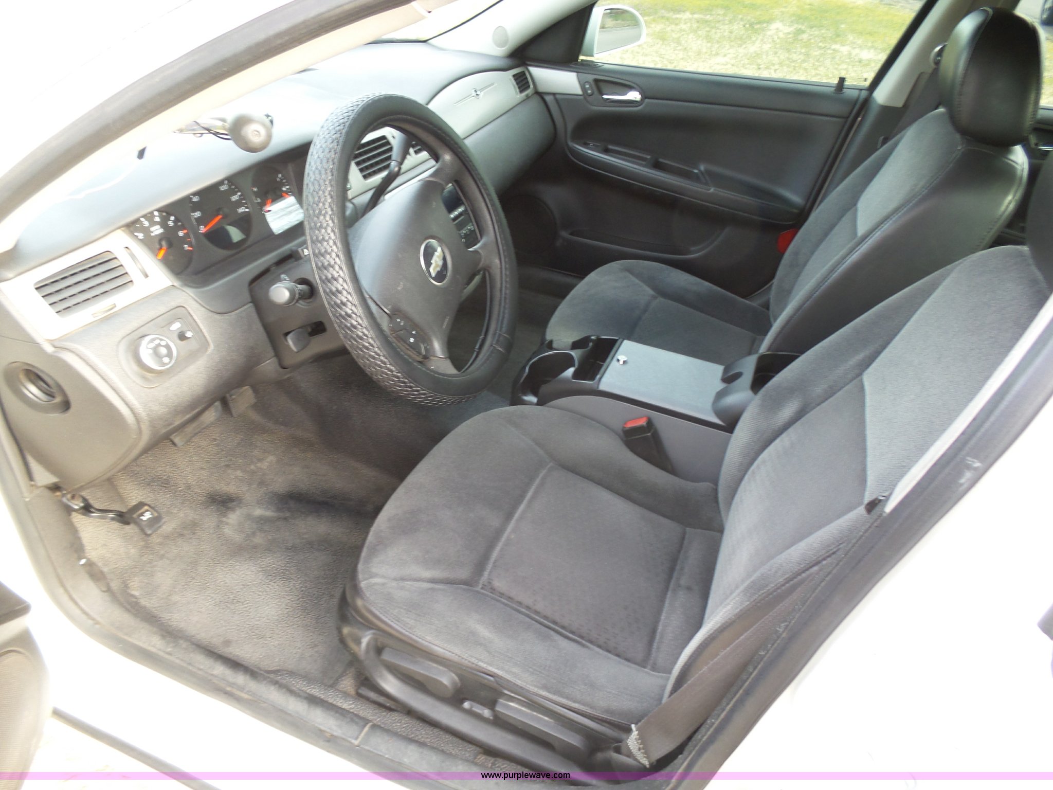 Purple Wave is selling a used Passenger Vehicle in Kansas. This item is a 2008 Chevrolet Impala Police with the following: 100,151 miles on odometer, 3.9L V6 OHV 12V FFV gas engine, Automatic transmission, AC and heat, Tilt, Cruise, AM/FM/CD, Power windows, locks, mirrors, and seats, Cloth interior, Active fuel management system, Spotlight, 225/60R16 tires, Dents, Paint chipping