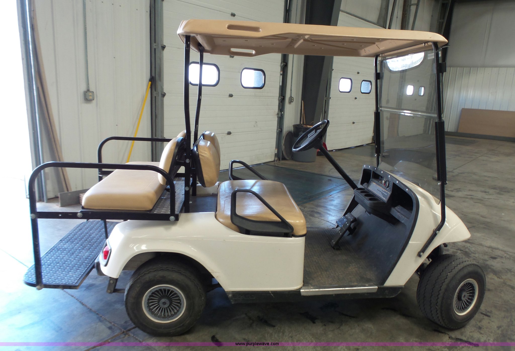 Purple Wave is selling a used Golf Cart in Kansas. This item is a 2006 Ez-go golf cart with the following: Two cylinder gas engine, Canopy, Vinyl seat, Removable rear seat, Two bag harness and basket, Plexiglass windshield, Headlights, 18x8.50-8 tires
