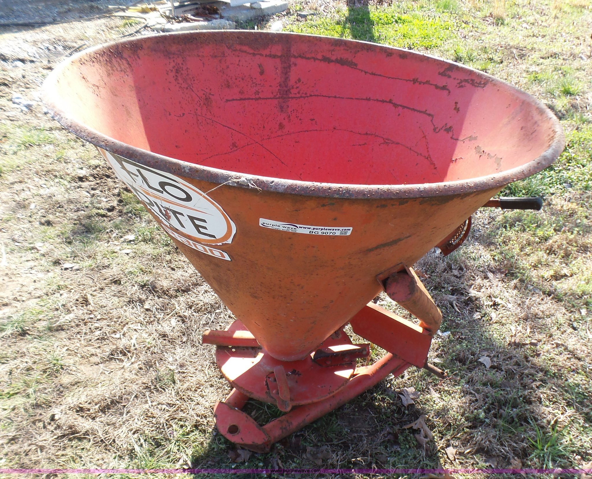 Purple Wave is selling a used Applicator Attach. in Missouri. This item is a Flo-Rite P300 spreader with the following: 41"H, 540 PTO, Three point, Serial 07-F6571