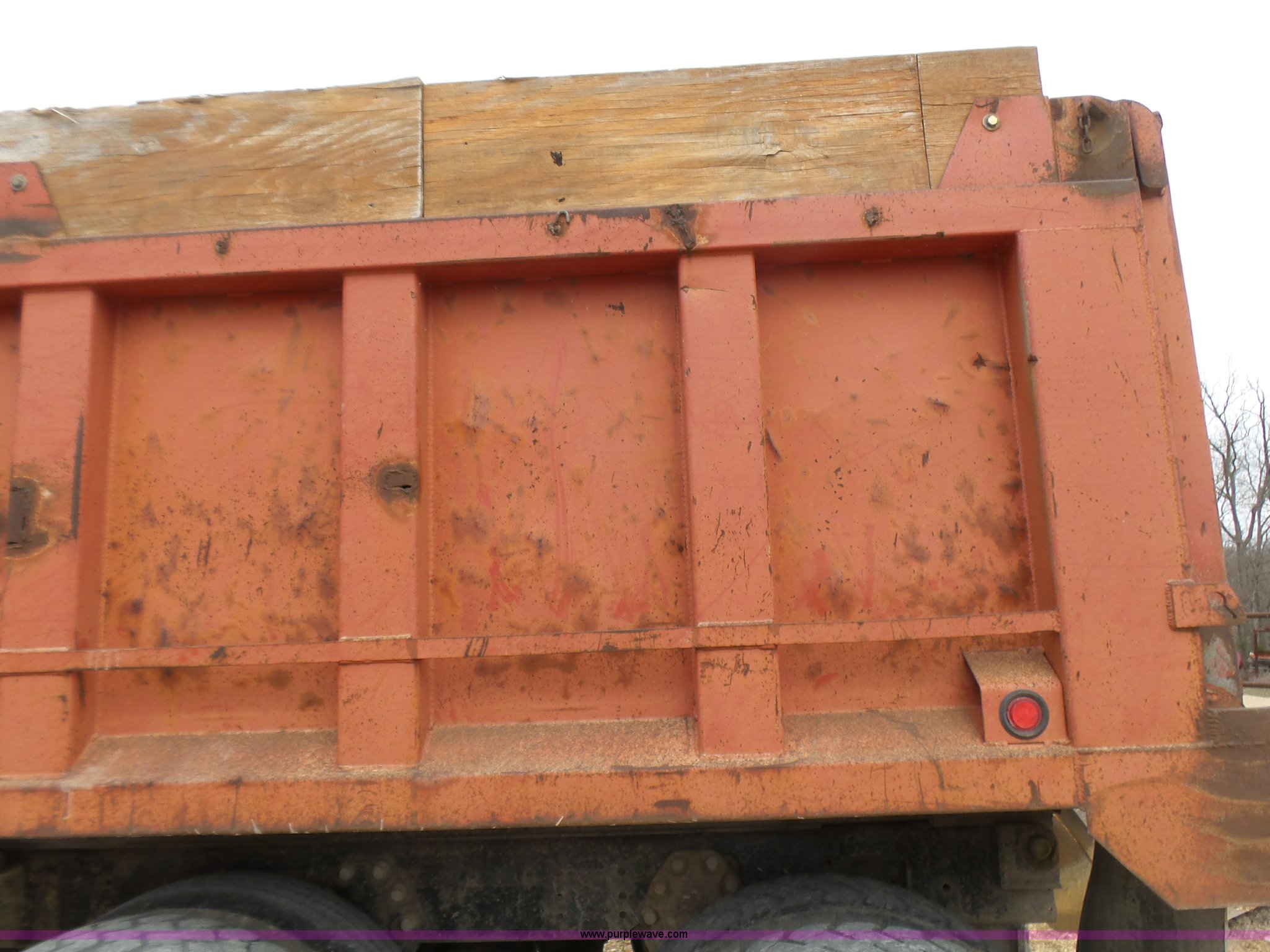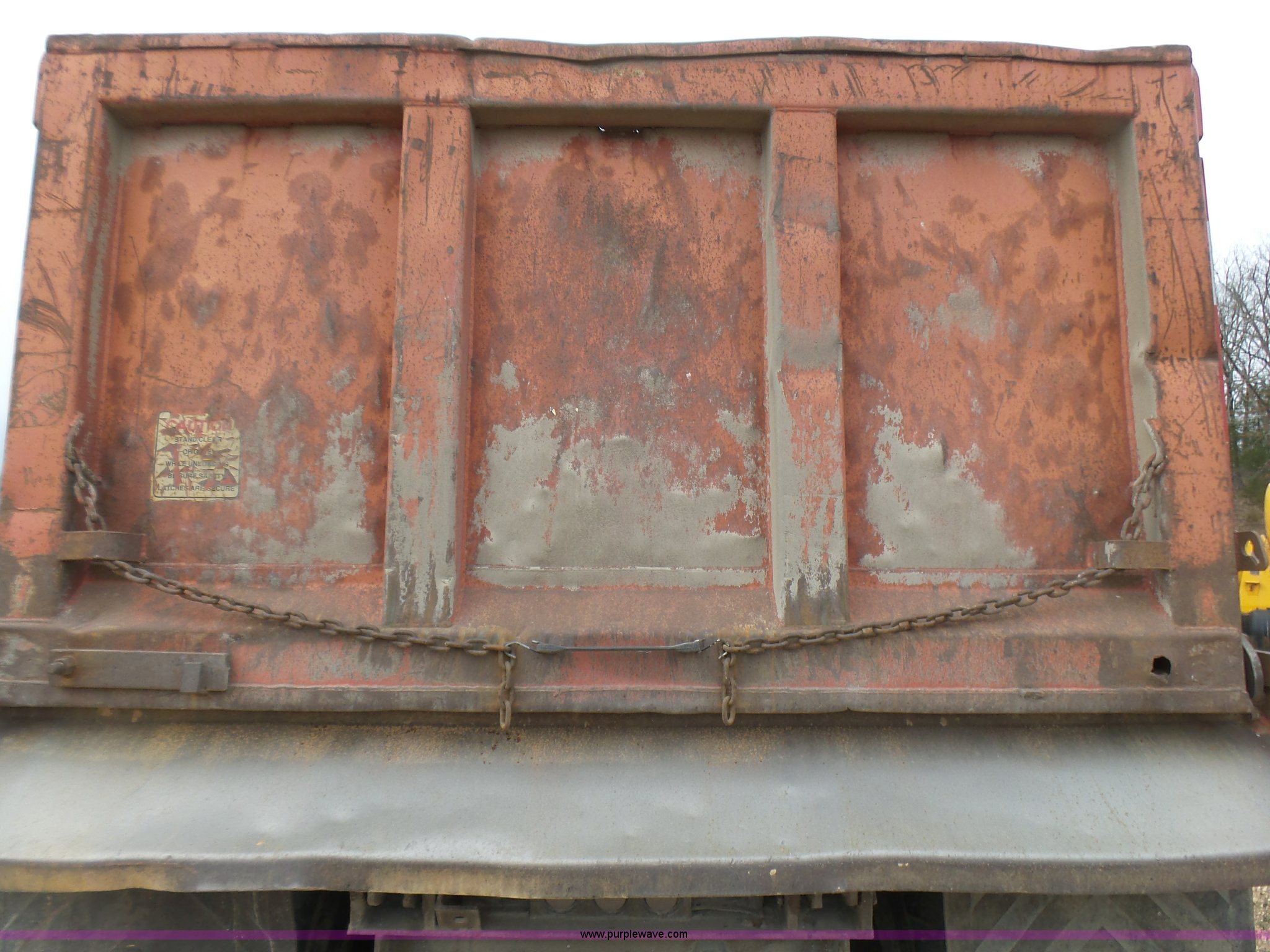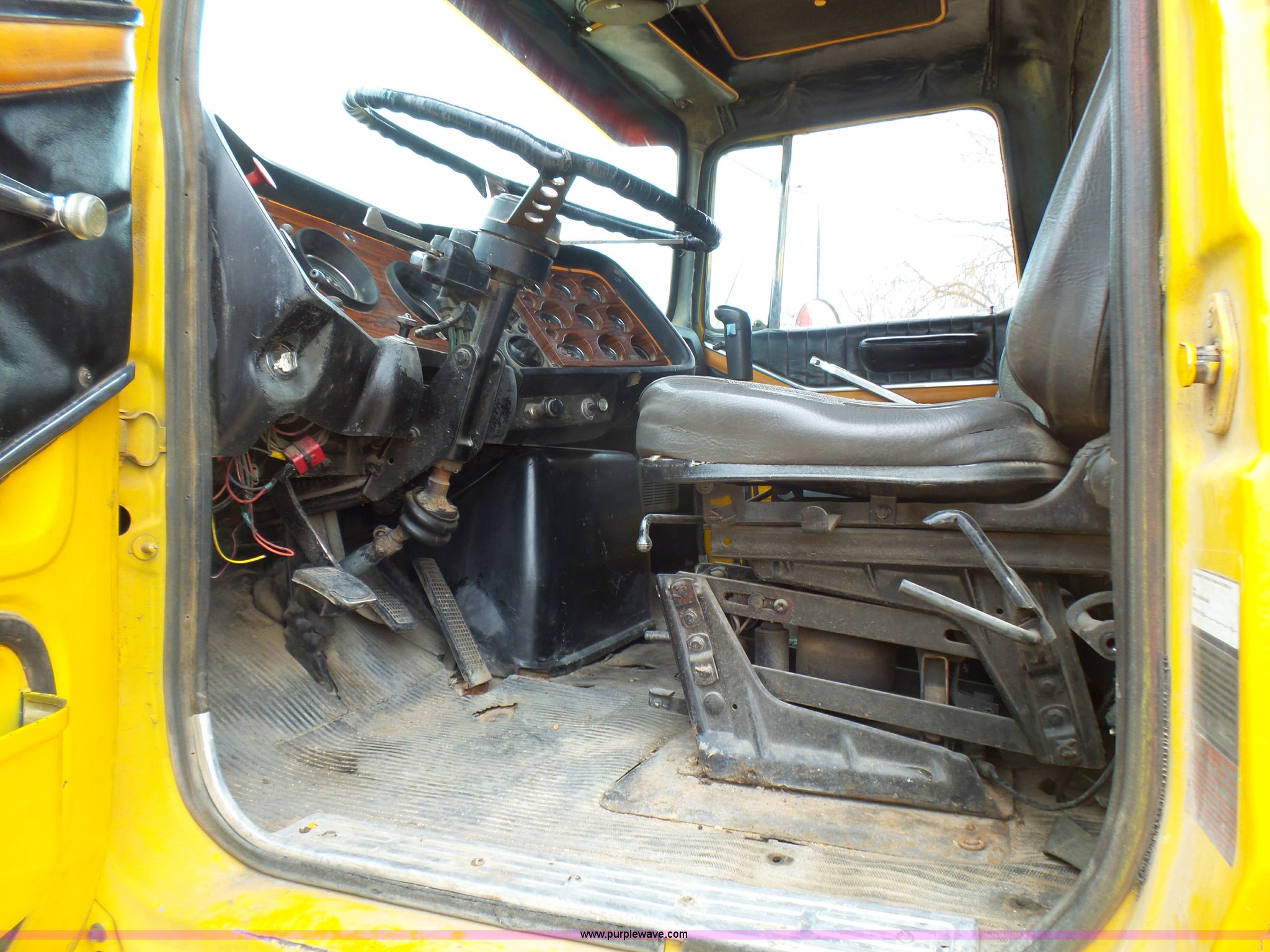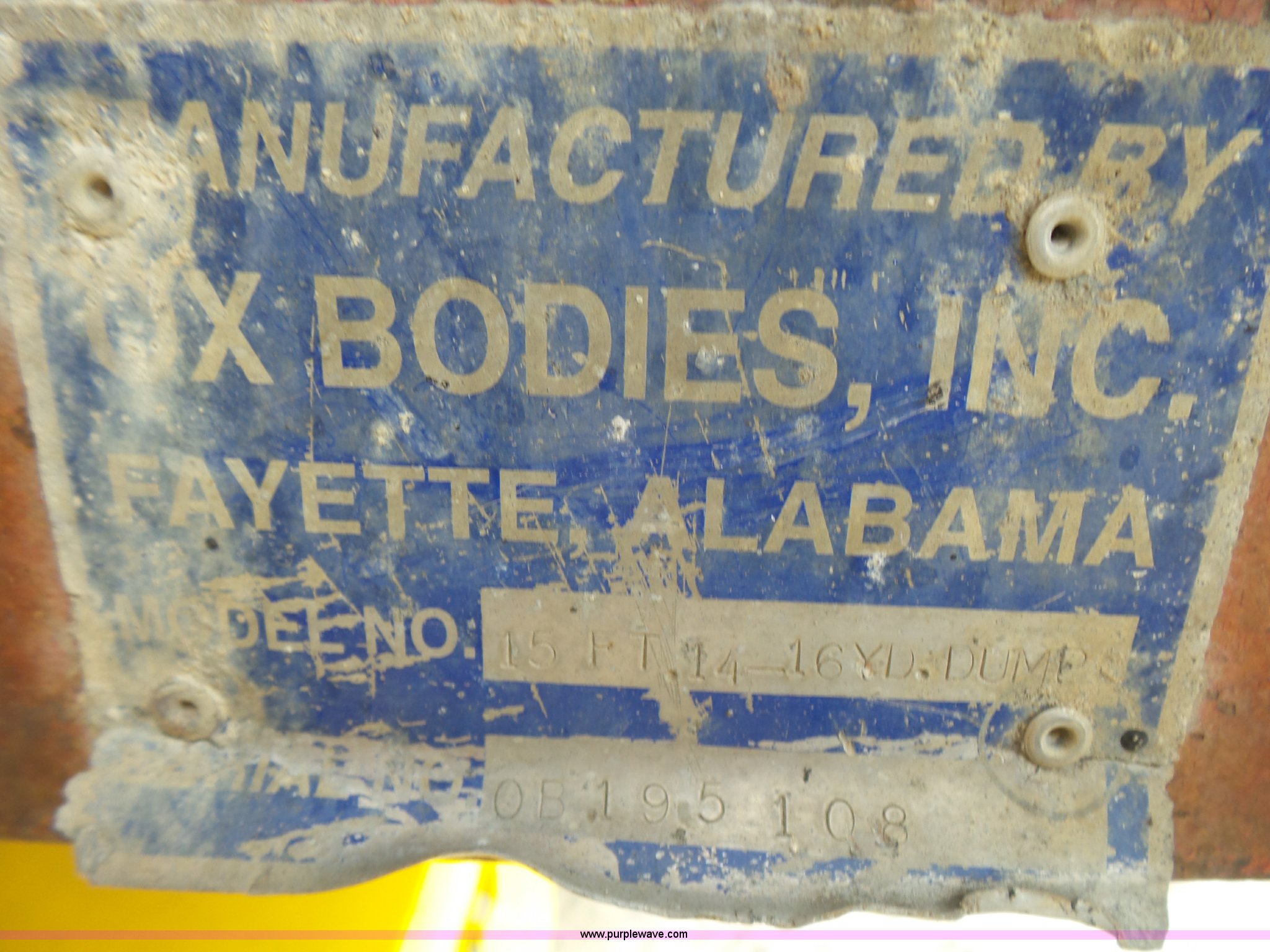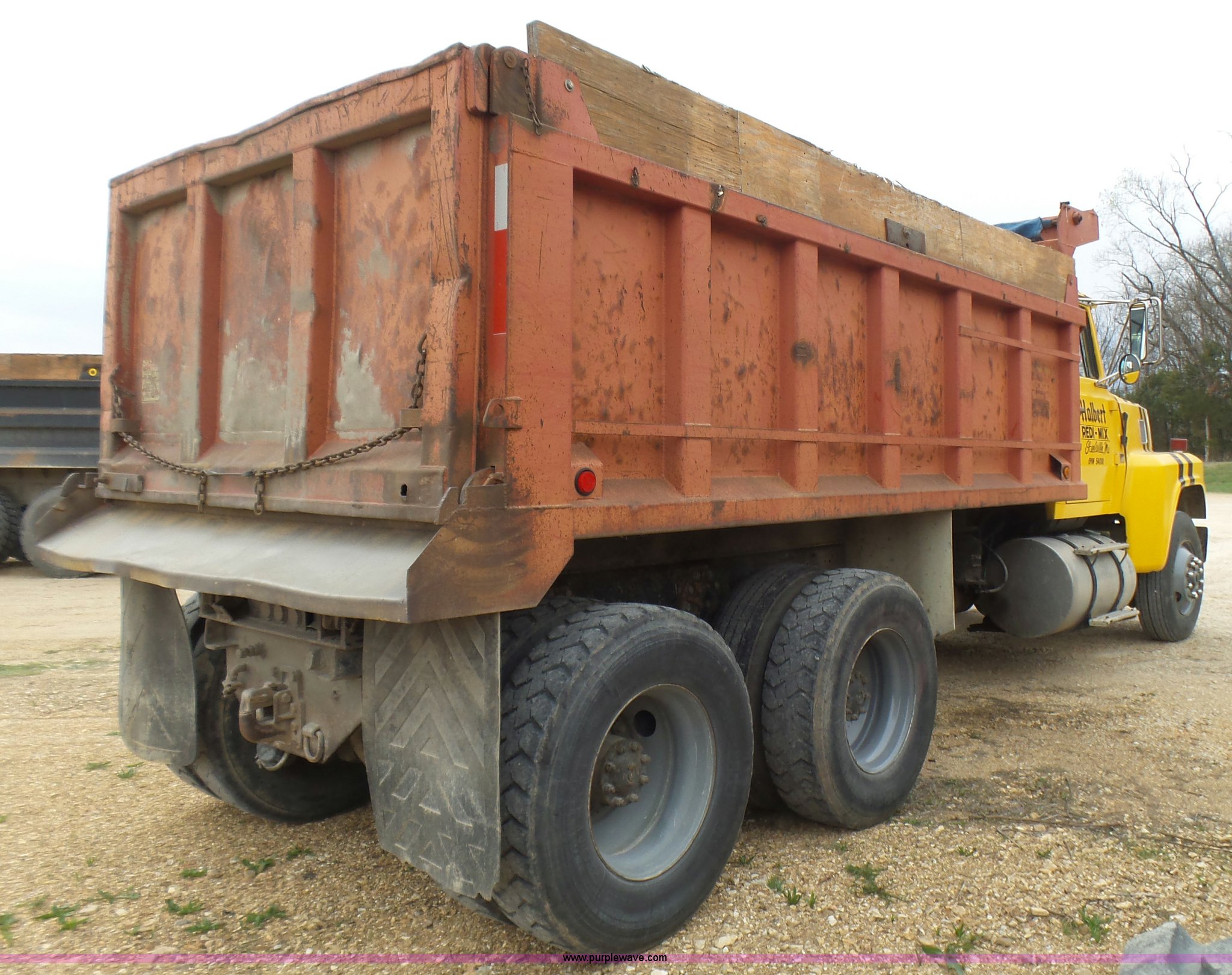 Purple Wave is selling a used Construction Dump Truck in Missouri. This item is a 1984 Ford LTL9000 dump truck with the following: 188,320 miles on odometer, Cummins 400 six cylinder turbo diesel engine, Eaton Fuller 7LL seven speed manual transmission, Tandem axle, Inter-axle differential lock, Heat, AM/FM/Cd, Air suspension seat, Chrome bumper, Toolbox, PTO, Ox Bodies steel dump bed, 15'L x 96"W, 45" side height, 12" sideboard height, 14 to 16 yard capacity, Single ram hoist, Air operated end gate, Pintle hitch, Spring suspension, Air brakes, 11R22.5 front tires, 315/80R22.5 rear tires, GVWR 54,000 lbs, Rust, Passenger side fuel tank has a hole in it, No cap