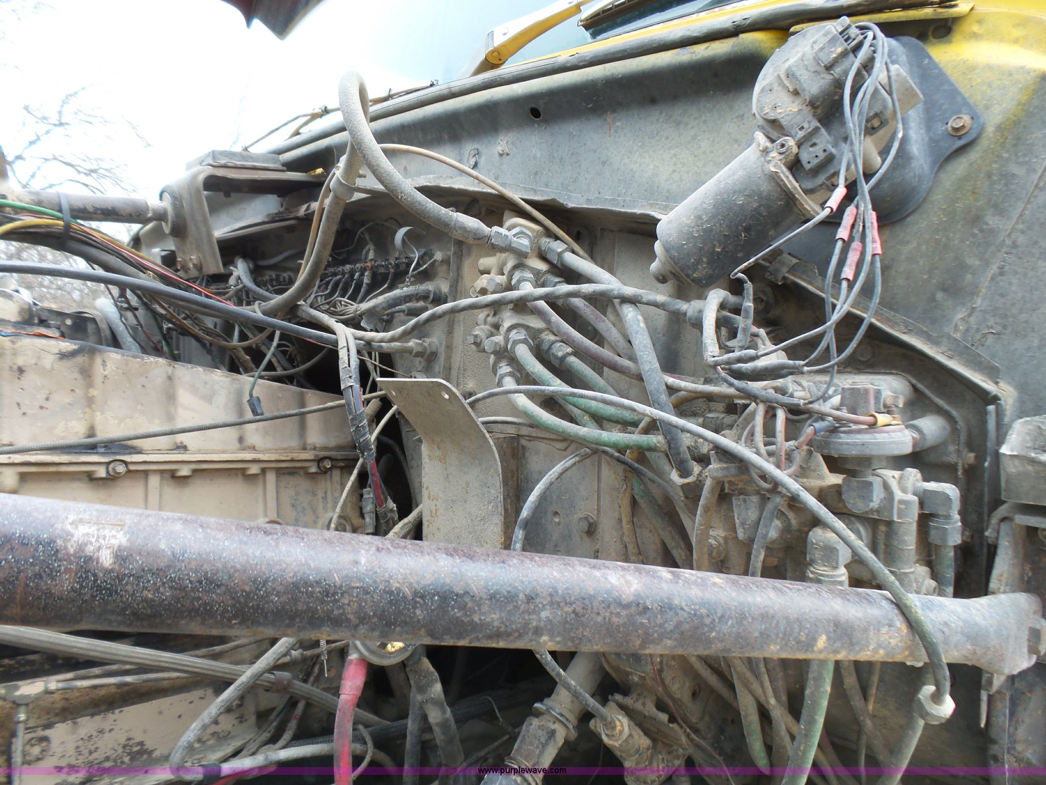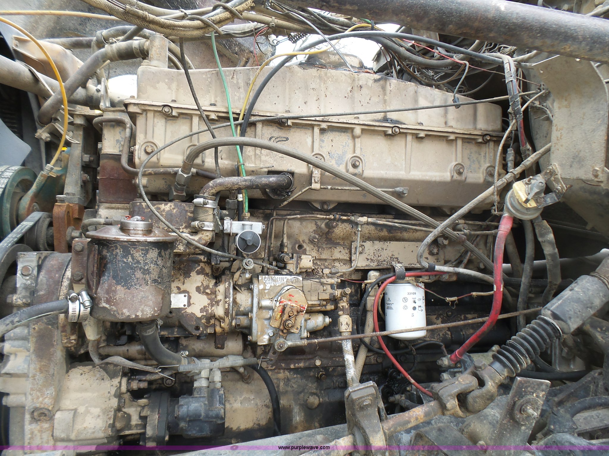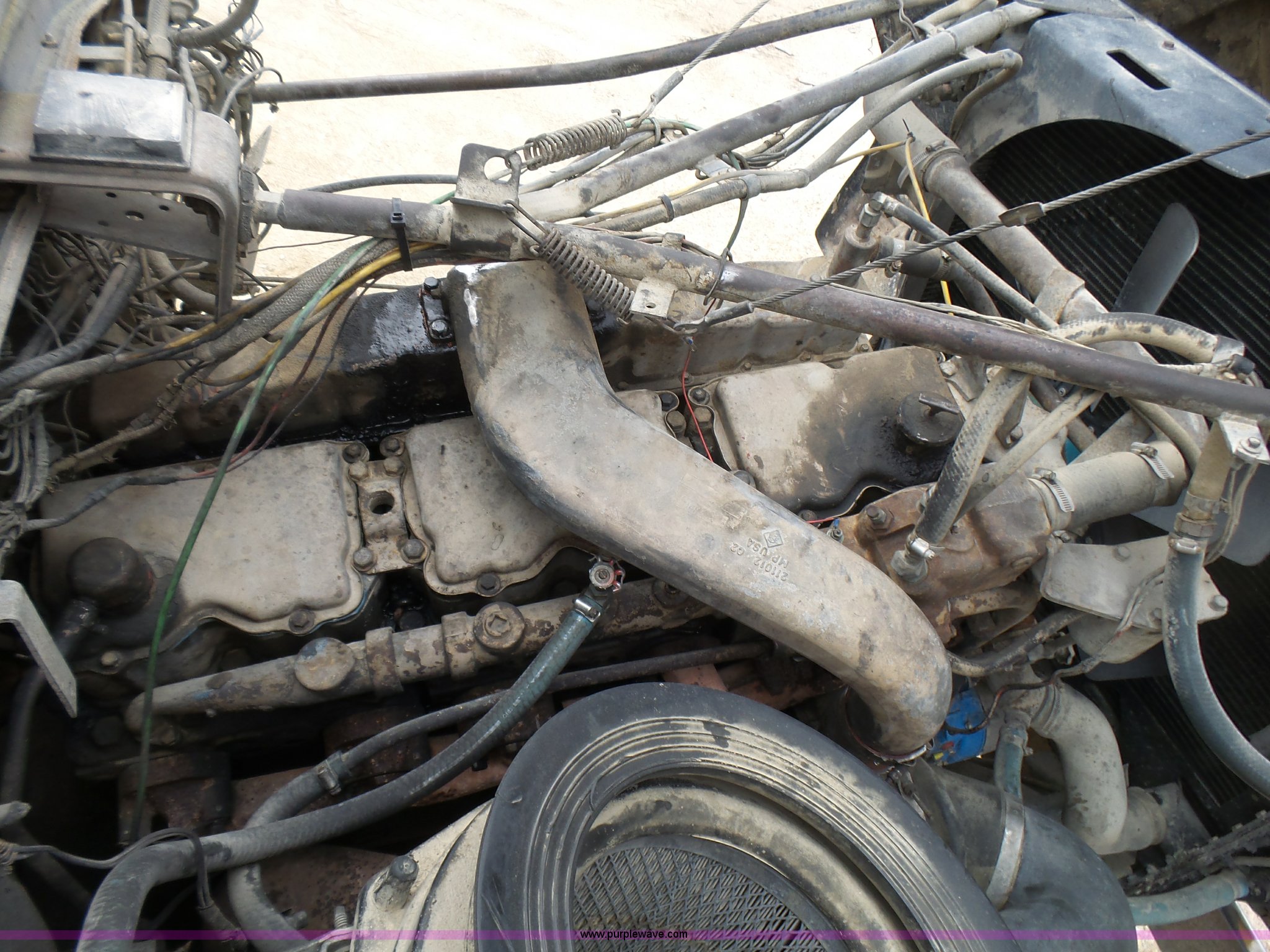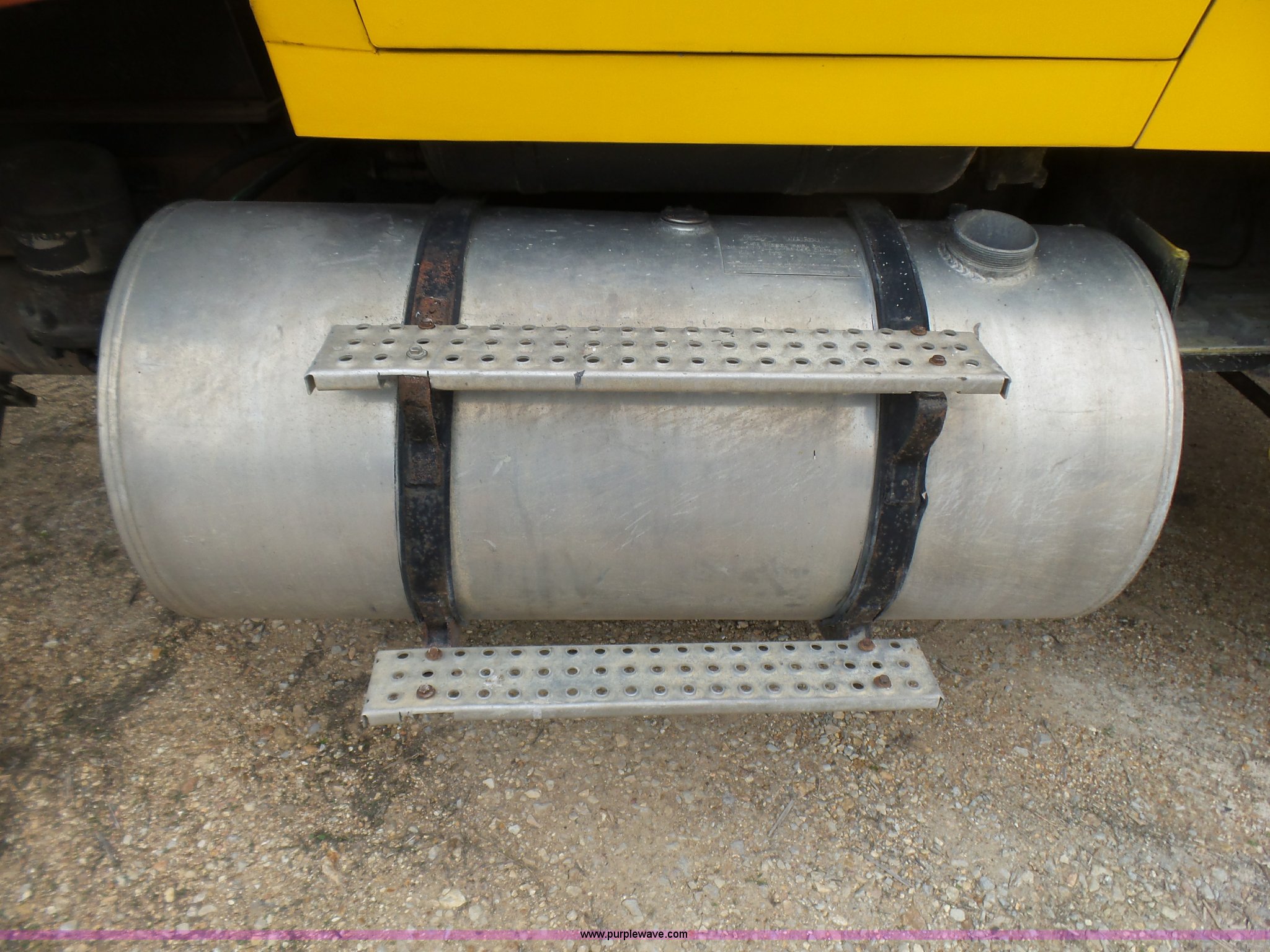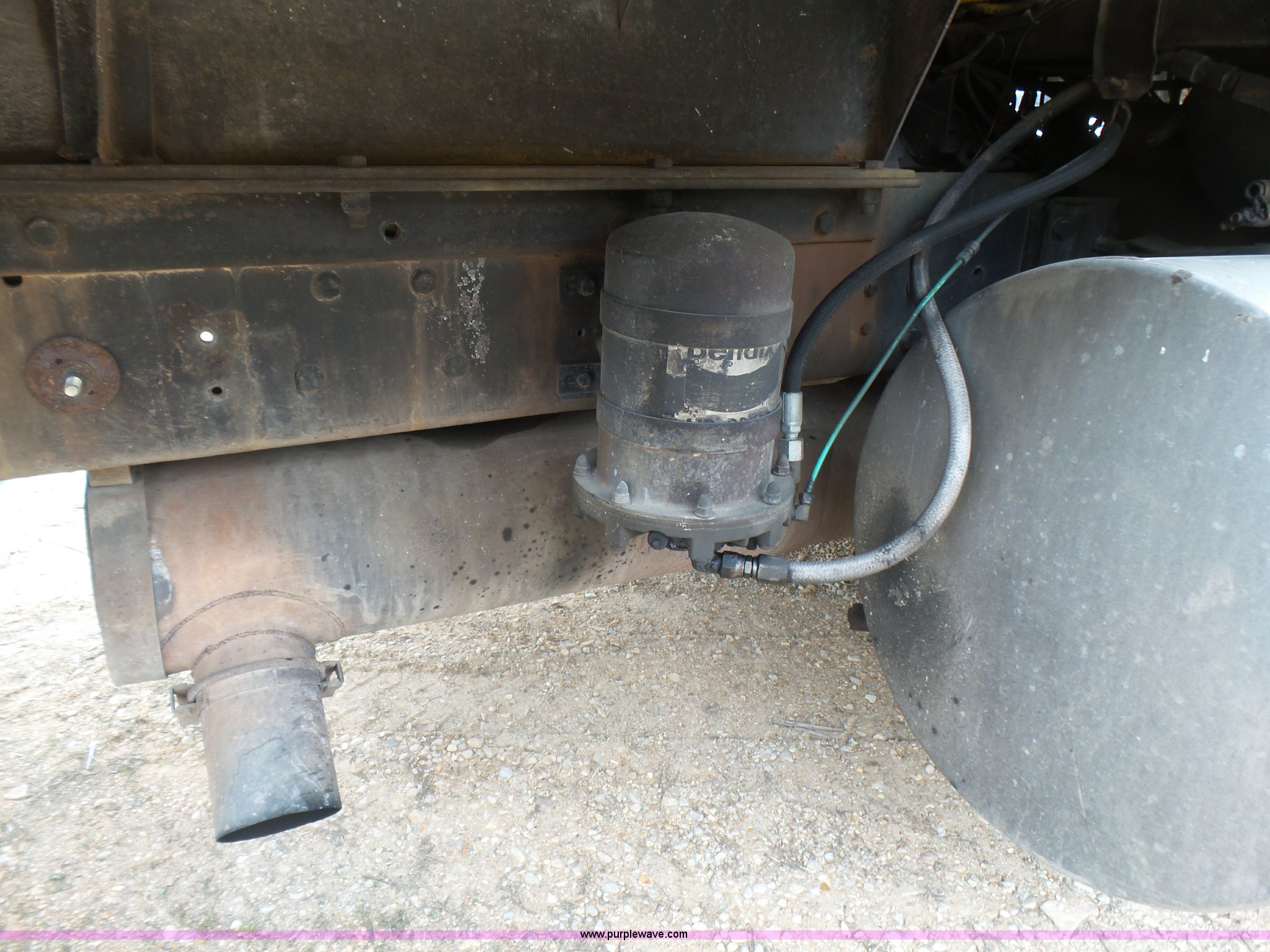 Purple Wave is selling a used Construction Dump Truck in Missouri. This item is a 1984 Ford LTL9000 dump truck with the following: 188,320 miles on odometer, Cummins 400 six cylinder turbo diesel engine, Eaton Fuller 7LL seven speed manual transmission, Tandem axle, Inter-axle differential lock, Heat, AM/FM/Cd, Air suspension seat, Chrome bumper, Toolbox, PTO, Ox Bodies steel dump bed, 15'L x 96"W, 45" side height, 12" sideboard height, 14 to 16 yard capacity, Single ram hoist, Air operated end gate, Pintle hitch, Spring suspension, Air brakes, 11R22.5 front tires, 315/80R22.5 rear tires, GVWR 54,000 lbs, Rust, Passenger side fuel tank has a hole in it, No cap