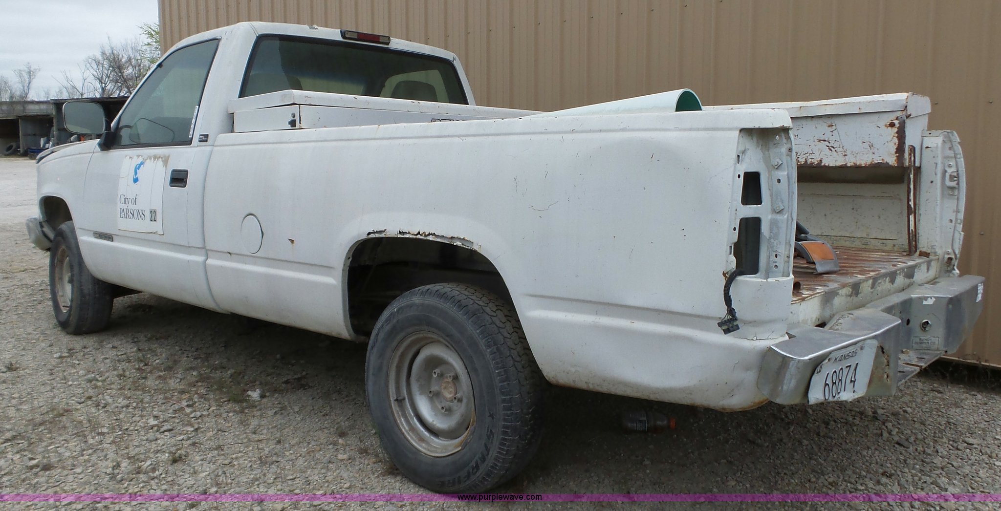 Purple Wave is selling a used 1/2 Ton Pickup or Van in Kansas. This item is a 1994 GMC Sierra 1500 pickup truck with the following: 124,575 miles on odometer, 4.3L V6 OHV 12V gas engine, Manual windows and locks, Cloth interior, LT235/75R16 tires, Non-operational unit, Parts missing