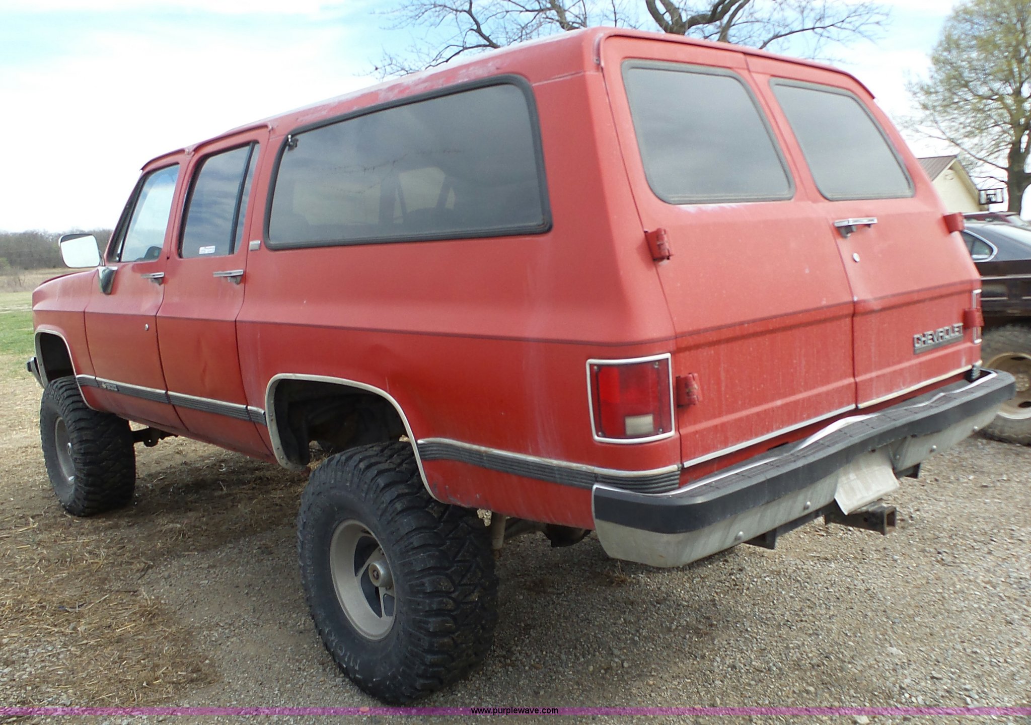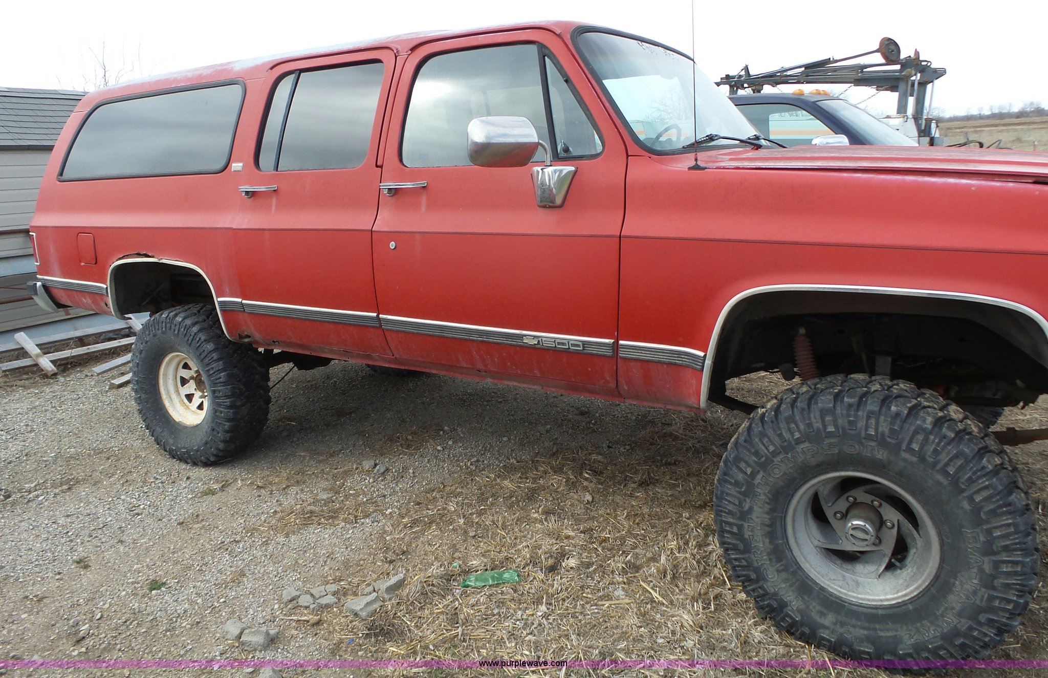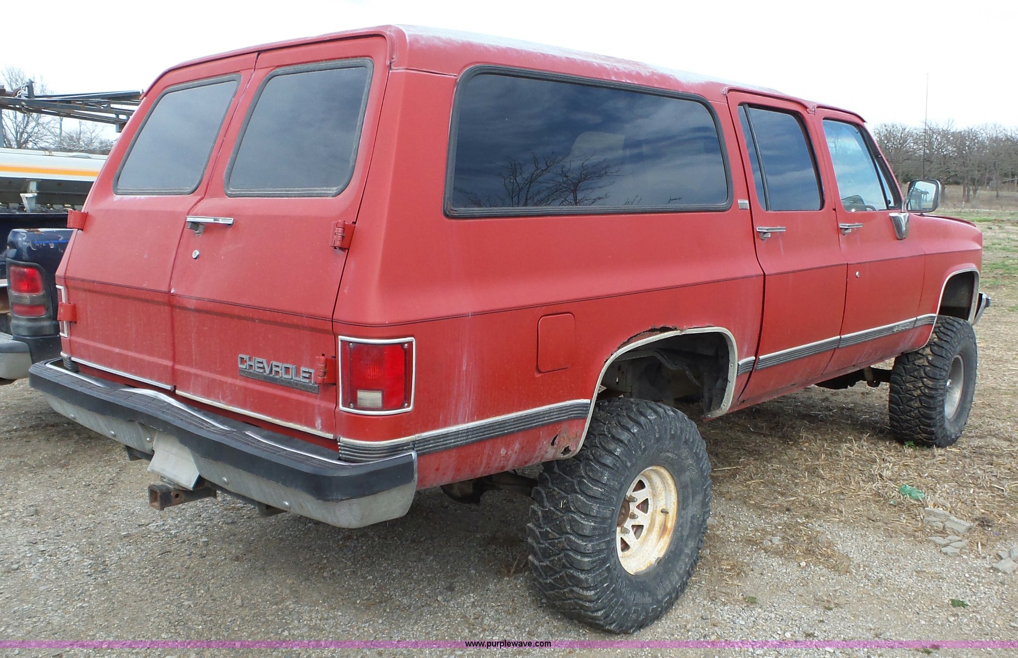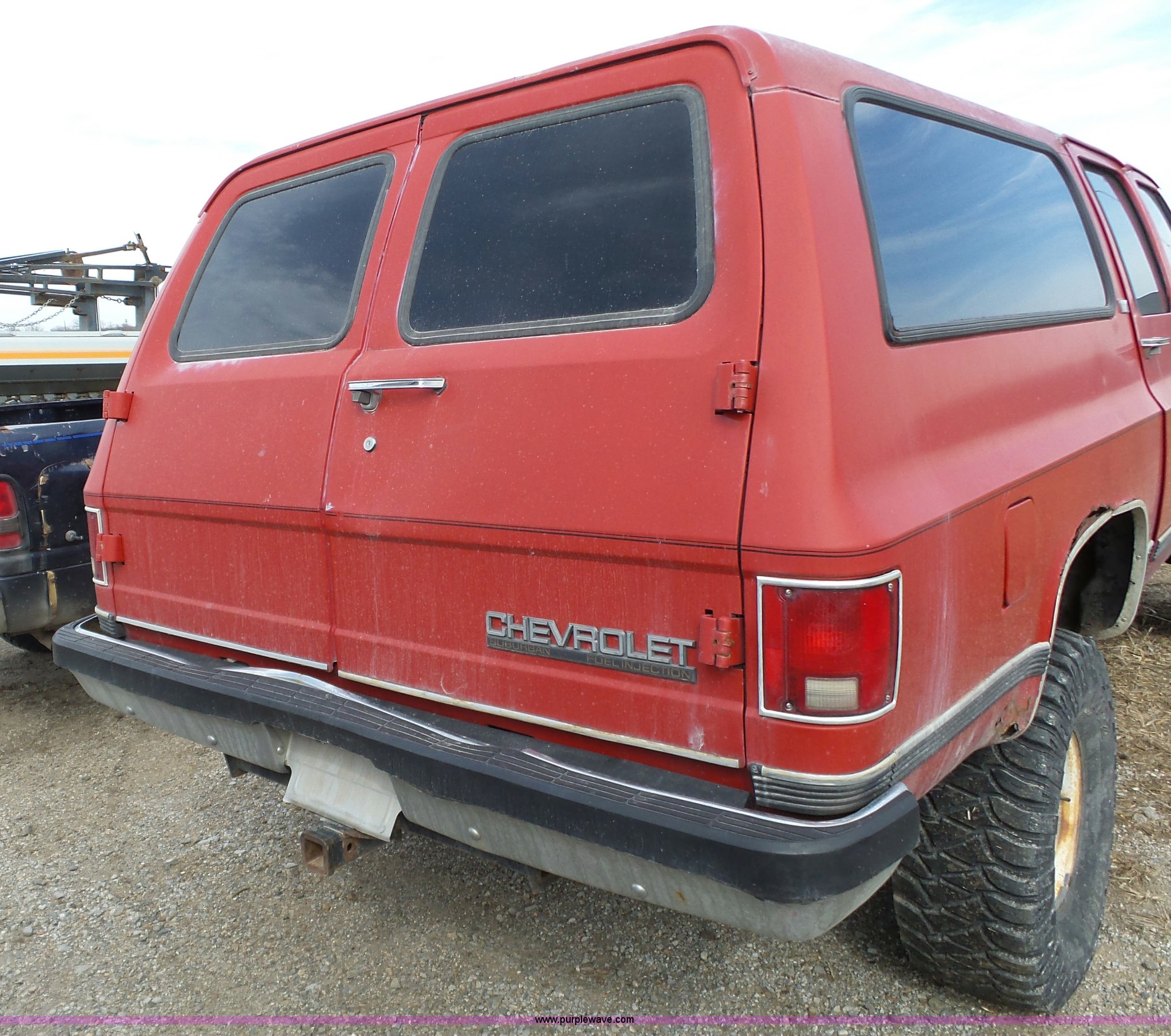 Purple Wave is selling a used Passenger Vehicle in Kansas. This item is a 1990 Chevrolet Suburban V1500 SUV with the following: 179,312 miles on odometer, 5.7L V8 OHV 16V gas engine, Automatic transmission, Four wheel drive, AC and heat, Non-operational AC, Tilt, Power windows and locks, Cloth interior, 35x12.50R15LT tires, Interior/exterior cosmetic damage, Cracked windshield, Overdrive inoperable