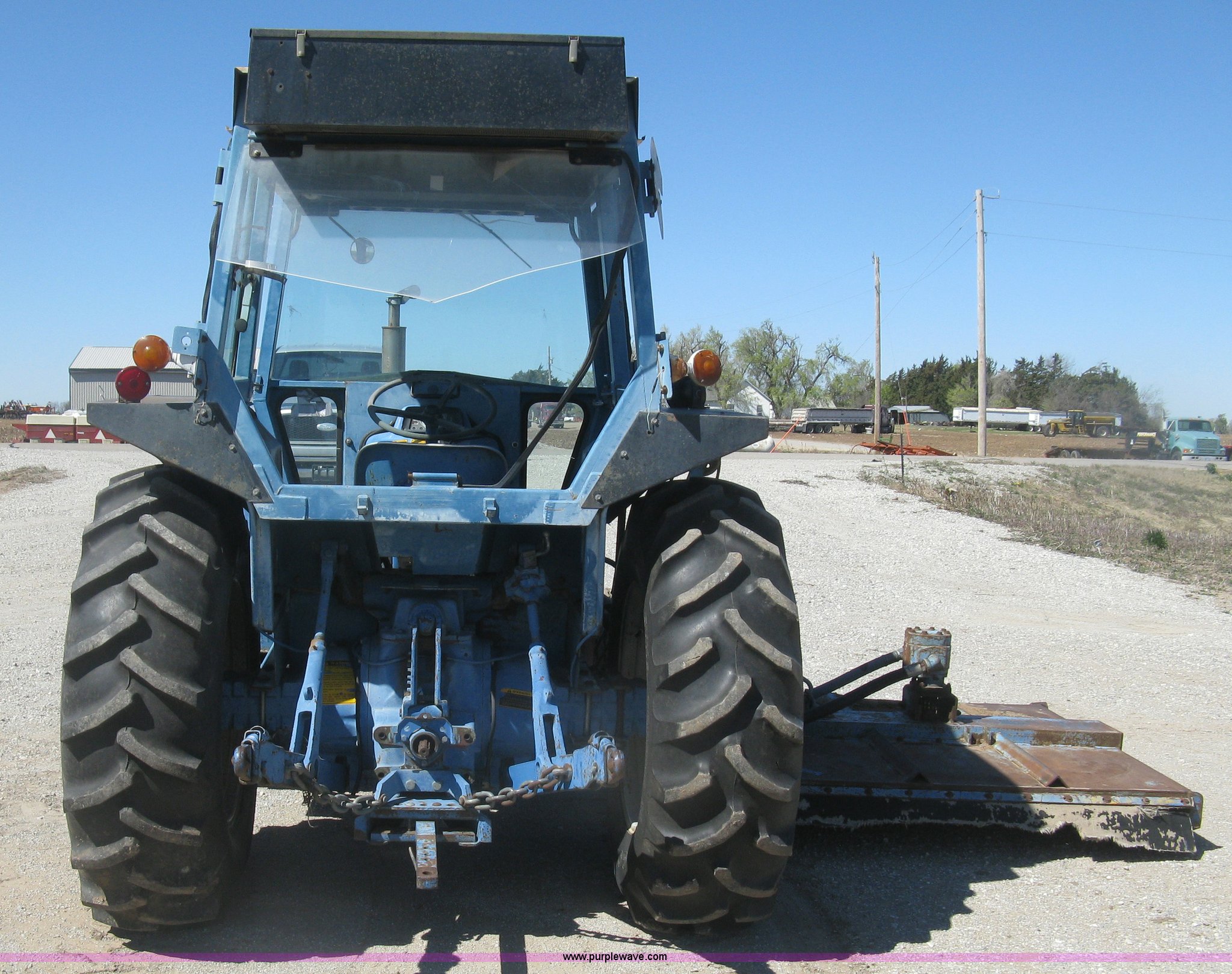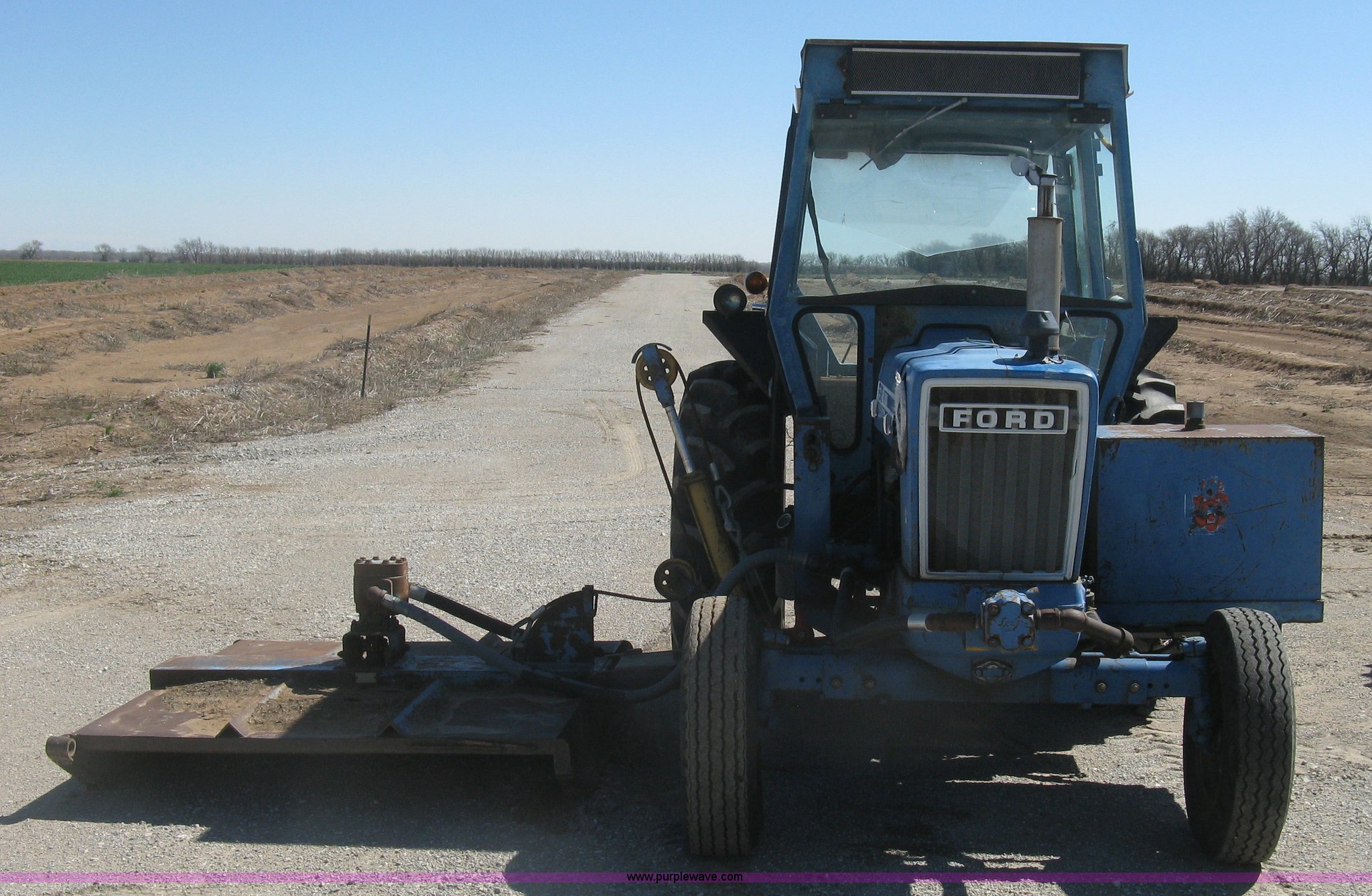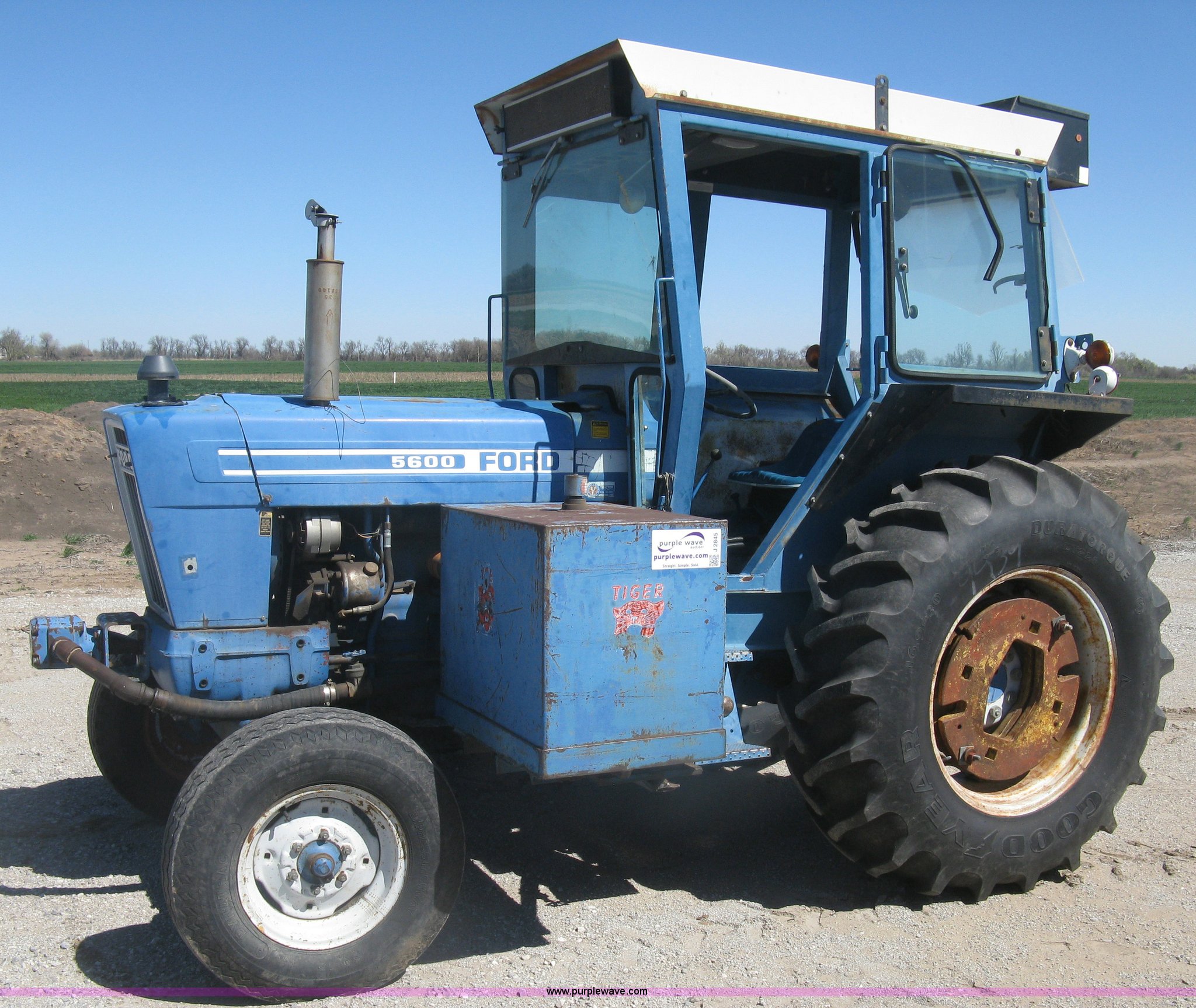 Purple Wave is selling a used Tractor in Kansas. This item is a Ford 5600 tractor with the following: 215 hours on meter, Actual hours unknown, Ford four cylinder diesel engine, Serial D5NN6015H, Manual transmission, 8F-2R gears, AC and heat, Unknown operating condition of AC and heat, Suspension seat, Three point, 540 PTO, Front mounted PTO hydraulic pump, Side mount hydraulic reservoir, Side mount rotary mower, 5'W, Hydraulic driven, Hydraulic/cable lift, Weld repair to deck frame, (2) left rear wheel weights, 7.50-16 front tires, 16.9-30 rear tires, Doors missing, Rear plexi-glass broken, Side glass missing, Serial L141556