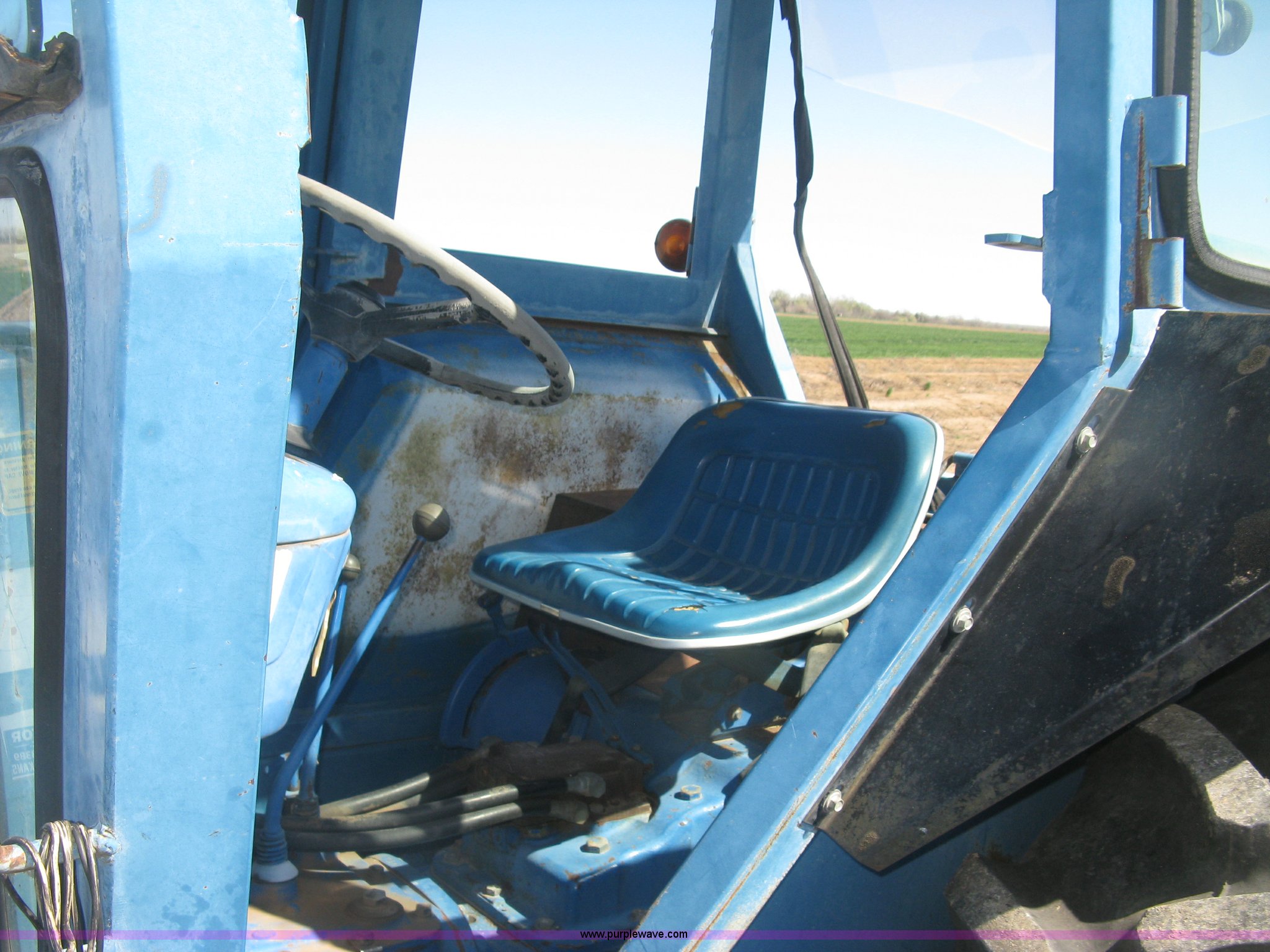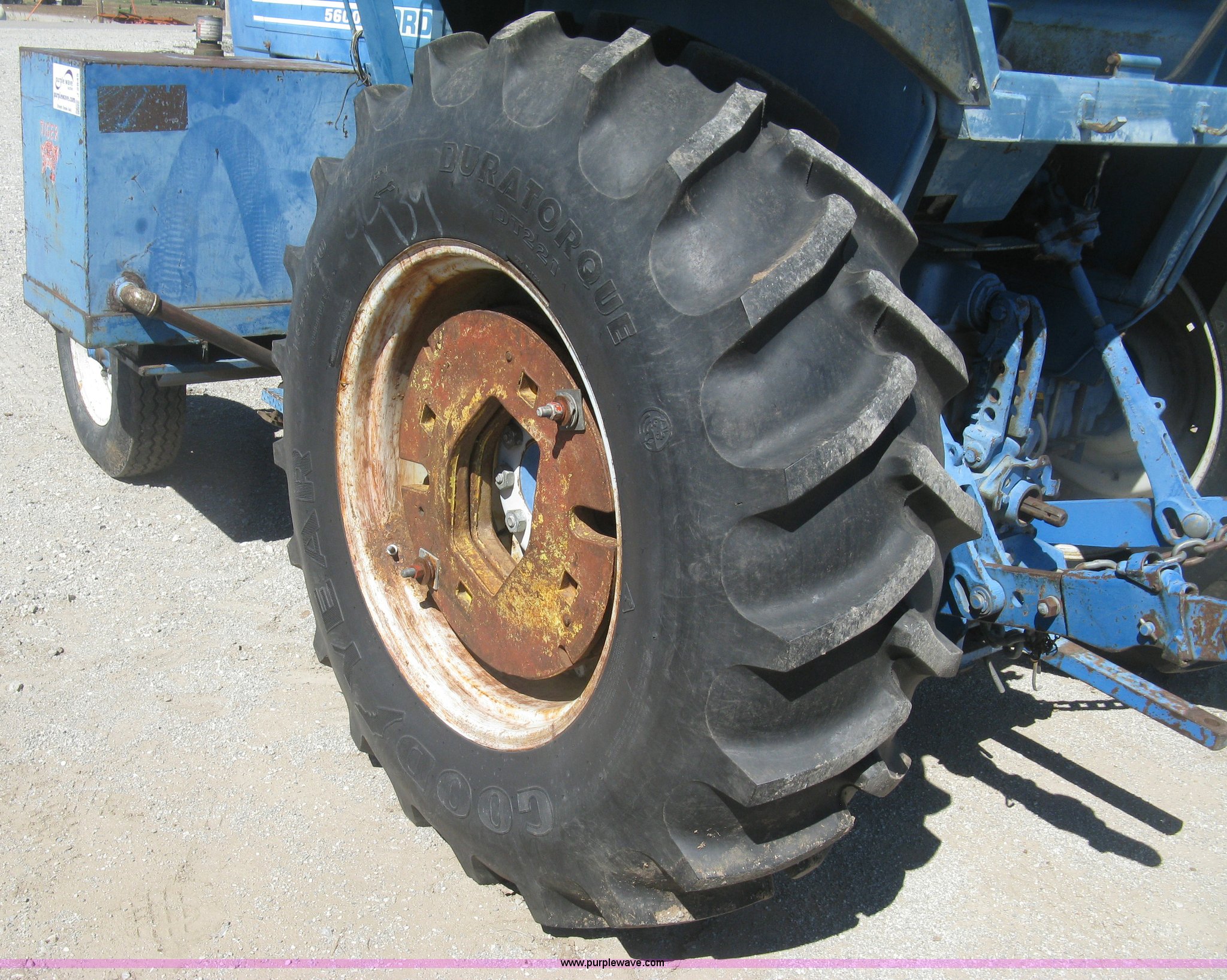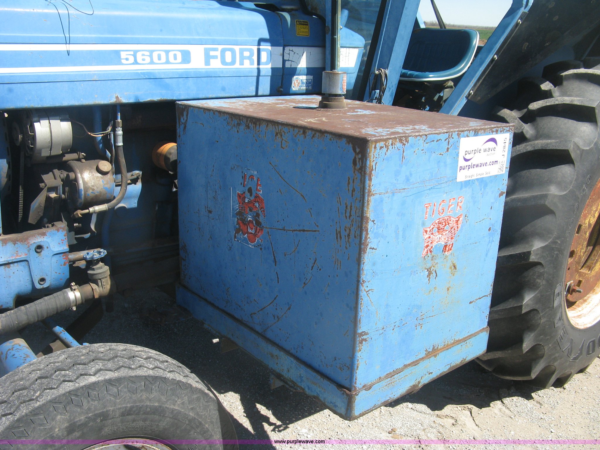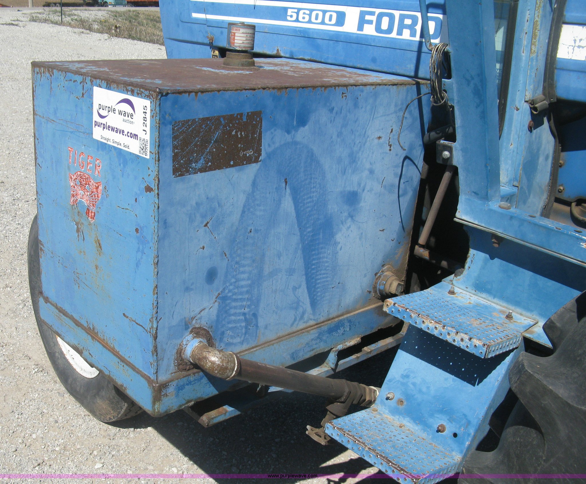 Purple Wave is selling a used Tractor in Kansas. This item is a Ford 5600 tractor with the following: 215 hours on meter, Actual hours unknown, Ford four cylinder diesel engine, Serial D5NN6015H, Manual transmission, 8F-2R gears, AC and heat, Unknown operating condition of AC and heat, Suspension seat, Three point, 540 PTO, Front mounted PTO hydraulic pump, Side mount hydraulic reservoir, Side mount rotary mower, 5'W, Hydraulic driven, Hydraulic/cable lift, Weld repair to deck frame, (2) left rear wheel weights, 7.50-16 front tires, 16.9-30 rear tires, Doors missing, Rear plexi-glass broken, Side glass missing, Serial L141556