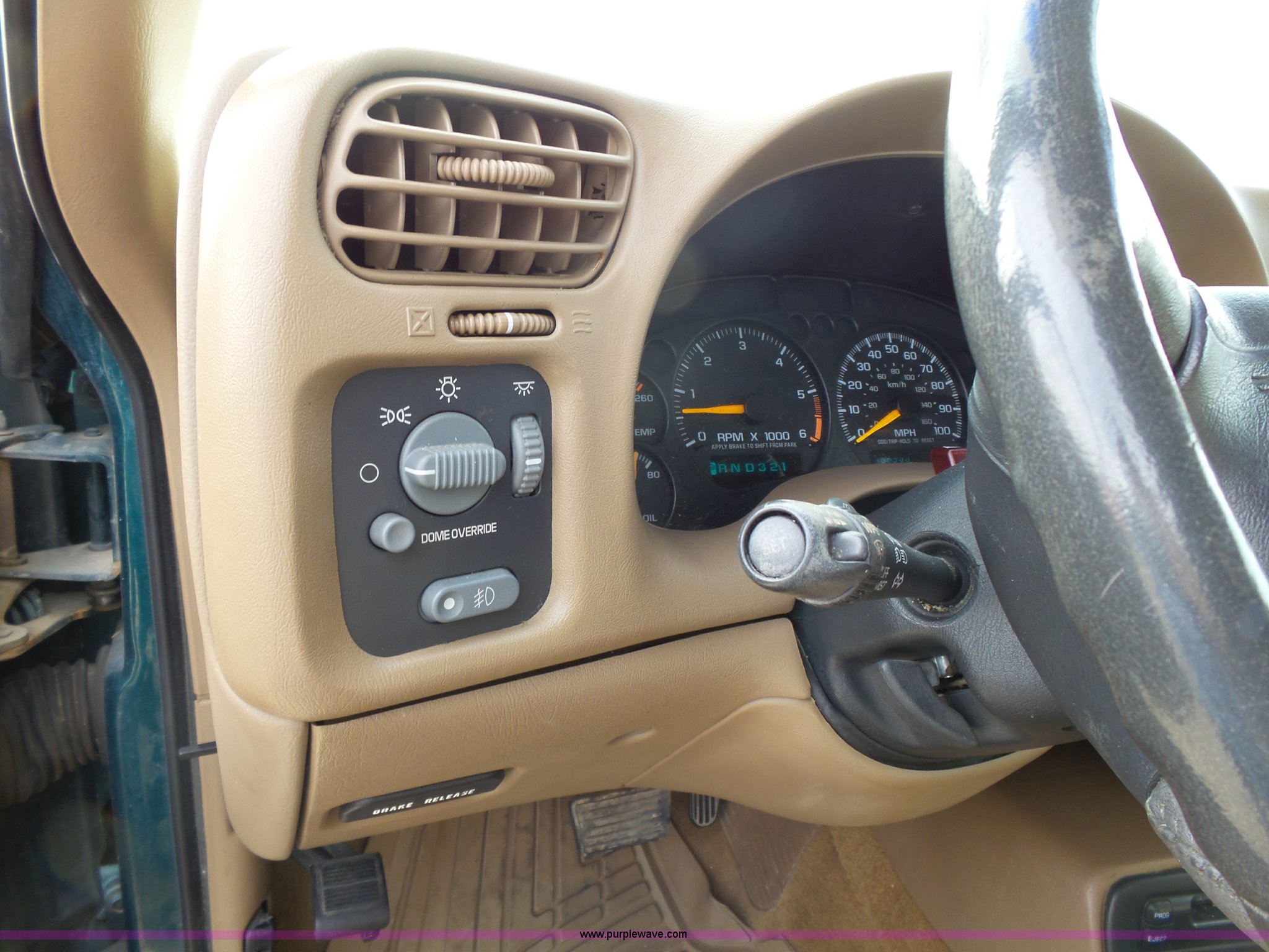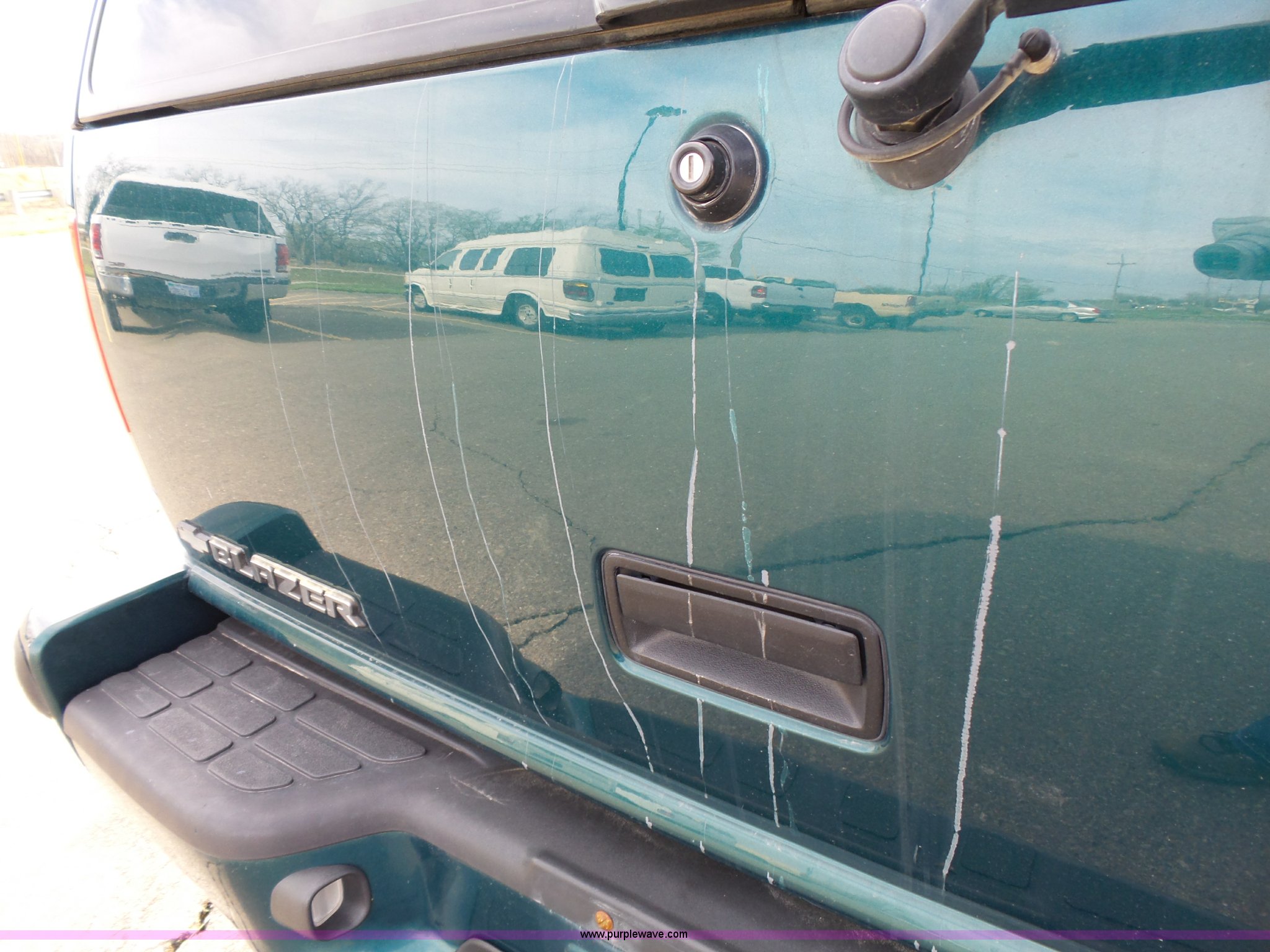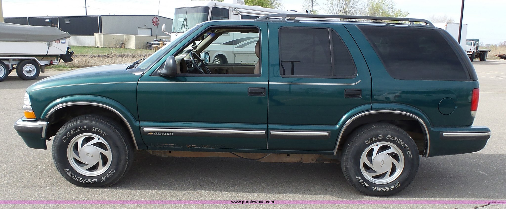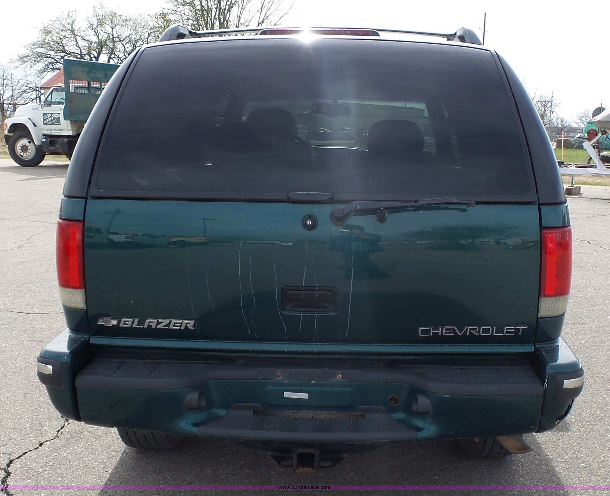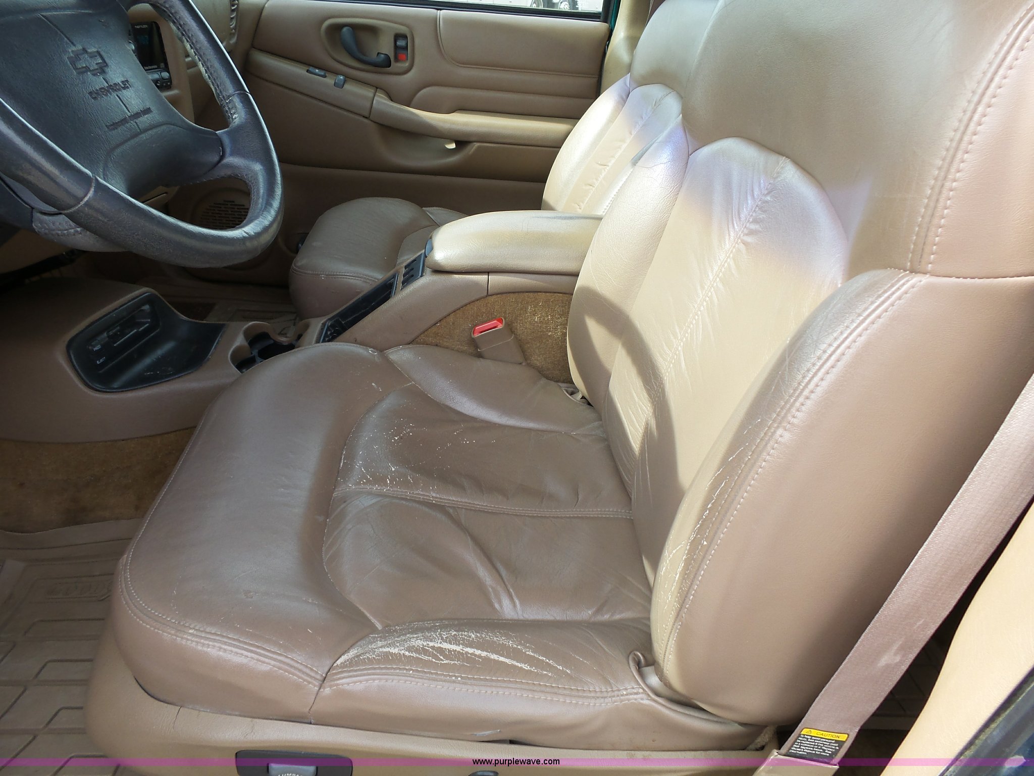 Purple Wave is selling a used Passenger Vehicle in Kansas. This item is a 1998 Chevrolet Blazer LT SUV with the following: 198,243 miles on odometer, 4.3L V6 OHV 12V gas engine, Automatic transmission, Four wheel drive, AC and heat, Tilt, Cruise, AM/FM/CD/cassette, Power windows, locks, mirrors, and seat, Vinyl interior, Heated mirrors, Luggage rack, Front tow hooks, 235/75R15 tires, Scratches, Passenger side rear bumper damage