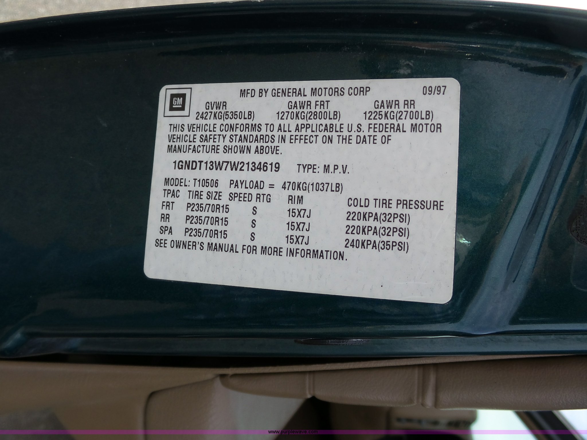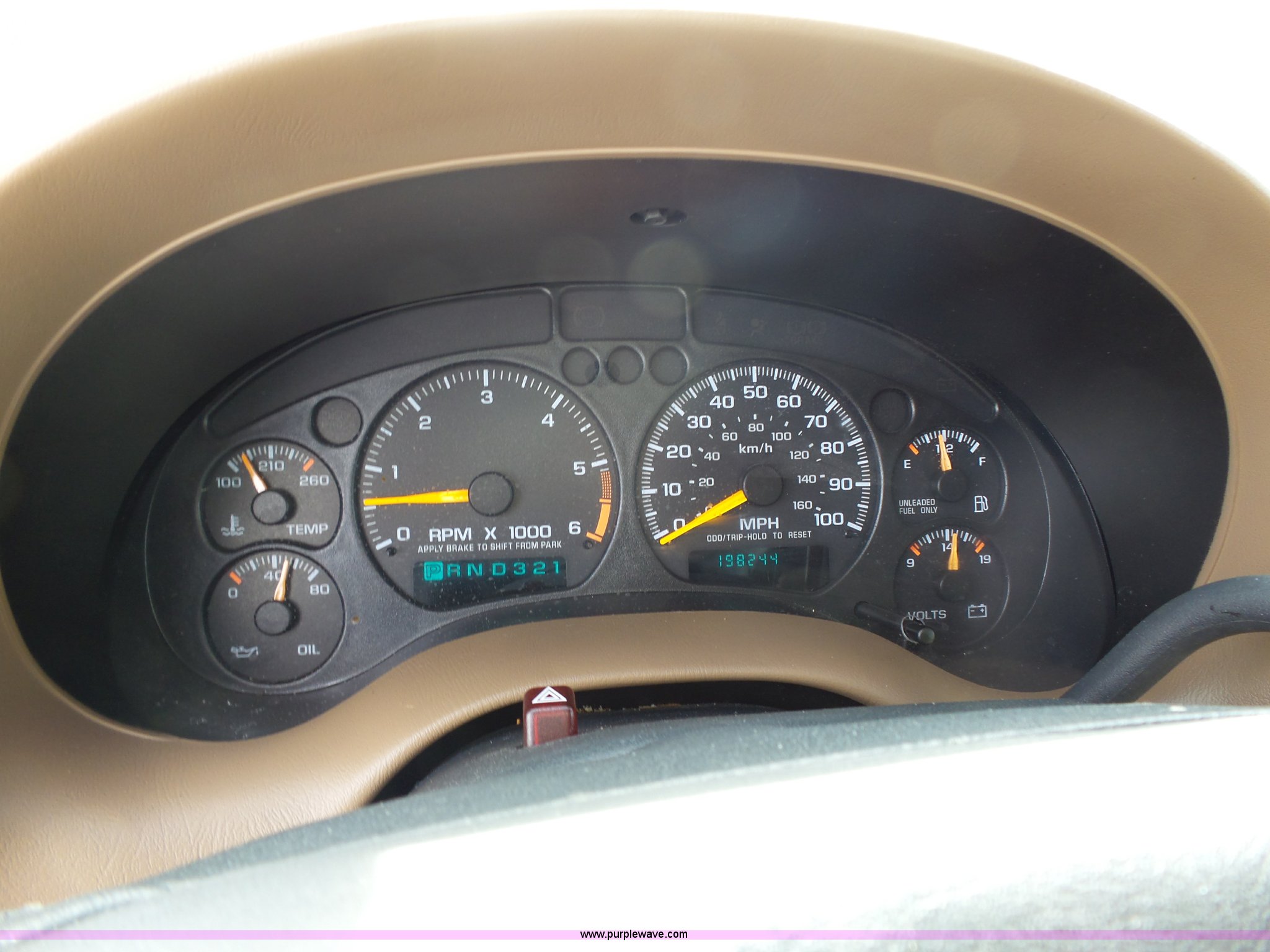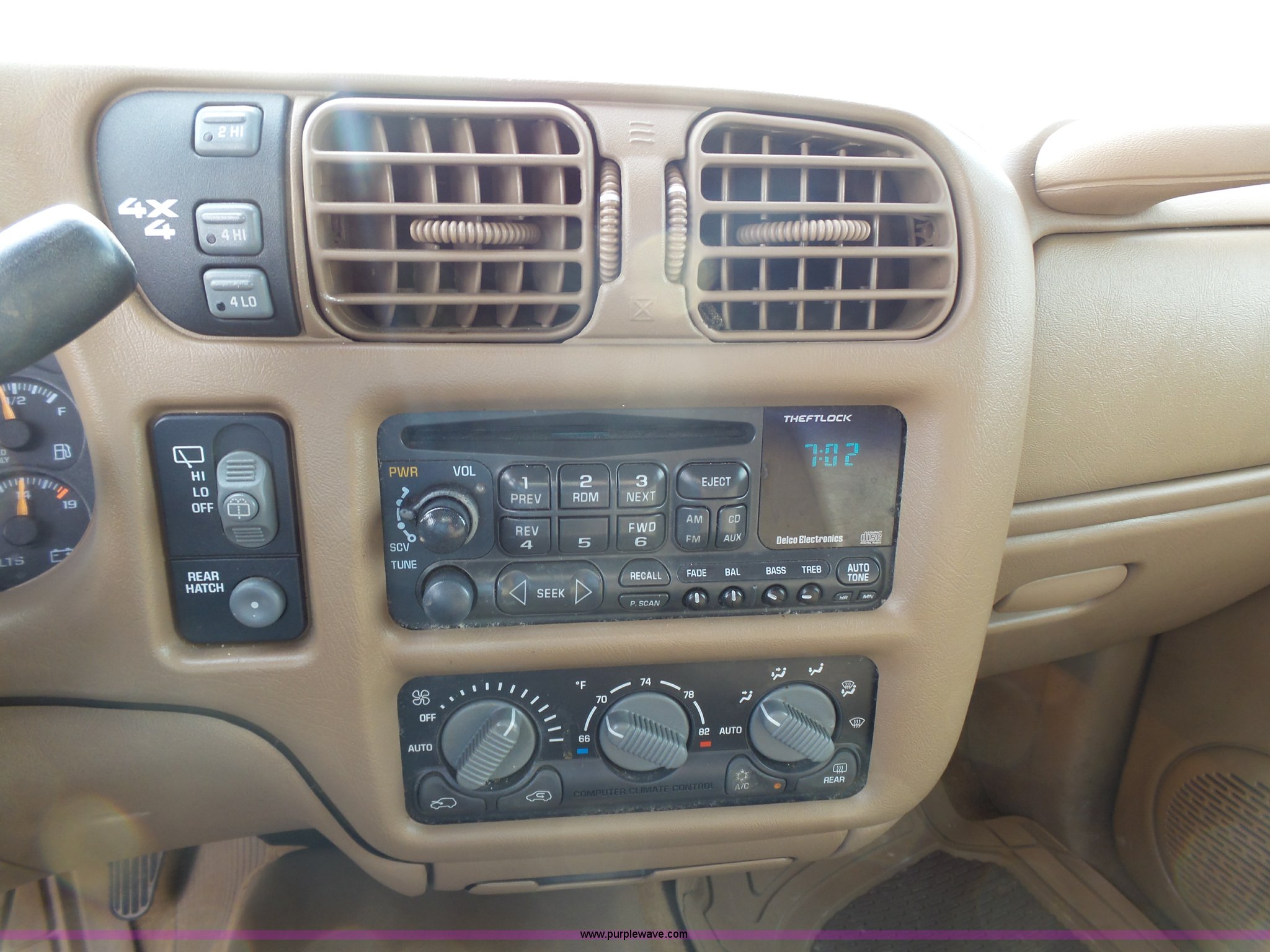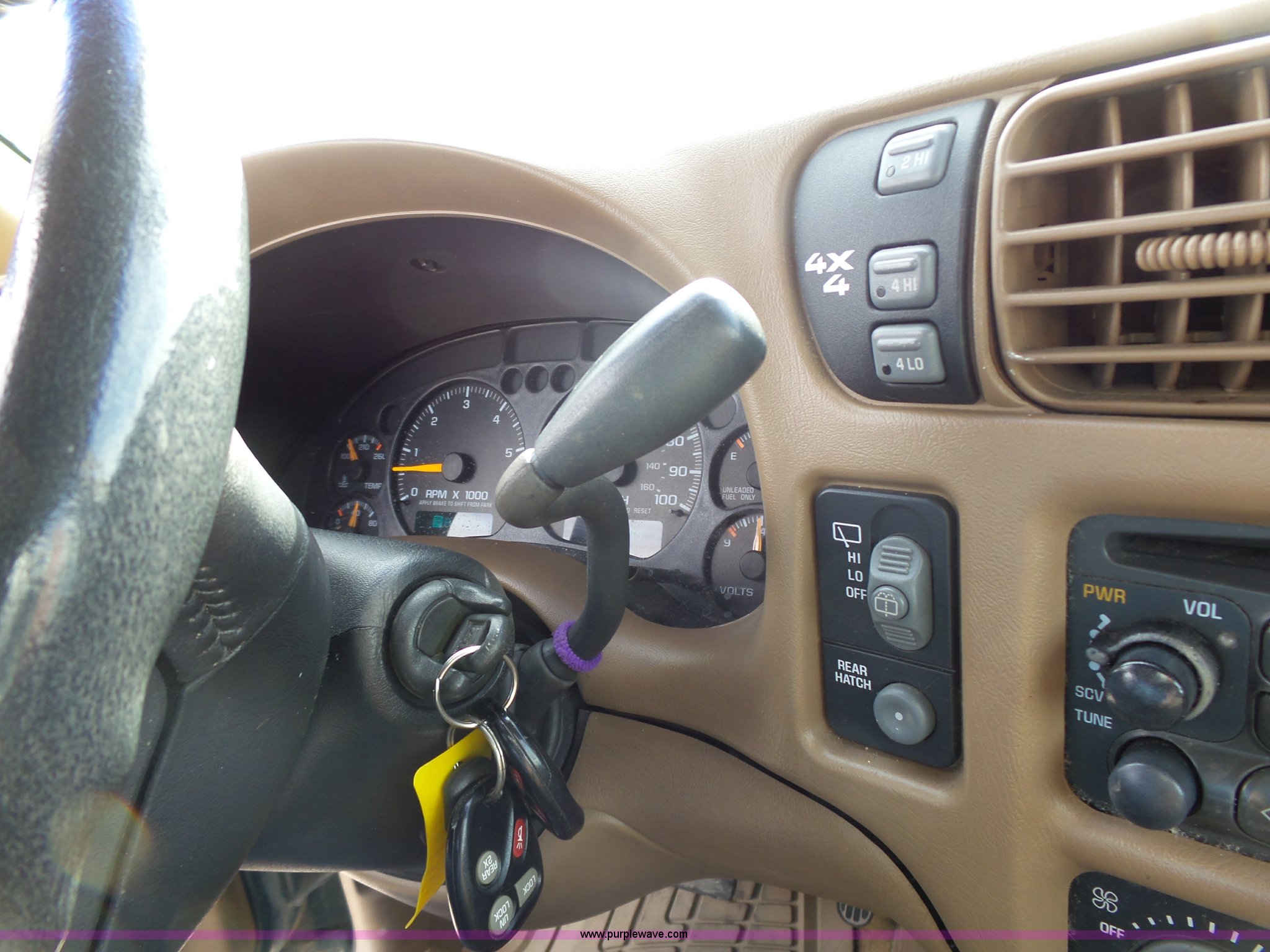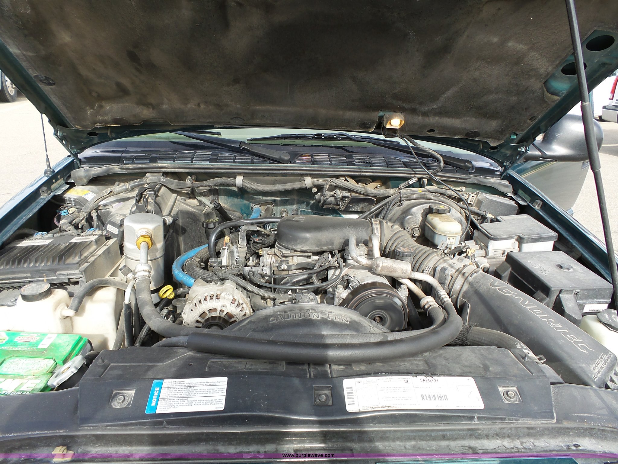 Purple Wave is selling a used Passenger Vehicle in Kansas. This item is a 1998 Chevrolet Blazer LT SUV with the following: 198,243 miles on odometer, 4.3L V6 OHV 12V gas engine, Automatic transmission, Four wheel drive, AC and heat, Tilt, Cruise, AM/FM/CD/cassette, Power windows, locks, mirrors, and seat, Vinyl interior, Heated mirrors, Luggage rack, Front tow hooks, 235/75R15 tires, Scratches, Passenger side rear bumper damage