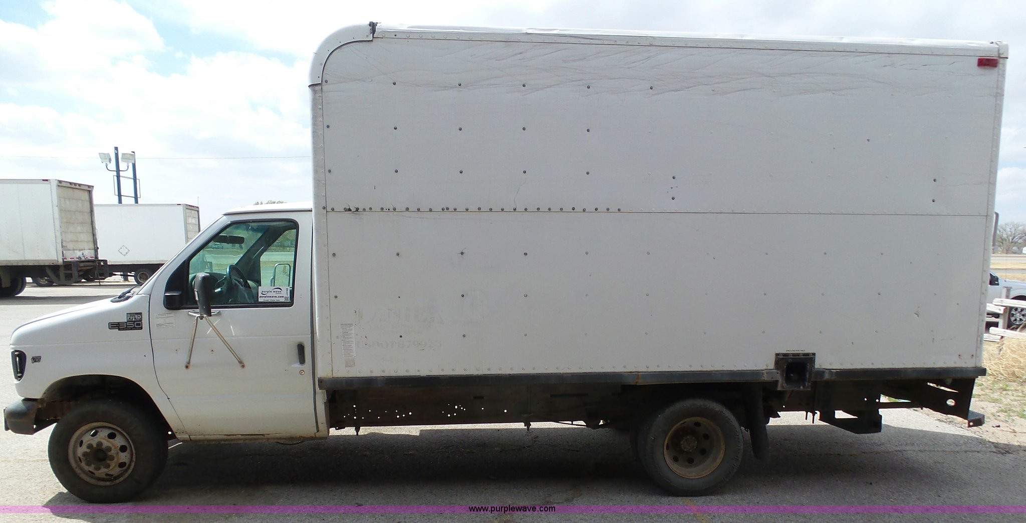 Purple Wave is selling a used Box Truck in Kansas. This item is a 2001 Ford F350 Super Duty box truck with the following: 331,137 miles on odometer, 6.8L V10 SOHC 20V gas engine, Automatic transmission, AC and heat, AM/FM, Suspension seat, 14'L x 8'W box, Roll up door, Sliding ramp, Single fuel tank, 158" wheelbase, Spring suspension, Hydraulic brakes, LT225/75R16 tires, GVWR 8,350 lbs, Non-operational vehicle, Interior/exterior cosmetic damage, Unit# 177