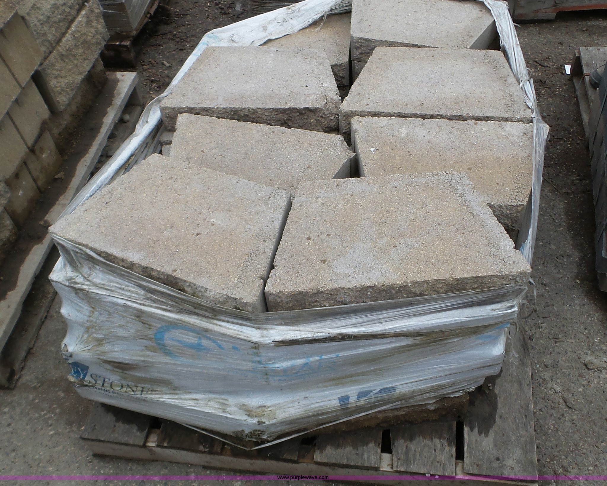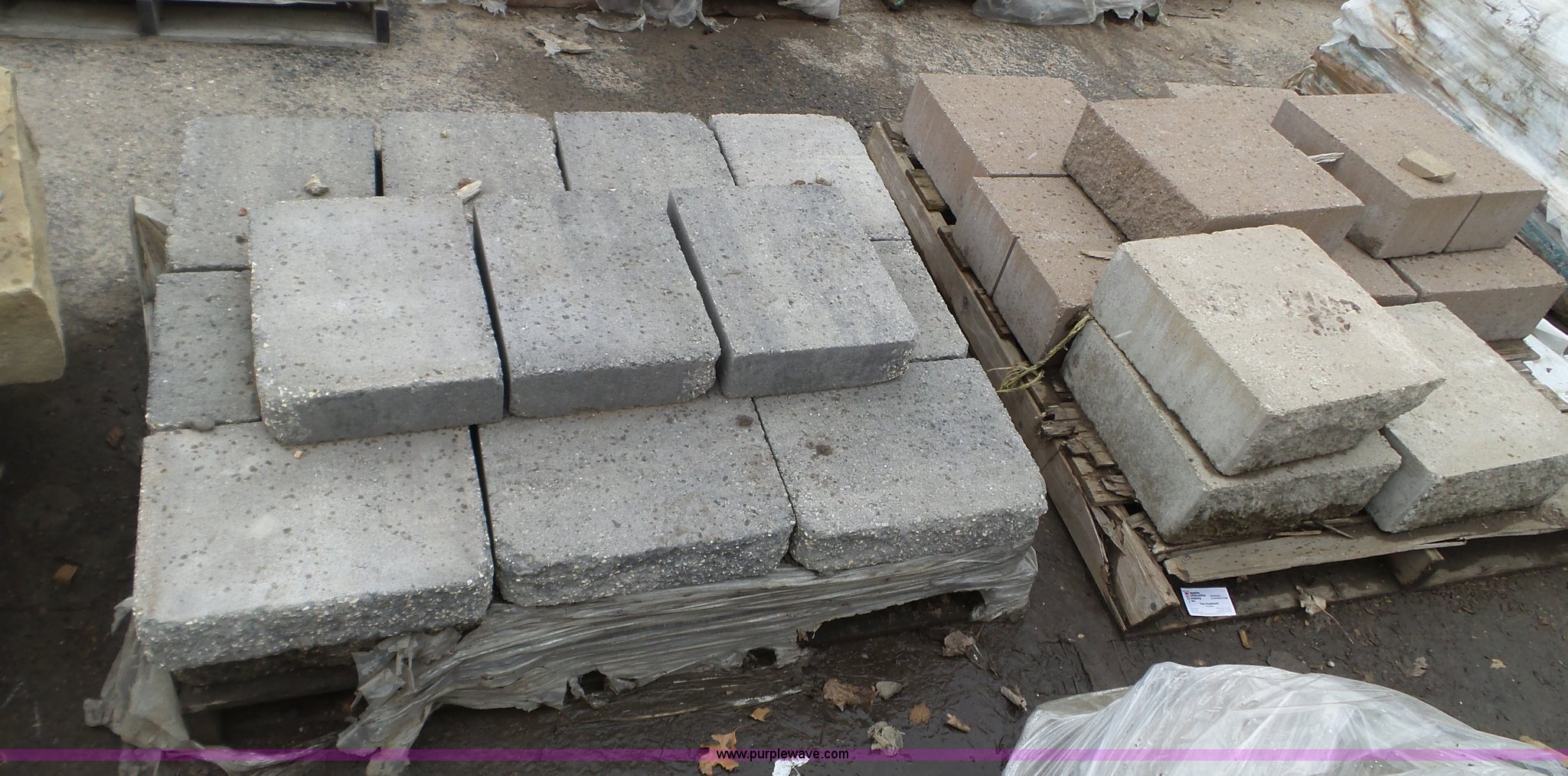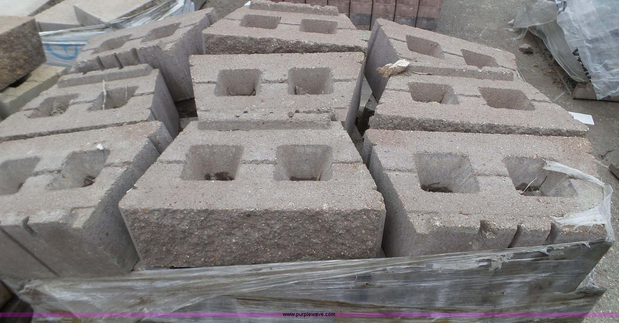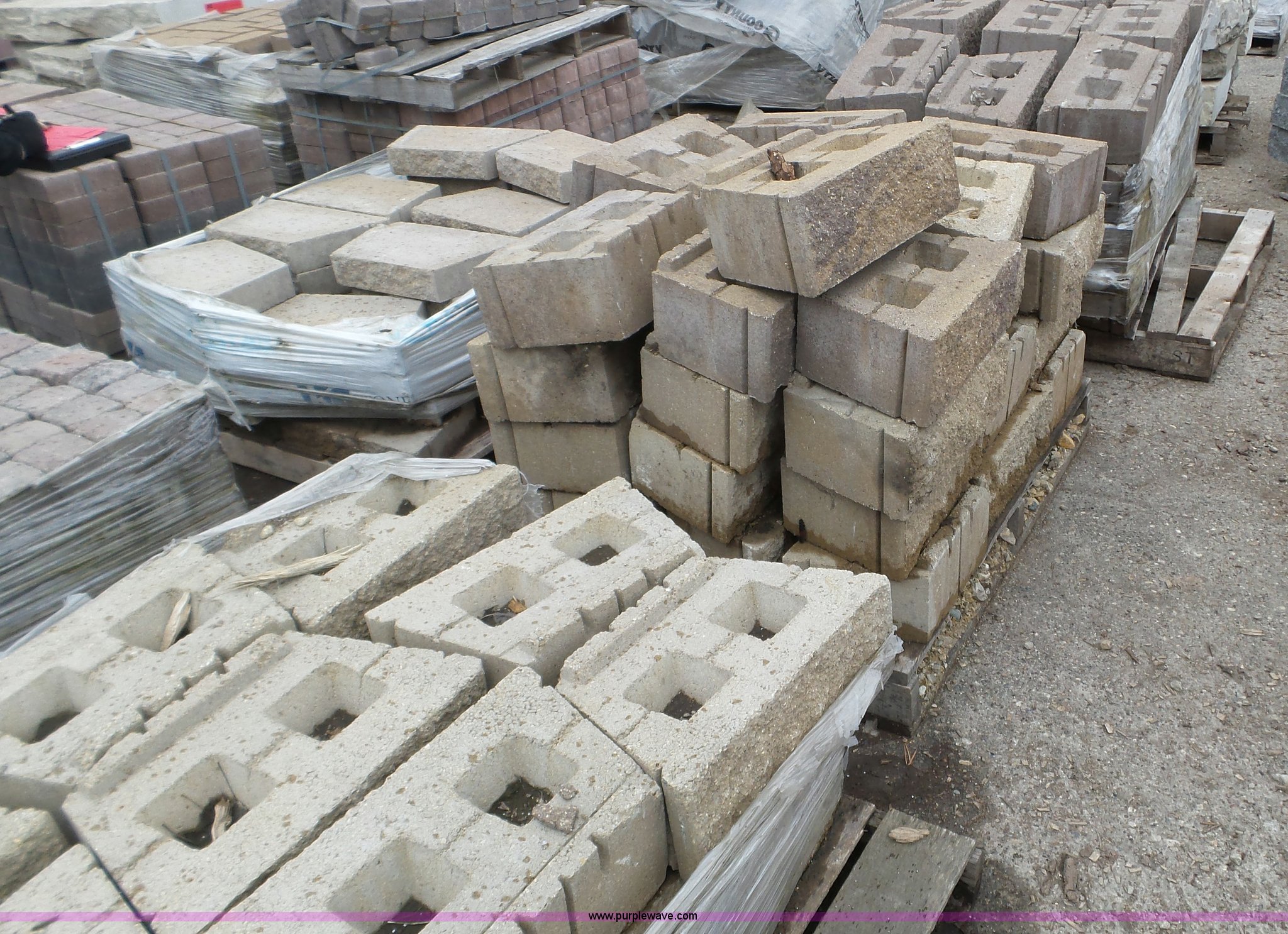 Purple Wave is selling a used Lawn and Garden in Minnesota. This item is a Retaining wall block and cap with the following: Various quantities, Various colors, 6" step block, (7) pallets