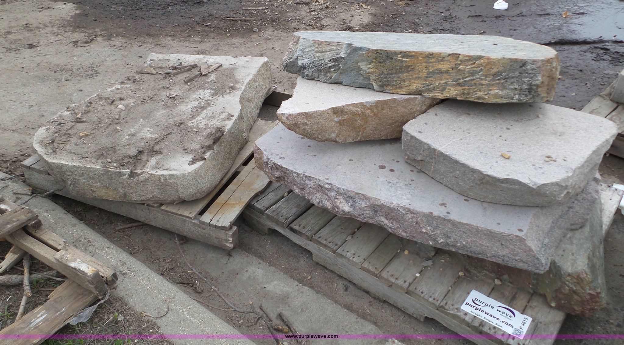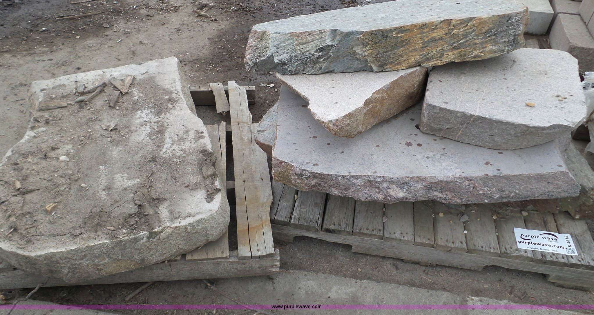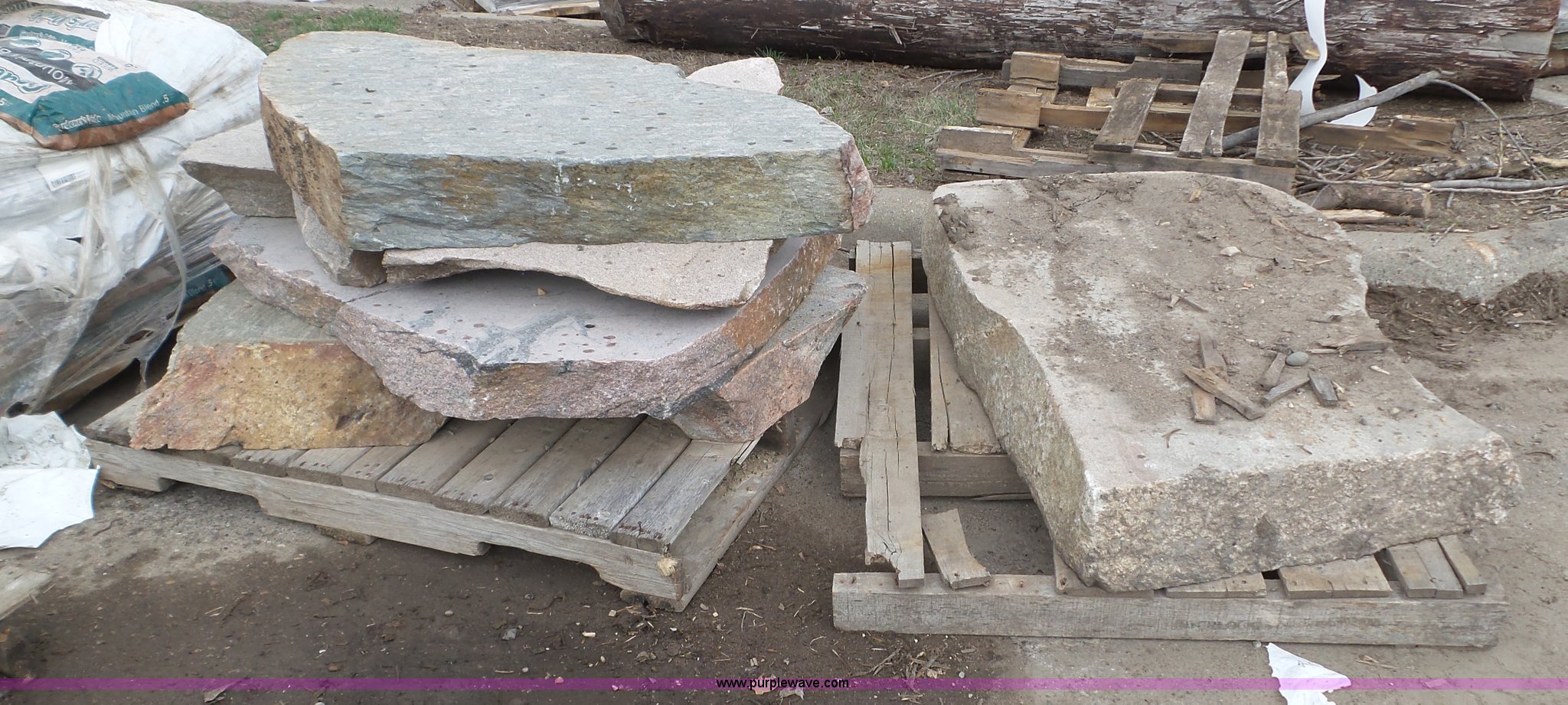 Purple Wave is selling a used Lawn and Garden in Minnesota. This item is a (7) cut boulder slabs with the following: Various sizes, 6" height