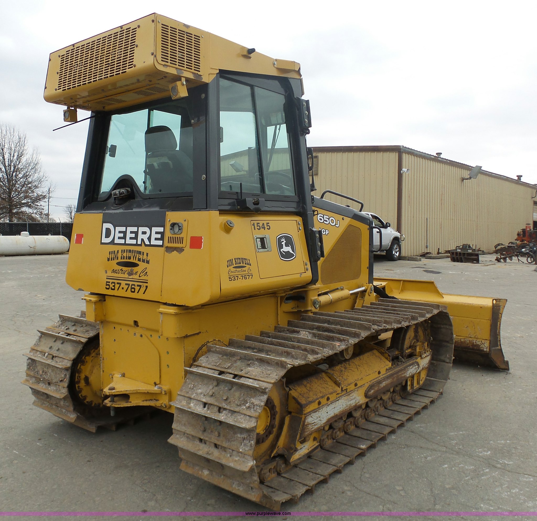 Purple Wave is selling a used Crawler Dozer in Missouri. This item is a 2006 John Deere 650J LGP dozer with the following: 6,660 hours on meter, John Deere PowerTech 4.5L four cylinder turbo diesel engine, Hydrostatic transmission, Variable speed, EROPS, AC and heat, AM/FM, Joystick steering, Front and rear work lights, Front and rear wipers, 9.5'W six-way dozer blade, Rear draw bar, Seven bottom rollers, 24"W single grouser track pads, 19,750 lbs. base operating weight, Serial T0650JX125101, Unit# 1545
