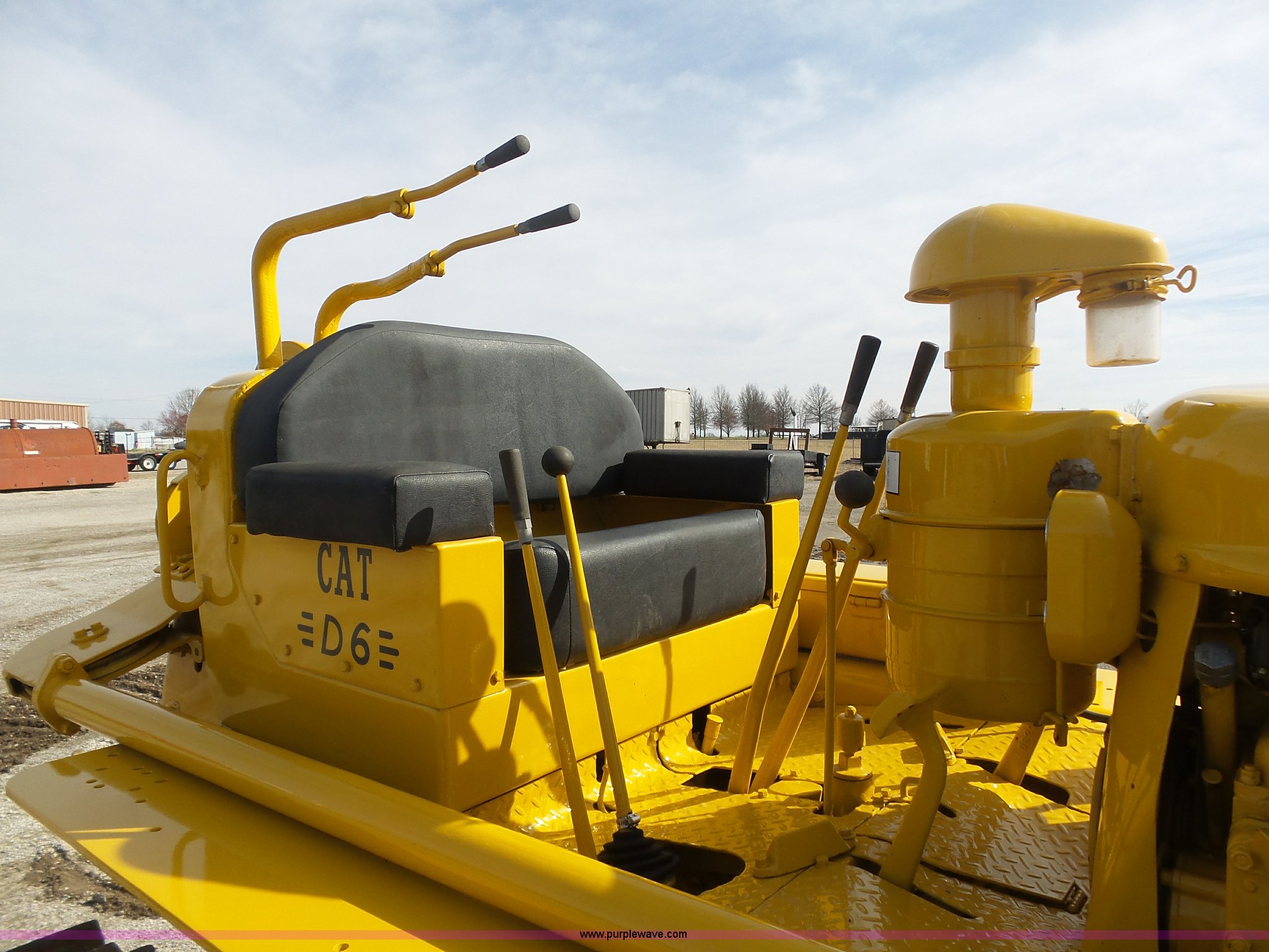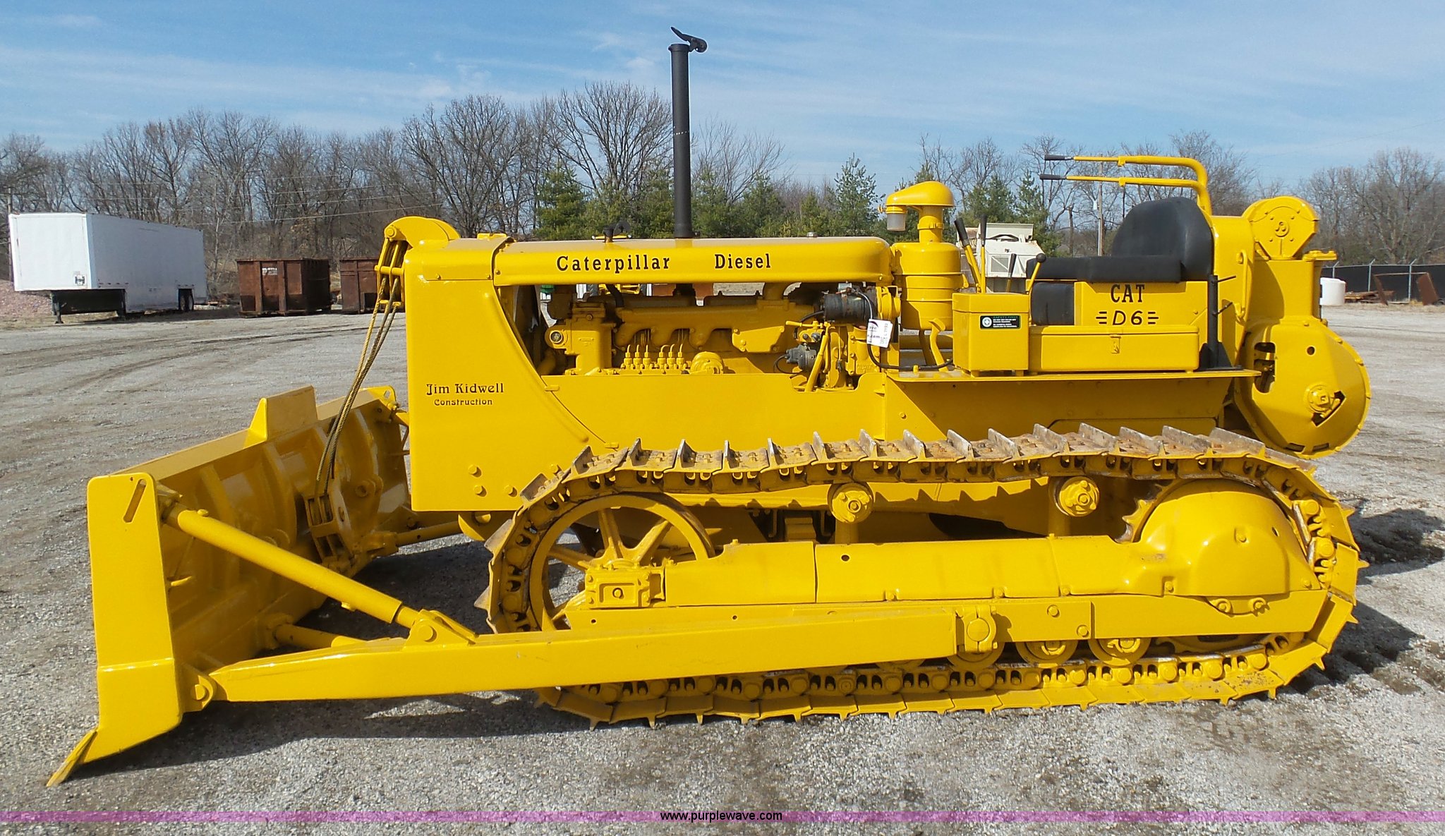 Purple Wave is selling a used Crawler Dozer in Missouri. This item is a 1952 Caterpillar D6 dozer with the following: Caterpillar six cylinder diesel engine, Pony motor, 5F-5R gears, Clutch brake steering, 110" straight dozer blade, Rear drawbar, Six bottom rollers, 24" triple grouser track pads, Serial 9U9573