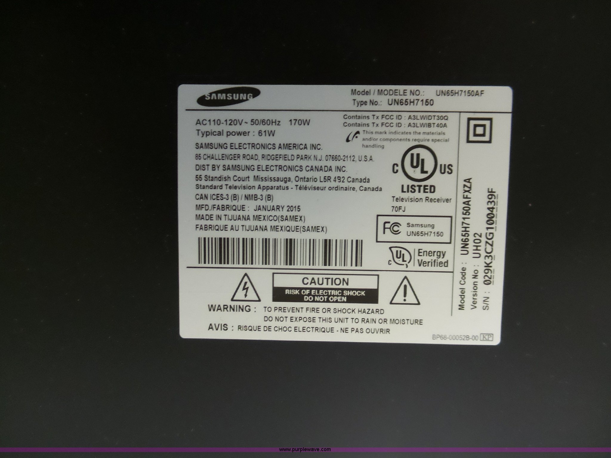 Purple Wave is selling a used Electronics in Kansas. This item is a Samsung 65" LED Smart television with the following: Model UN65H7150, Remote, Power cord, Wall mount, Powers on