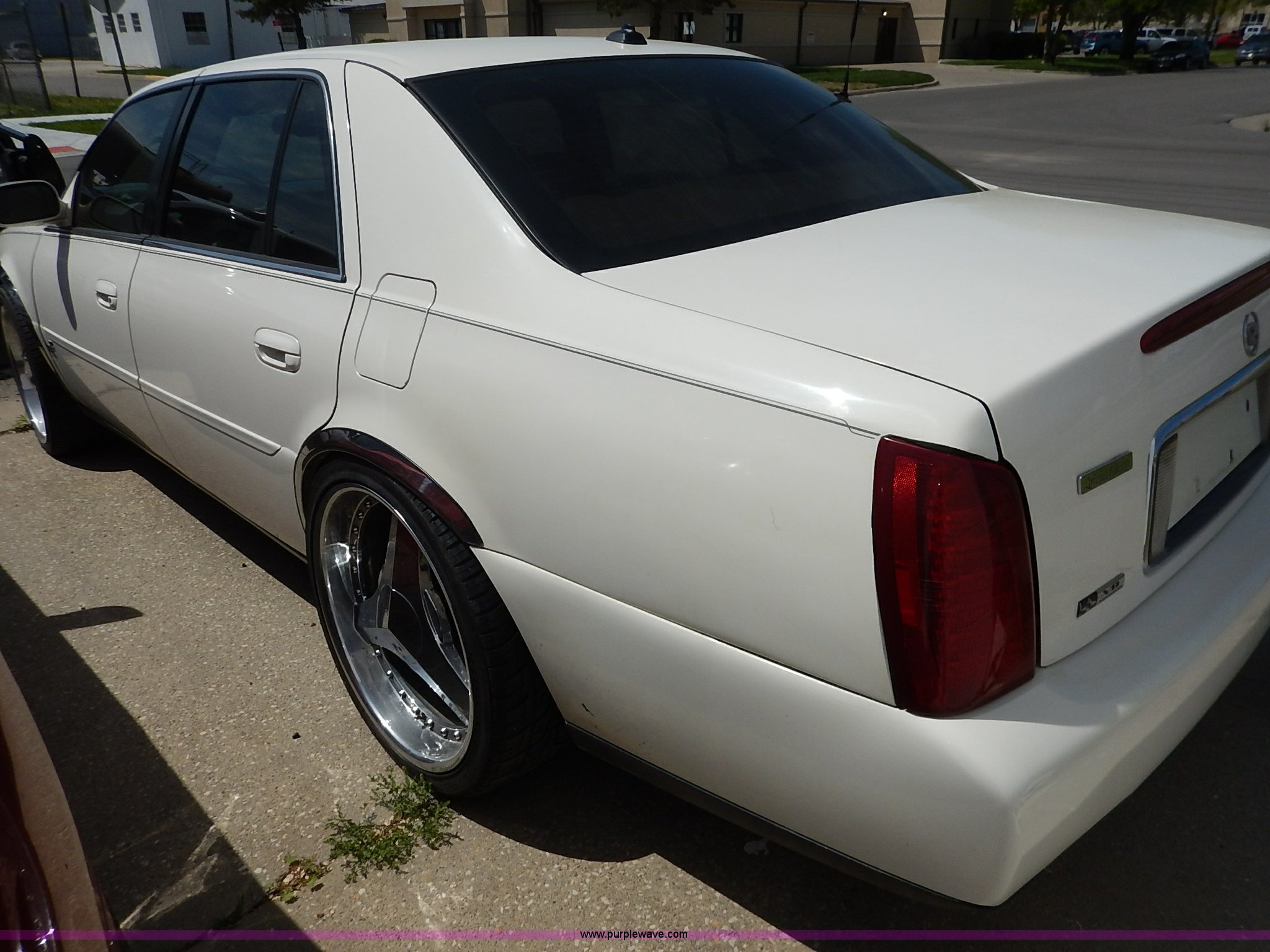 Purple Wave is selling a used Passenger Vehicle in Kansas. This item is a 2004 Cadillac DeVille Limited Edition with the following: 203,964 miles on odometer, 4.6L V8 DOHC 32V gas engine, Automatic transmission, AC and heat, Tilt, Cruise, Power windows, locks, mirrors, and seats, Vinyl interior, Compass display, Audio controls on steering wheel, Speaker box in trunk, Helo custom wheels, 265/35R22 tires, Unknown operating condition, Dead battery, Air shocks need to be replaced, Paint chipping, Unit must be towed
