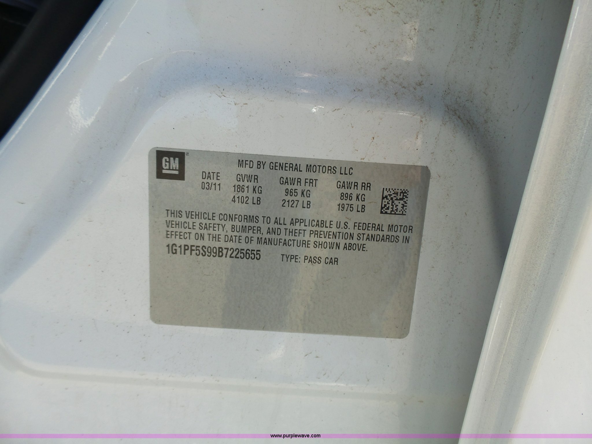 Purple Wave is selling a used Passenger Vehicle in Kansas. This item is a 2011 Chevrolet Cruze LT with the following: 38,009 miles on odometer, 1.4L L4 DOHC 16V gas engine, Automatic transmission, AC and heat, Tilt, Cruise, AM/FM/CD, Power windows, locks, mirrors, and seat, Cloth interior, Fog lights, 215/60R16 tires, Front bumper damage