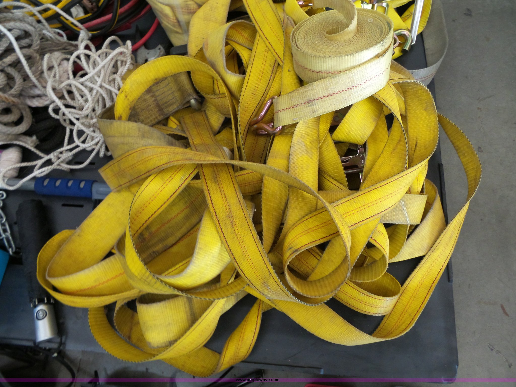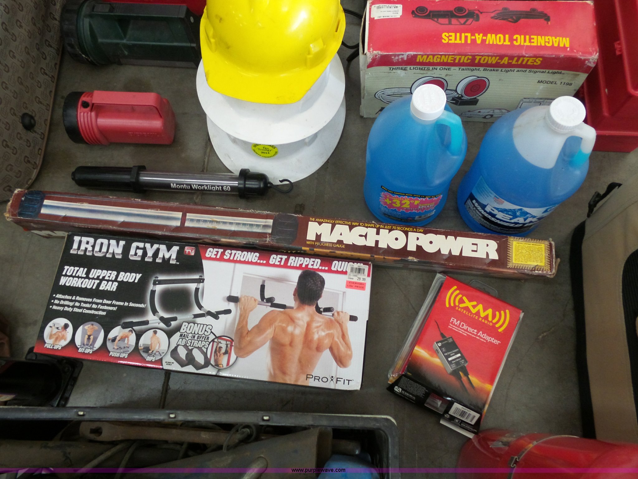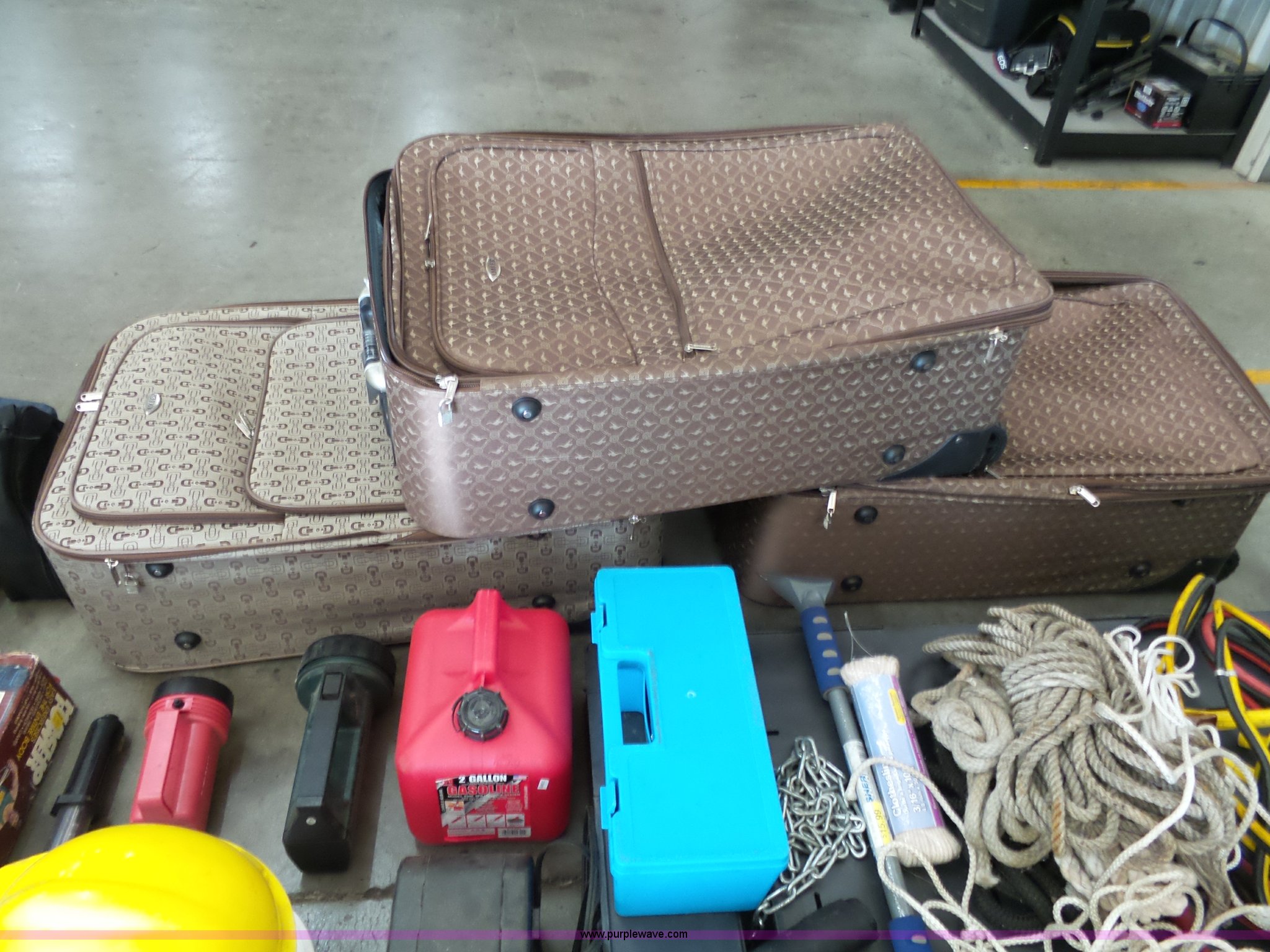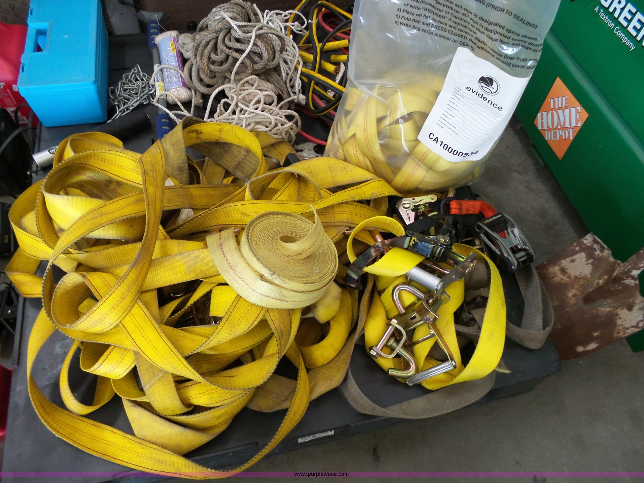 Purple Wave is selling a used Sporting Goods in Kansas. This item is a Outdoor equipment with the following: Contico xtreme tuff box, Load straps, Jumper cables, Ropes, Roadside flares, Hard hats, Luggage, Pet carrier and leash, Fire extinguishers, Flash, Worklights and more, Green box not included