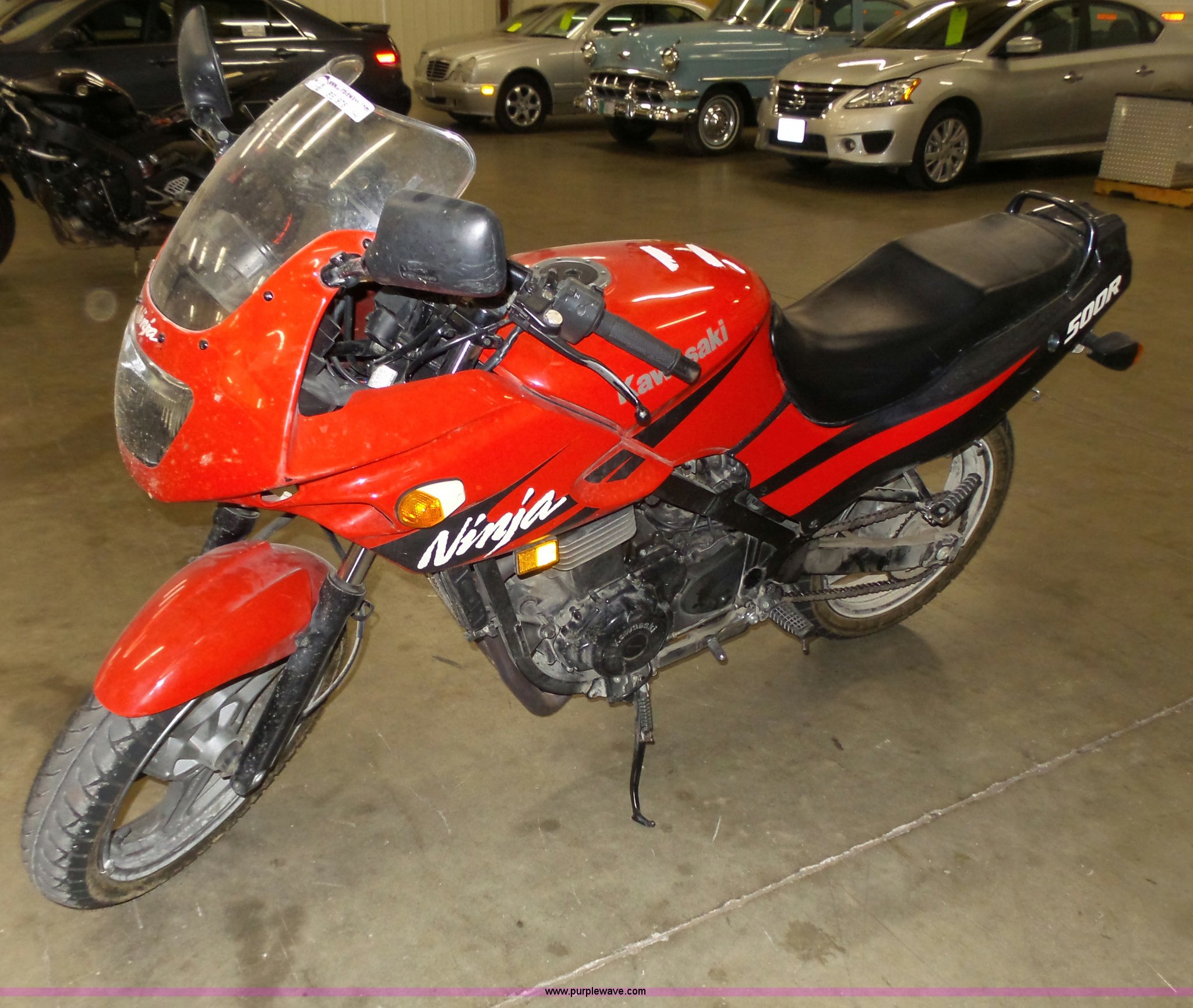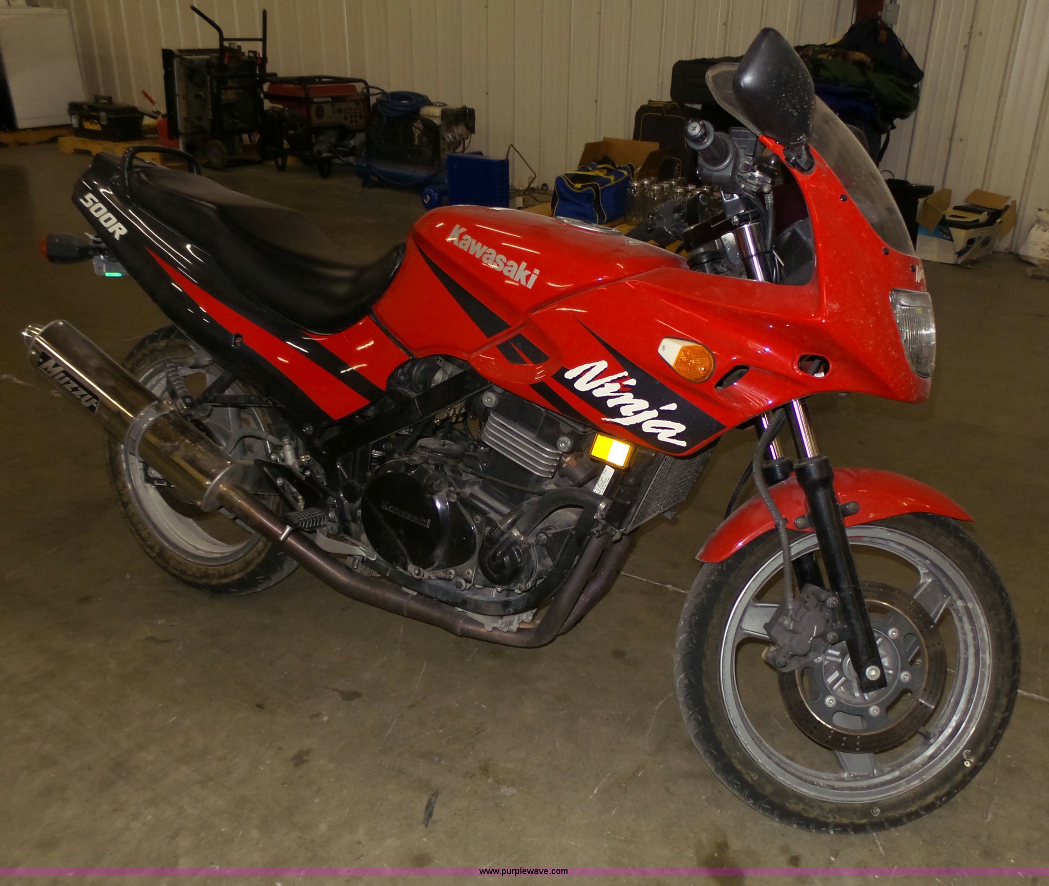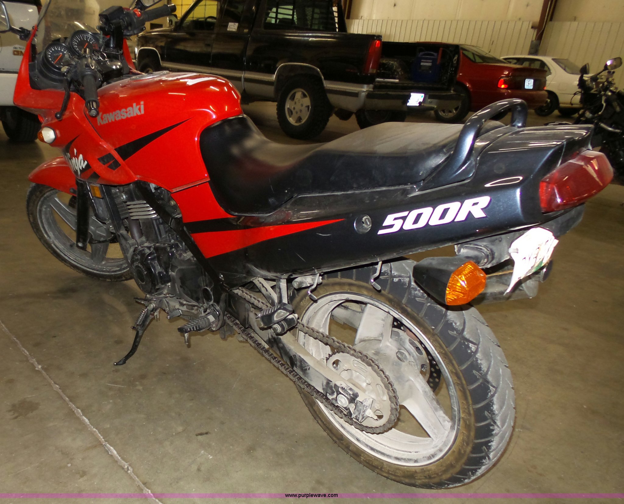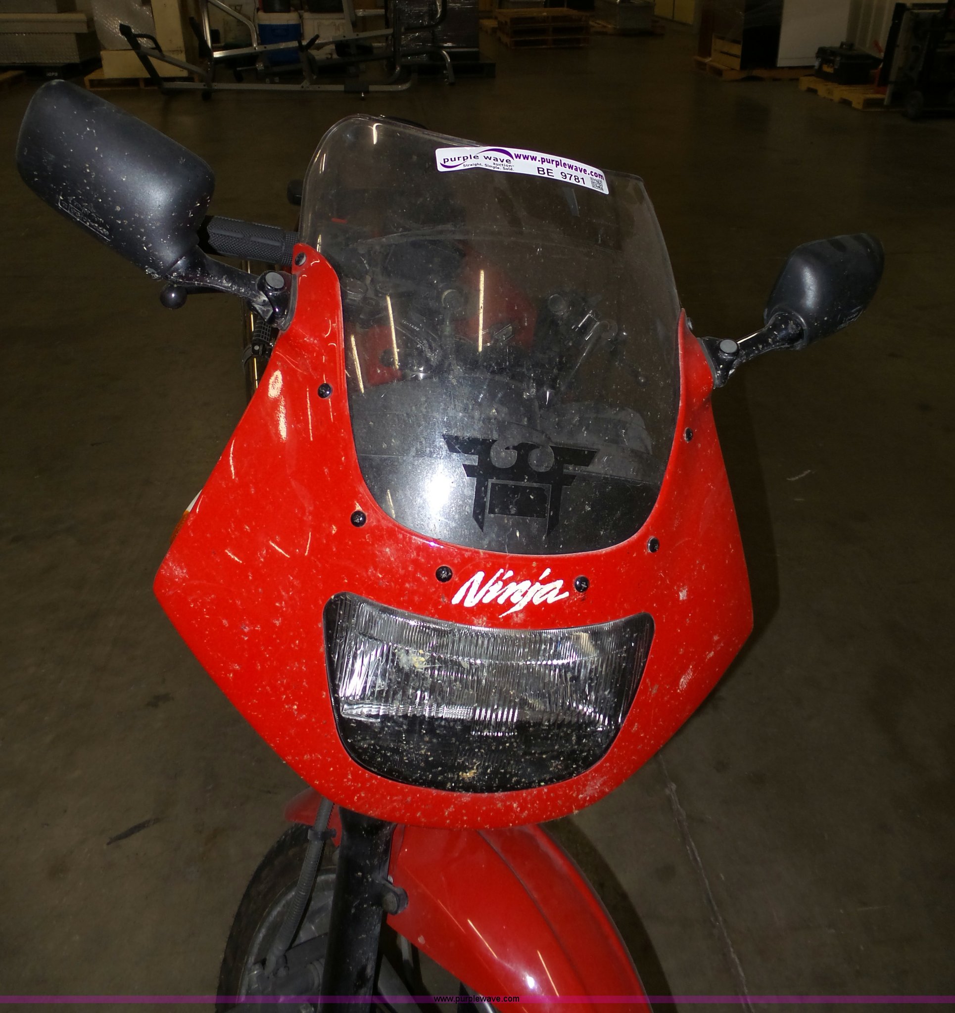 Purple Wave is selling a used Motorcycle in Kansas. This item is a 2002 Kawasaki EX500R Ninja Motorcycle with the following: 10,742 miles on odometer, Key, Disc brakes, 110/70-17 front tire, 130/70-17 rear tire