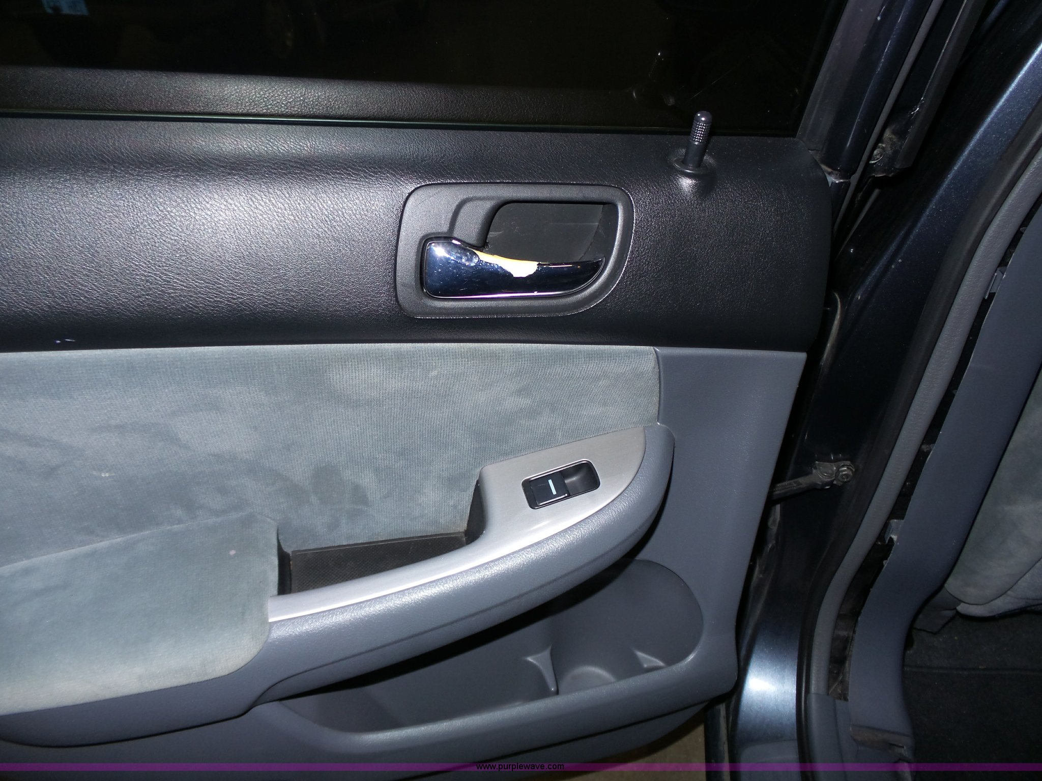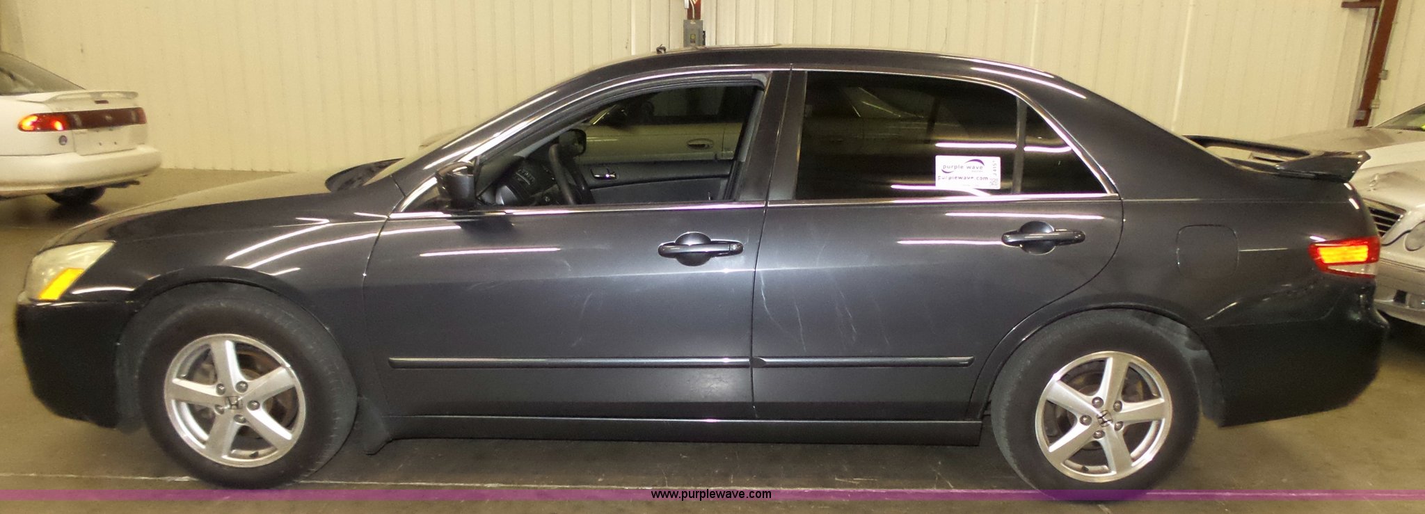 Purple Wave is selling a used Passenger Vehicle in Kansas. This item is a 2003 Honda Accord EX with the following: 143,096 miles on odometer, 2.4L L4 DOHC 16V gas engine, Automatic transmission, AC and heat, Tilt, Cruise, AM/FM/CD, Power windows, locks, and mirrors, Cloth interior, Sunroof, 205/60R16 tires, Carfax history available upon request