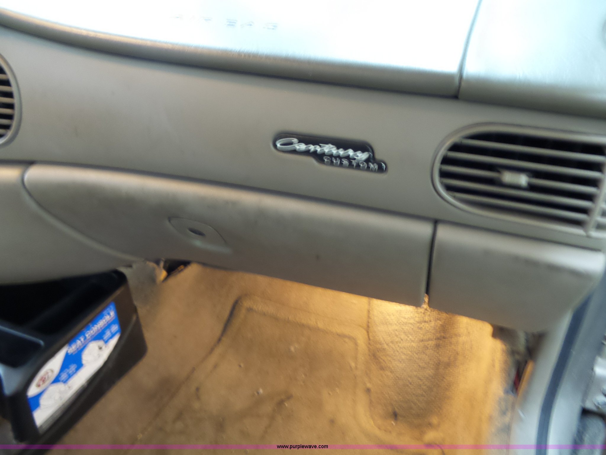 Purple Wave is selling a used Passenger Vehicle in Kansas. This item is a 2000 Buick Century with the following: 174,076 miles on odometer, 3.1L V6 OHV 12V gas engine, Automatic transmission, AC and heat, Tilt, Cruise, AM/FM/CD, Power windows, locks, mirrors, and seats, Cloth interior, Fog lights, 205/70R15 tires, Check engine light is on, Dents and Scratches, Carfax history available upon request