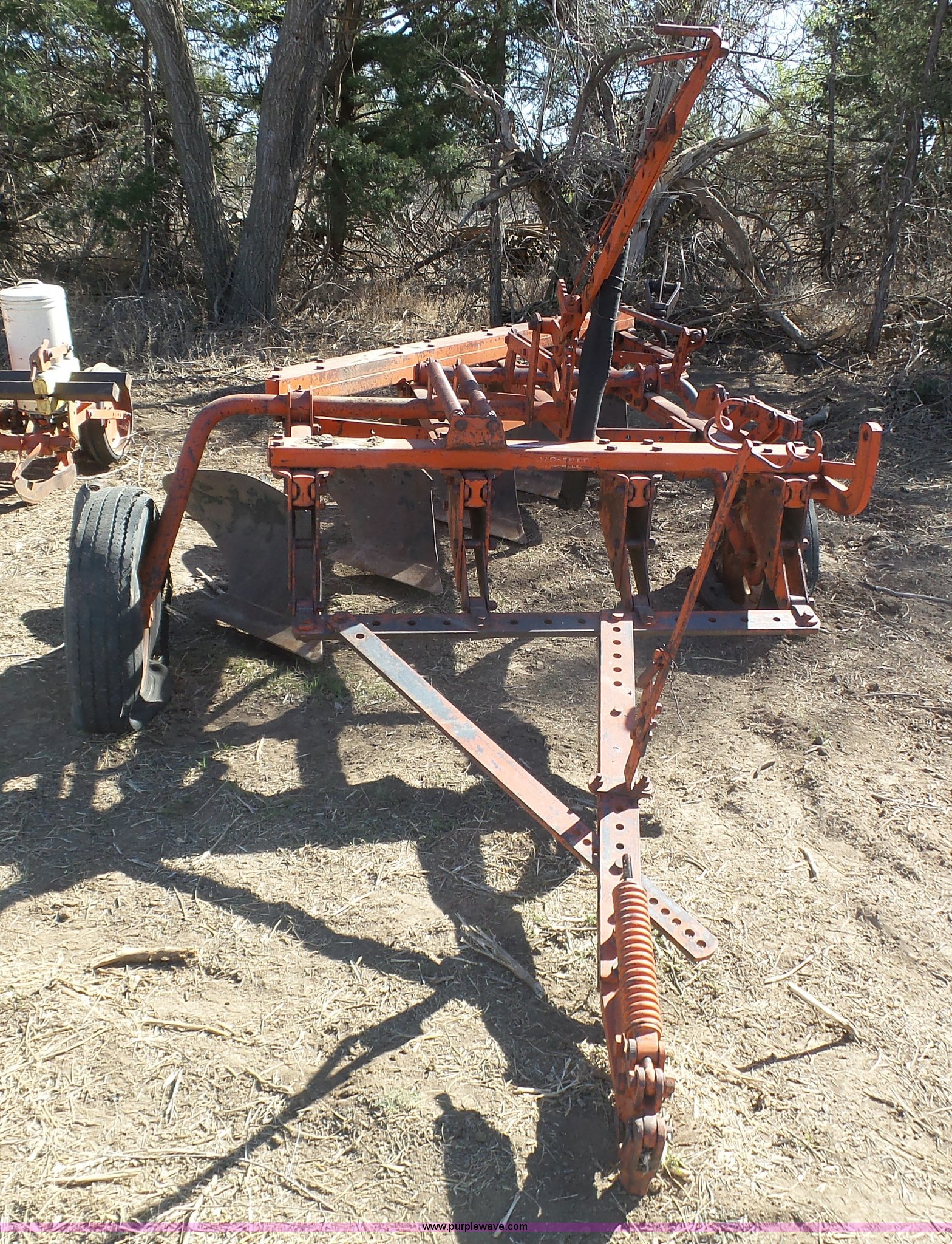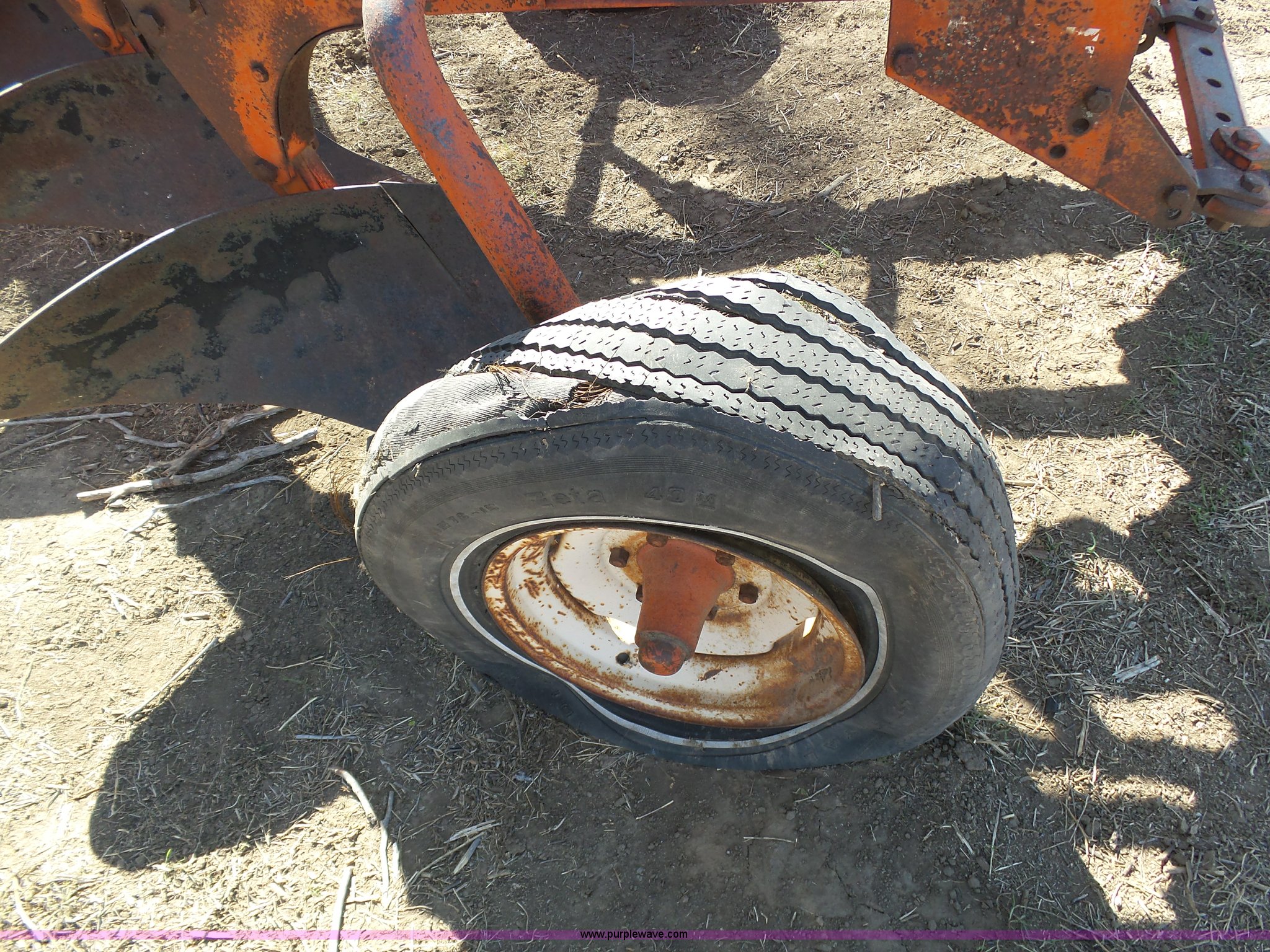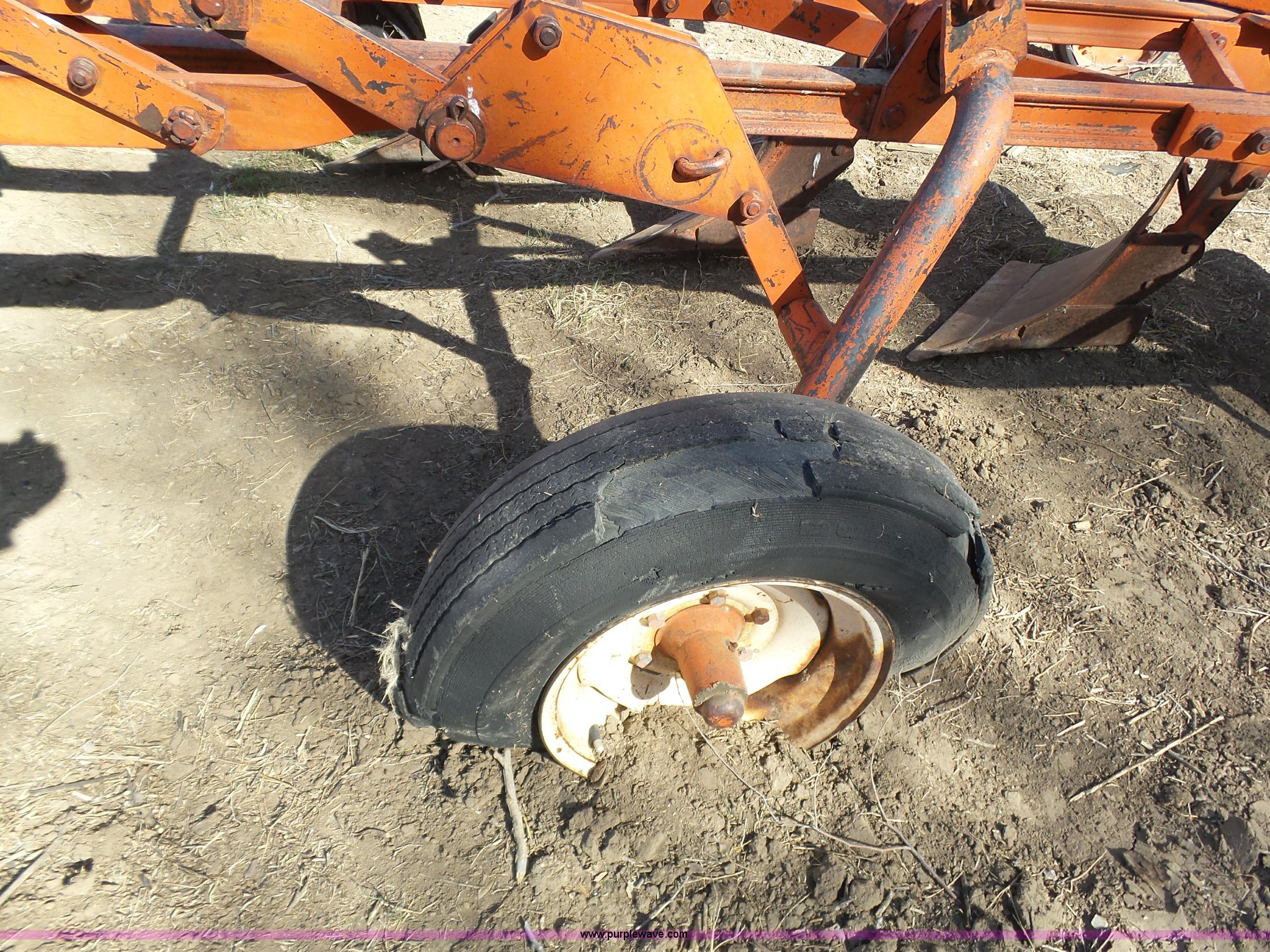 Purple Wave is selling a used Plow in Kansas. This item is a J.I. Case five bottom plow with the following: Manual adjust, 8-15-15 tires, 4.00-12 trail wheels, Tires need to be replaced